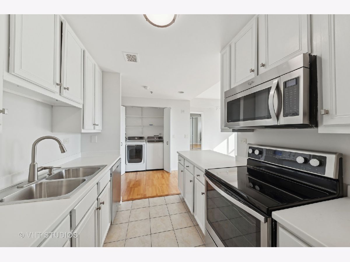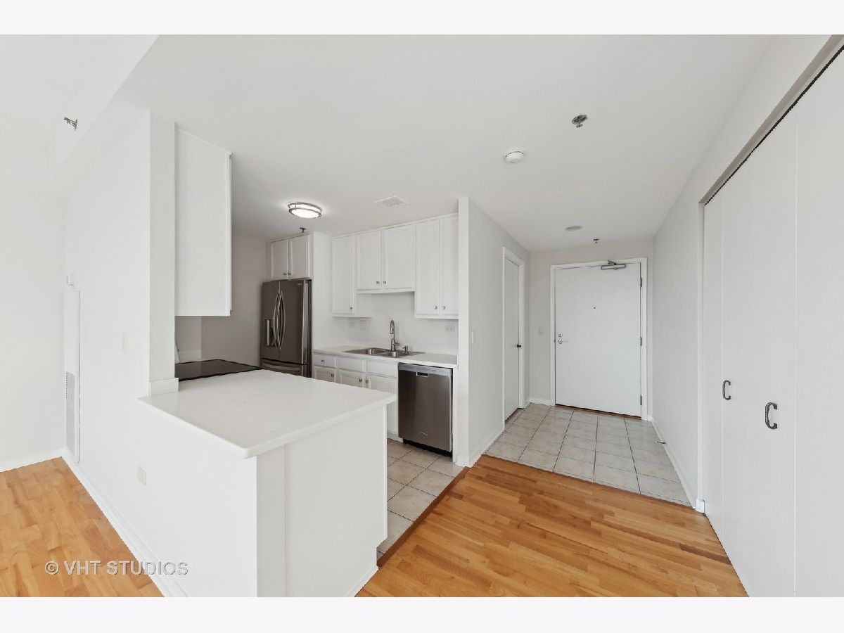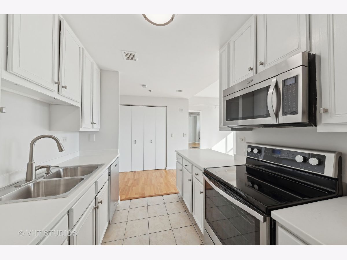 This rare 1-bedroom, 1.1-bathroom rental condo offers bright Eastern exposures and a prime location in the heart of downtown Arlington Heights. The living room, framed by wall-to-wall windows, is filled with natural light and offers flexible furniture layouts, making it ideal for relaxing, entertaining, or working from home. The refreshed kitchen features white cabinetry, stainless steel appliances, and a counterspace design for style and function. The bedroom also boasts wall-to-wall windows, window treatments, and ample storage with dual customized closets featuring built-in organizers. The private ensuite bath enhances the comfort of this space. Additional highlights include in-unit laundry with a full-sized washer and dryer and extra storage in the laundry area. Rent includes heat, water, cable, internet, one heated garage parking spot (#31), and a private storage locker-the tenant only pays for electricity. Building amenities include a doorman, a fully equipped fitness center, and a party room. Located steps from dining, shopping, live entertainment, and the Metra train, this condo offers the best of downtown Arlington Heights living. Don't miss your chance to call this home!