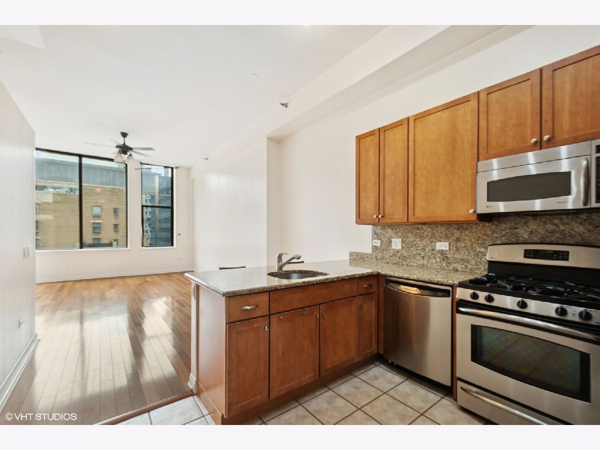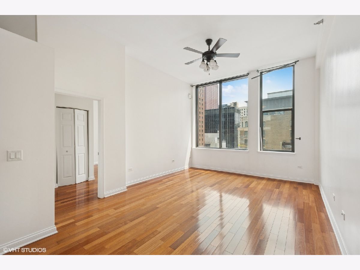 Abundance of natural light in this 2-bed/2-bath Loop loft, which pairs 10-ft concrete ceilings with hardwood floors and an open layout, ideal for entertaining. The kitchen offers Santa Cecilia granite countertops, stainless appliances, 42-in cabinets, and a breakfast bar. While the split-floor plan gives the ensuite primary its own walk-in closet and full bath. In-unit laundry with a huge closet attached, fresh paint, Nest thermostat, and a sixth-floor storage locker which adds convenience. Enjoy the views of this city style home, in the heart of it all! The pet-friendly, full-amenity building features 24-hr door staff, fitness center, business lounge, dog run, landscaped sundeck, and a rooftop deck with panoramic skyline and lake views; heated garage parking is available. Steps to every "L" line, Millennium Park, the Art Institute, Lakefront Trail, and top dining in the Theatre, Business, and Education districts-move in and enjoy the best of downtown living.