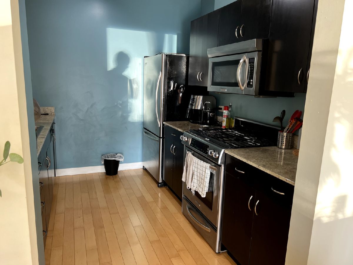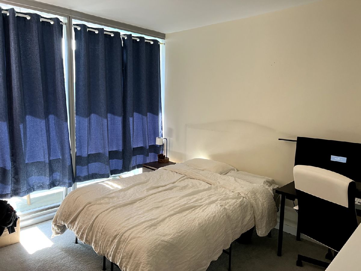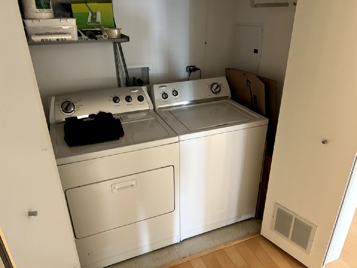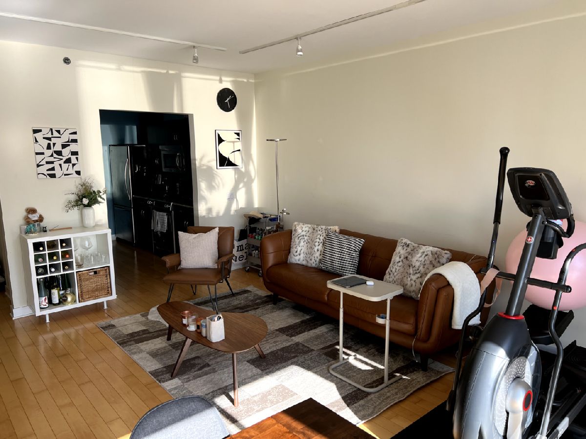 Spacious one bedroom at Joffrey Towers. Large king-sized bedroom with a full wall of closets. Side by side in-unit laundry is located right outside the bedroom door. The stylish kitchen includes granite counters with a breakfast bar, stainless steel appliances and dark cabinets. The living dining room combination has a wall of West-facing windows with great city views. A covered balcony off the living room provides private outdoor space. Gym and party room in building. Located steps from CTA, Grant Park and Michigan Ave.
