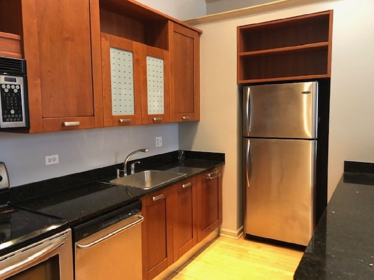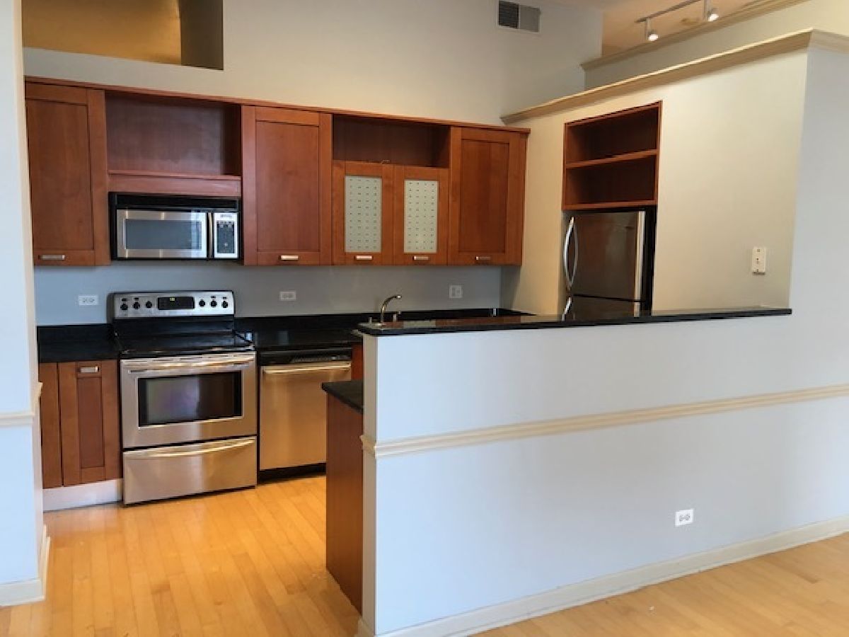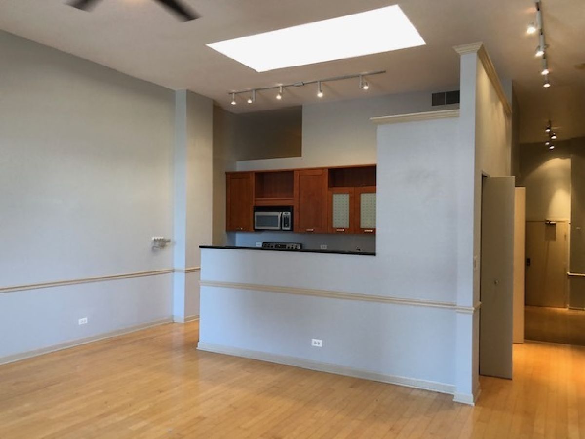 Sought after very large 1 bedroom Penthouse Condo at the Evanston Galleria! Bright (south-facing w/ skylight!) and sophisticated. A charming old Marshall Fields rehabbed with today's modern living features 12' ceilings, stunning hardwood floors, kitchen opens to the living area, washer/dryer in unit, 42" cherry kitchen cabinetry, Stainless Steel appliances. Neutral and warm paint colors. Walk to all the area restaurants, Northwestern, CTA, Metra, shopping, library & lake! Secured Parking space #P-9 is an extra $100 per month and must be rented with the unit***HEAT INCLUDED IN RENT!***Available 7/8/23