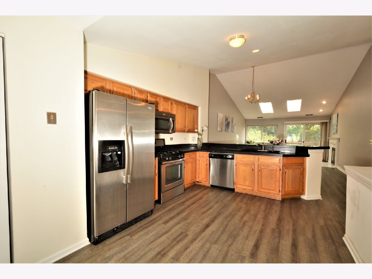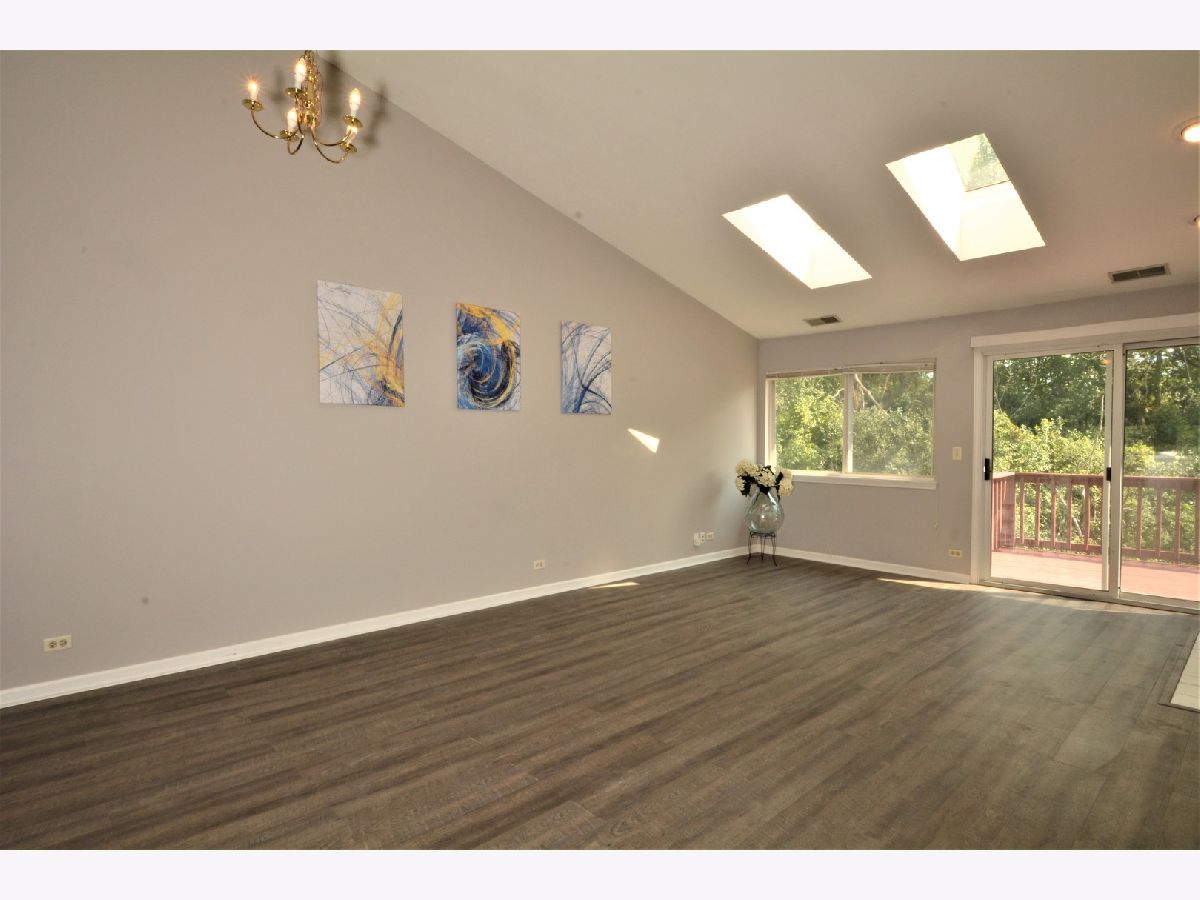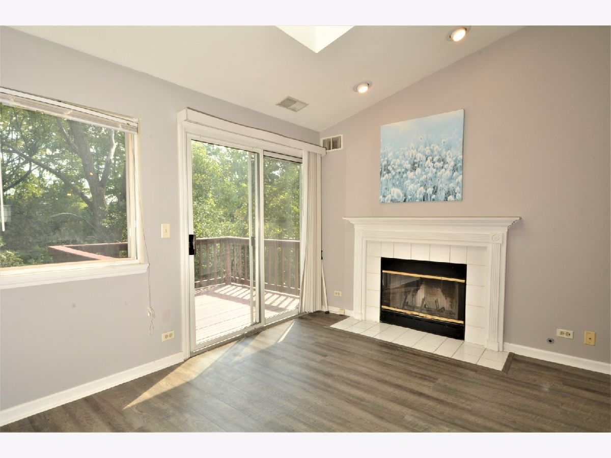 Conveniently located in Darien. Close to I-55 and shopping. Great Hinsdale South High School! Light & bright manor home with large deck that overlooks wooded area & stream. Great open floor plan. Granite counters in kitchen, Hard surface flooring, ceramic floors in both baths, large eat in kitchen, fireplace with ceramic surround, cathedral ceiling with sky lights. Large 2nd floor laundry rm.