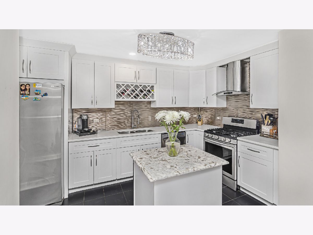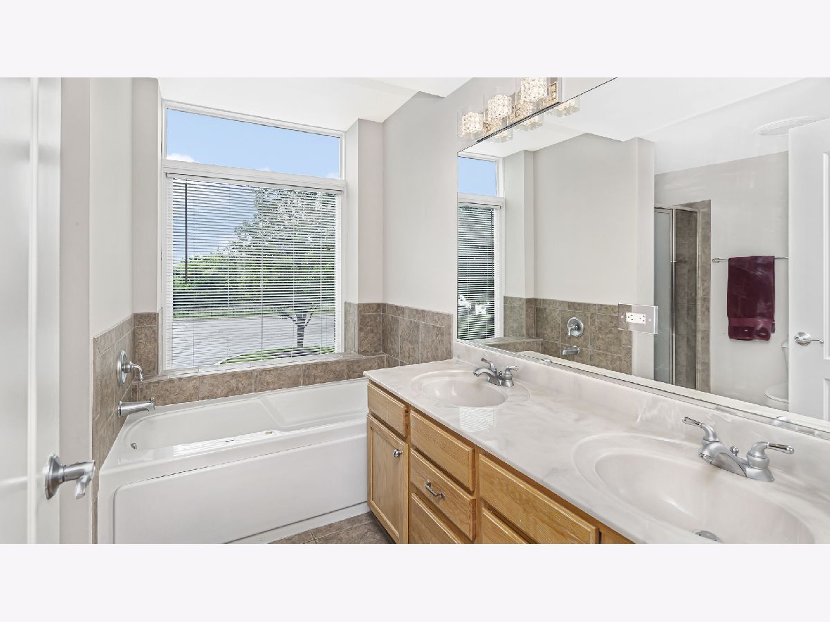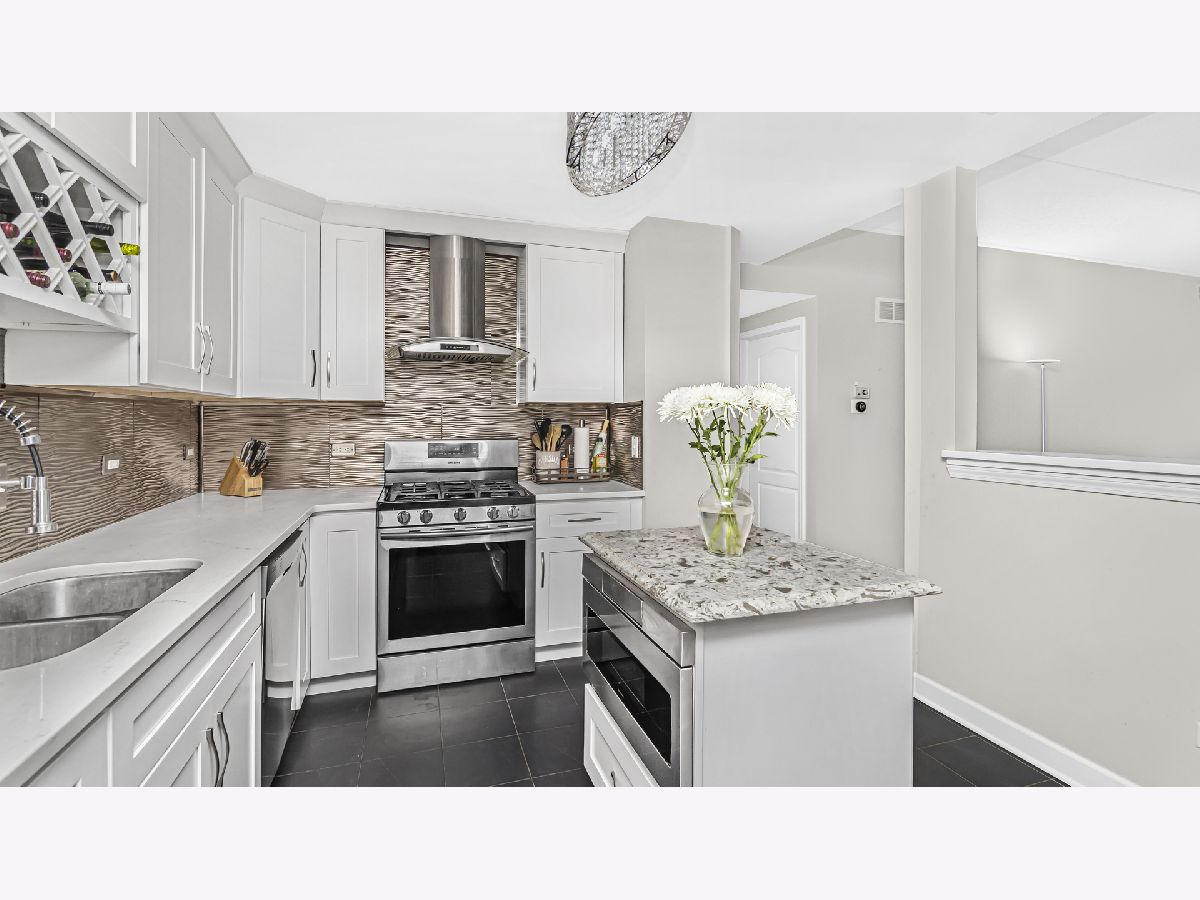 Welcome home to this bright and spacious corner condo. Entertain in the large living/dining room combo with its wall of sunlit windows and access to a private patio overlooking the courtyard. The open concept kitchen includes stainless steel appliances, quartz countertops and a large tiled island. The large private sunlit primary suite offers a walk-in closet, separate tub, and shower. The unit also boasts two more ample bedrooms, an updated full hall bath, powder room, dark espresso bamboo flooring throughout, in-unit laundry with full-sized washer and dryer, extra storage, and a heated garage space. In addition to all of the unit's wonderful features, it's close to shopping and expressways.