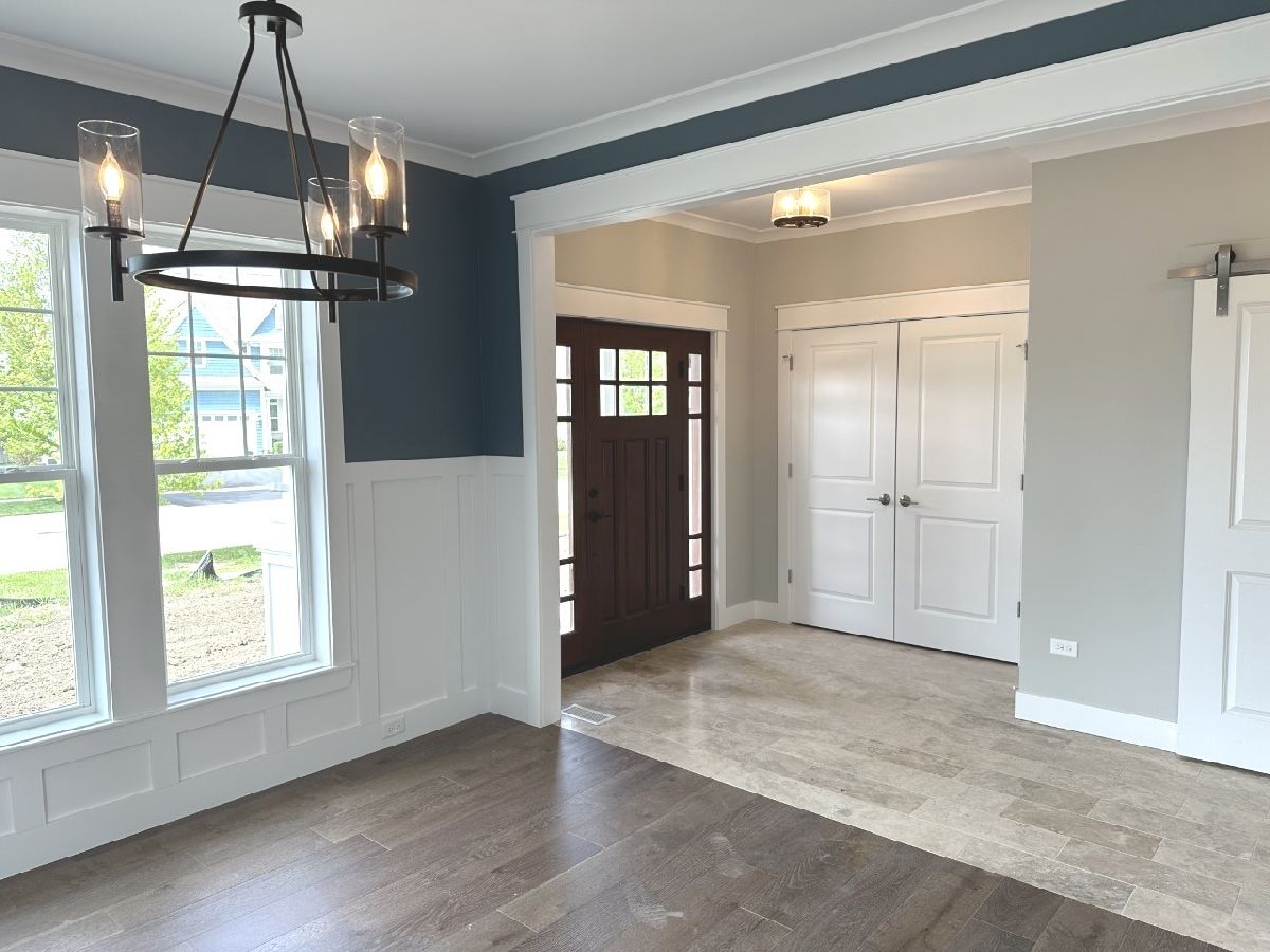 EXECUTIVE RENTAL- NEW CUSTOM CONSTRUCTION by celebrated Crystal Lake homebuilder, Country Homes. 5 bedrooms, 4 full bathrooms, 3150 square feet home with deep 9.5' basement plumbed for 5th bathroom. 3 car side load garage (32' x 22'), 1/3 acre corner cul de sac lot. High-end custom finishes throughout. The entire first-floor features brushed oak wide plank flooring, fifth bedroom/office and a full bathroom, extensive custom craftsman style trim, a coffered ceiling in the great room with a stone fireplace, custom built-ins, a hearth from a 1800s barn and wired-for-TV. The formal dining room features a volume ceiling. The kitchen is a culinary playground; 10' island, quartz countertops, custom glass tile, beverage chiller, GE in-set cooktop with stainless hood, double oven, french door/lower freezer refrigerator, soft close doors & drawers, butler's pantry & walk in pantry. The second floor includes four additional bedrooms, three additional bathrooms and a laundry room. Country Homes is known for their extraordinary eye for detail and master craftsmanship. This home will surpass a buyer's expectations with the custom tile and mill work, the beautiful mahogany door with beveled glass, the trex deck, the custom staircase and the solar tube in the laundry room, to name a few.