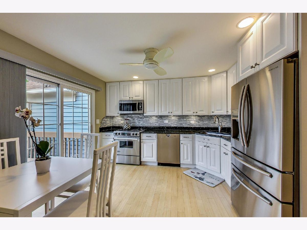 Beautifully updated townhouse in a highly sought after Fountains of Deerfield town homes. With unobstructed views of the quiet fountains and pond this home is not to be missed. The home offers 2 large bedrooms and 2.5 baths, a first floor office/den and a huge loft that can be converted into a 3rd large bedroom. Real bamboo floors on the 1st and second floor and a fully finished basement with engineered hardwood. Updated kitchen with under cabinet lighting, newer white cabinets(soft close), new backsplash, and granite countertops. Powder room on the main level has been updated with marble floors, new vanity, and natural pearl backsplash. Master bath has a full walk-in shower with Franke shower controls, jacuzzi tub, and onyx floors. Organized closets in both bedrooms have been added. Back patio has recently updated, sanded, and repainted. Perfect for outdoor dining, lounging and enjoying the outdoors. 2 car garage, 2 exterior spaces, guest parking, and an amazing association.