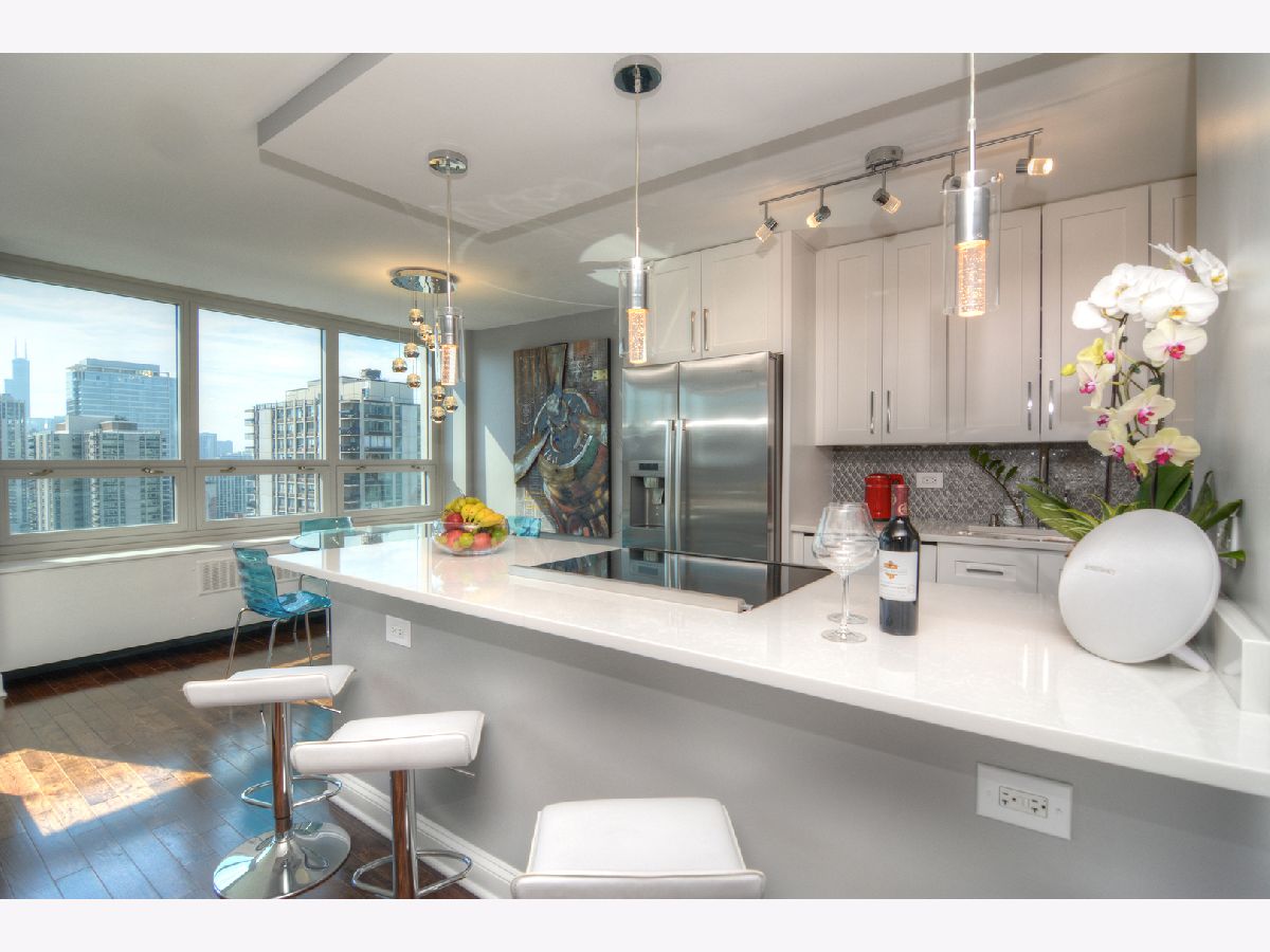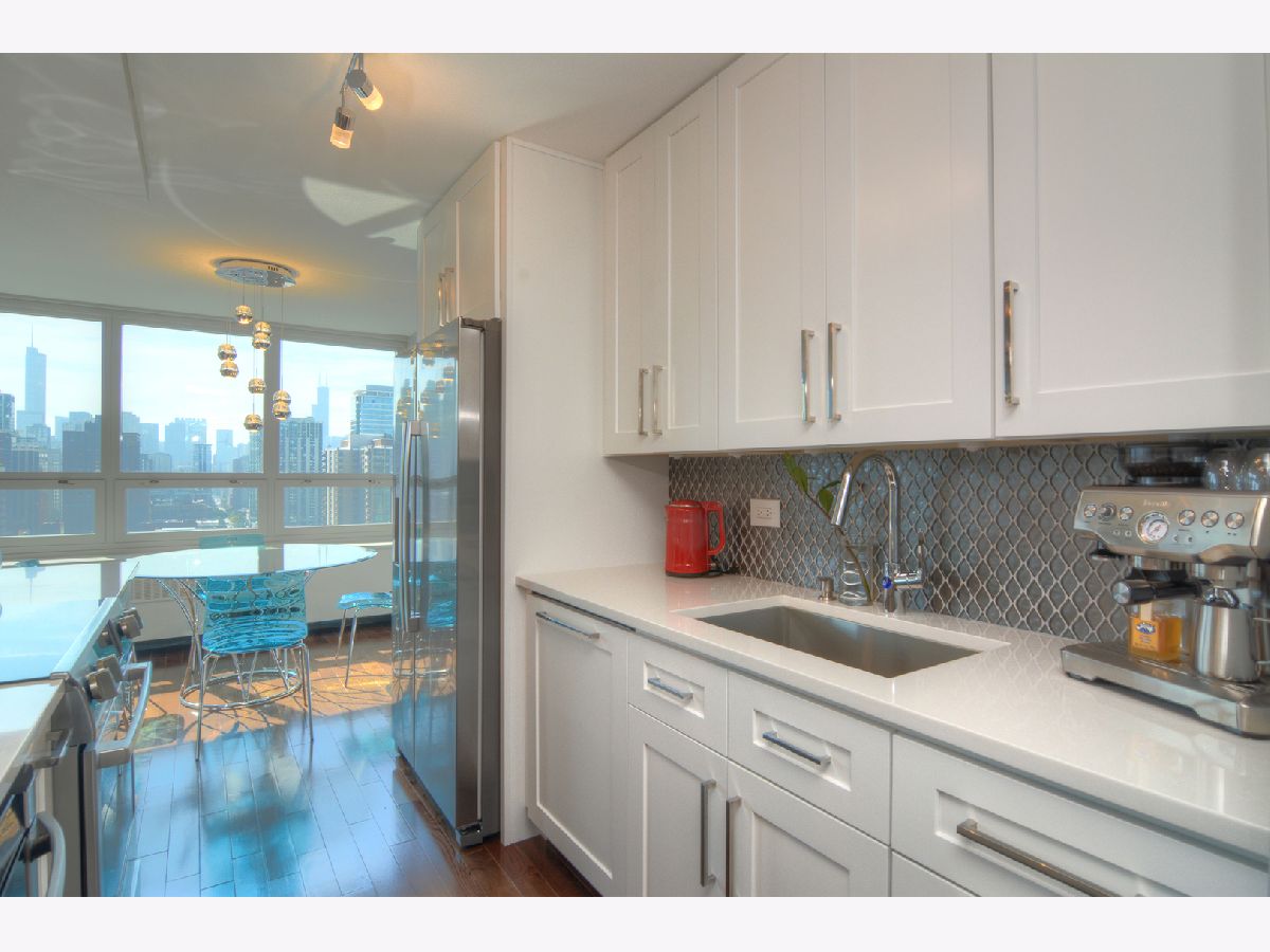 Whoa the VIEWS! Check out this recent gut REHAB of this premium 26th floor Gold Coast condo with Southern Exposure!!! Nestled in an upscale neighborhood with multimillion-dollar homes, Chicago's iconic skyline lies before you, with sun rising over the lake to the East and spectacular sunsets to the west plus you will only be a short walk to the magnificent mile! This property is walking distance to Lincoln Park and Wells street, where you will find an abundance of trendy nightclubs and restaurants! The open kitchen and living areas are designed for today's current lifestyle and entertaining. Top-quality finishes thru-out! Kitchen features Bosch appliances including french door refrigerator & panel dishwasher, Sharp microwave drawer. Custom white shaker cabinets, quartz counters & island with breakfast bar. Bathroom has Duravit, Kohler, Hansgrohe, marble tile. Solid hardwood floors throughout. Designer lighting. Lots of closets, all professionally organized. Building offers on-site management, rooftop deck, & access to association pools & tennis courts. Inexpensive and immaculate facility laundry available, however many tenants use the same maid service for cleaning/laundry. Also to note, all bills included w/association fee, you only pay electric! Windows and AC NEW in 2018, 2 Million dollars in reserves & No special Assessments! Turnkey Unit steps to the lake, park & all that the Gold Coast/ Old Town offer! Parking ONLY $150/month or daily rates for your guests, which is a steal!