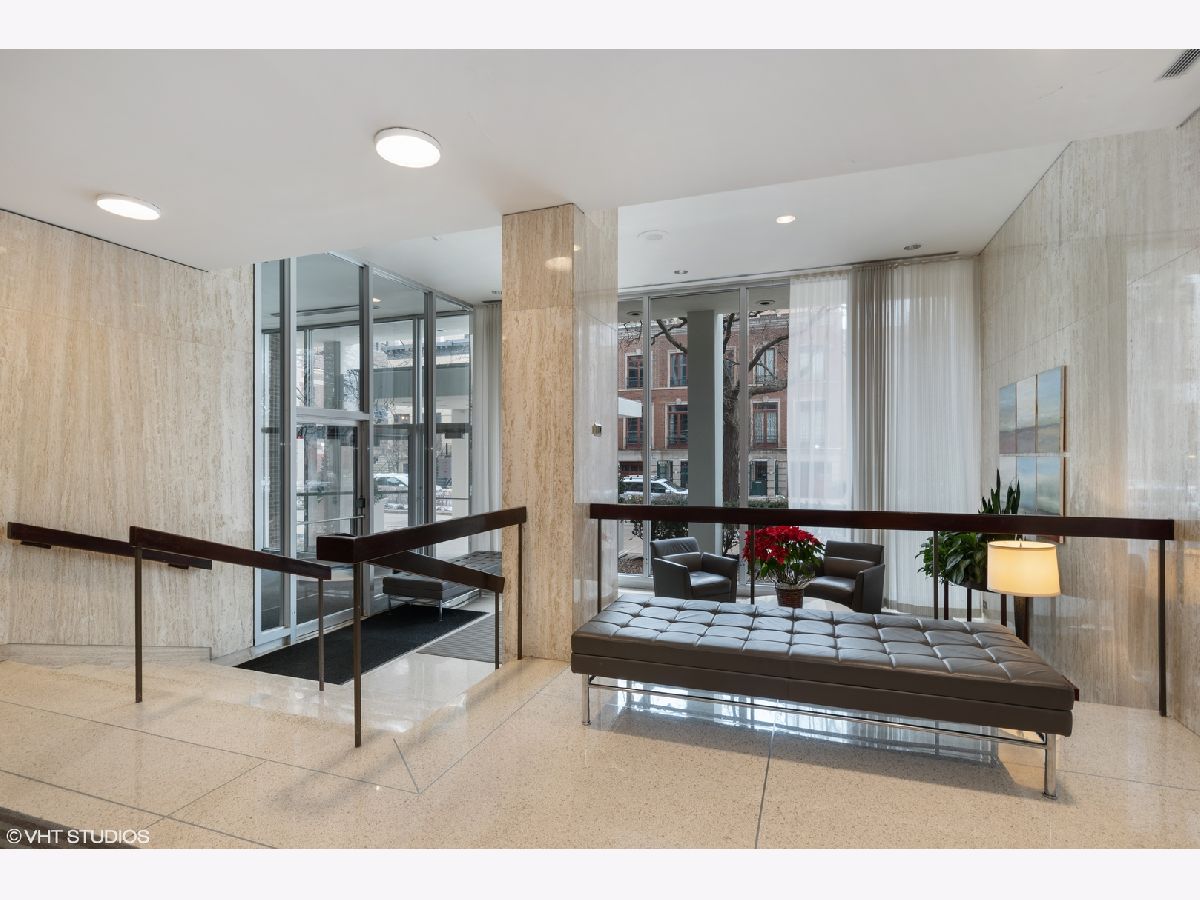 One of a kind sleek gray-on-white total renovation of this designer-owned one bedroom with dazzling city views. Details include Euro kitchen with quartz countertops and white lacquer cabinets, all built-in appliances, and wine fridge. Custom hardwood floors throughout finished in Gainsboro grey. Spa-like bathroom has large travertine and glass shower, dramatic lighting, and Kohler fixtures. Sun-drenched living/dining space contains 22" of brand new wall-to-wall thermal windows with view. Custom recessed lighting throughout. Four custom Euro closets with wardrobe organizers and interior lighting. Rent includes internet and DVR cable. Desired building provides door person, rooftop deck/grill, large laundry room, package receiving, and valet garage parking for $175/month. Ideal location in the heart of the Gold Coast/Old Town with ample access to public transportation and Lincoln Park. Urban perfection!