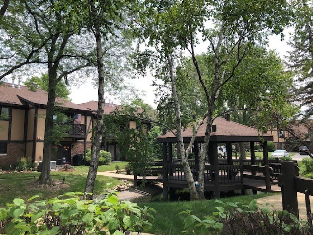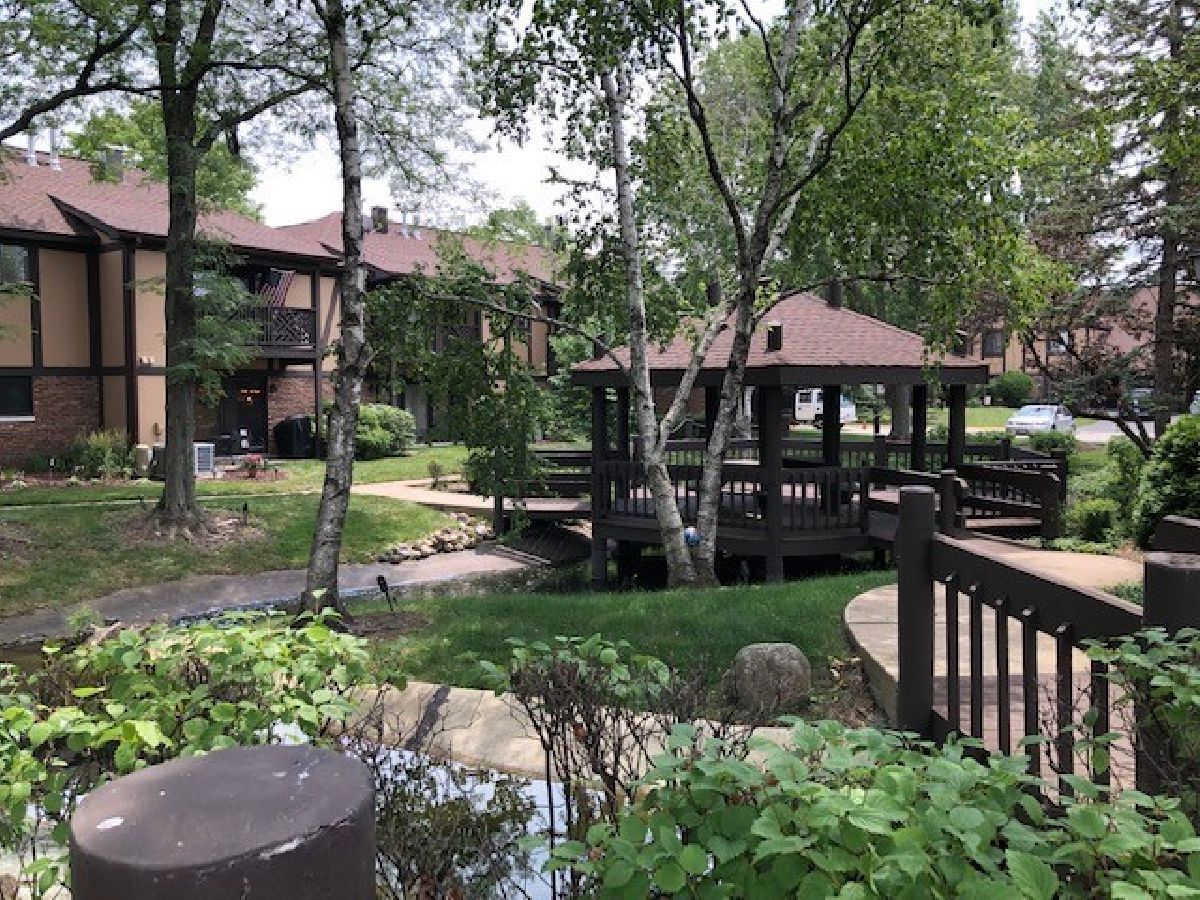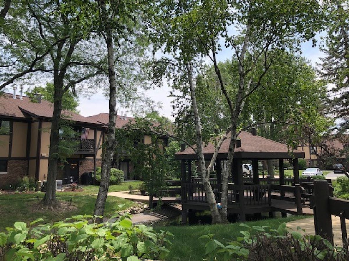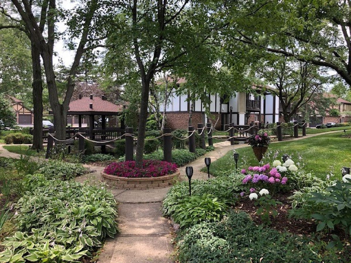 Photos taken from prior to unit being rented. One of the best court yard views from the balcony of this 2nd floor condo in the complex. Winding trails, gazebo and stream beckon for you to wander or relax on your deck and bird watch. Gas range, built - in microwave/hood & refrigerator approximately 3 years old. Ready to move in and make it yours! 2nd floor upgraded condo has ceramic floors in foyer, kitchen and baths. Extended dining room features hardwood floor and has extra 11 x 9 space that can be used for server or sitting/office space. Remote controlled instant on fireplace in the living room is flanked by built-in bookshelves. Cabinets in kitchen and hall bath have been updated. All appliances are included. Spacious primary bedroom with full bath and walk-in closet. Includes 2 storage areas - one on the deck and one in the garage. Great location near downtown historic Wheaton, Metra, shops, dining and the library. Danada area shopping within 5 min with 3 grocers, new Nordstrom Rack plus other stores and dining.