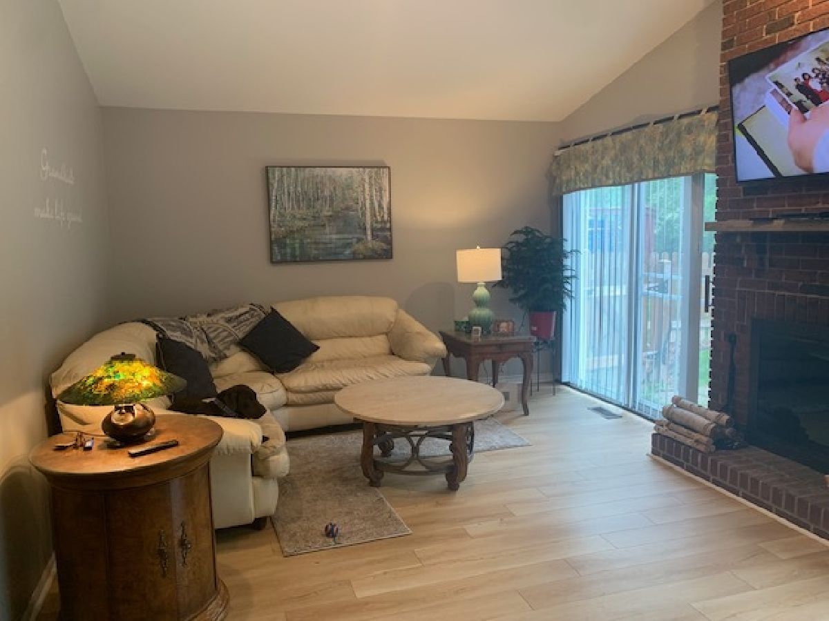 4-bedroom north Naperville home close to train, downtown and I-88. Newer kitchen, appliances and bathrooms. Large family room has vaulted ceiling, wood burning fireplace, new luxury vinyl flooring and 2 sets of patio doors that provide a lot of natural light. Fenced yard has brick patio, shed for added storage and backs up to mature tree line. Master bedroom has large walk-in closet and sitting area, built in shelves and cabinets. Kitchen opens to family room. Laundry room has extra space for storage or a desk. Living room/dining room has additional closet space and oak floors. Front entrance has small brick patio.