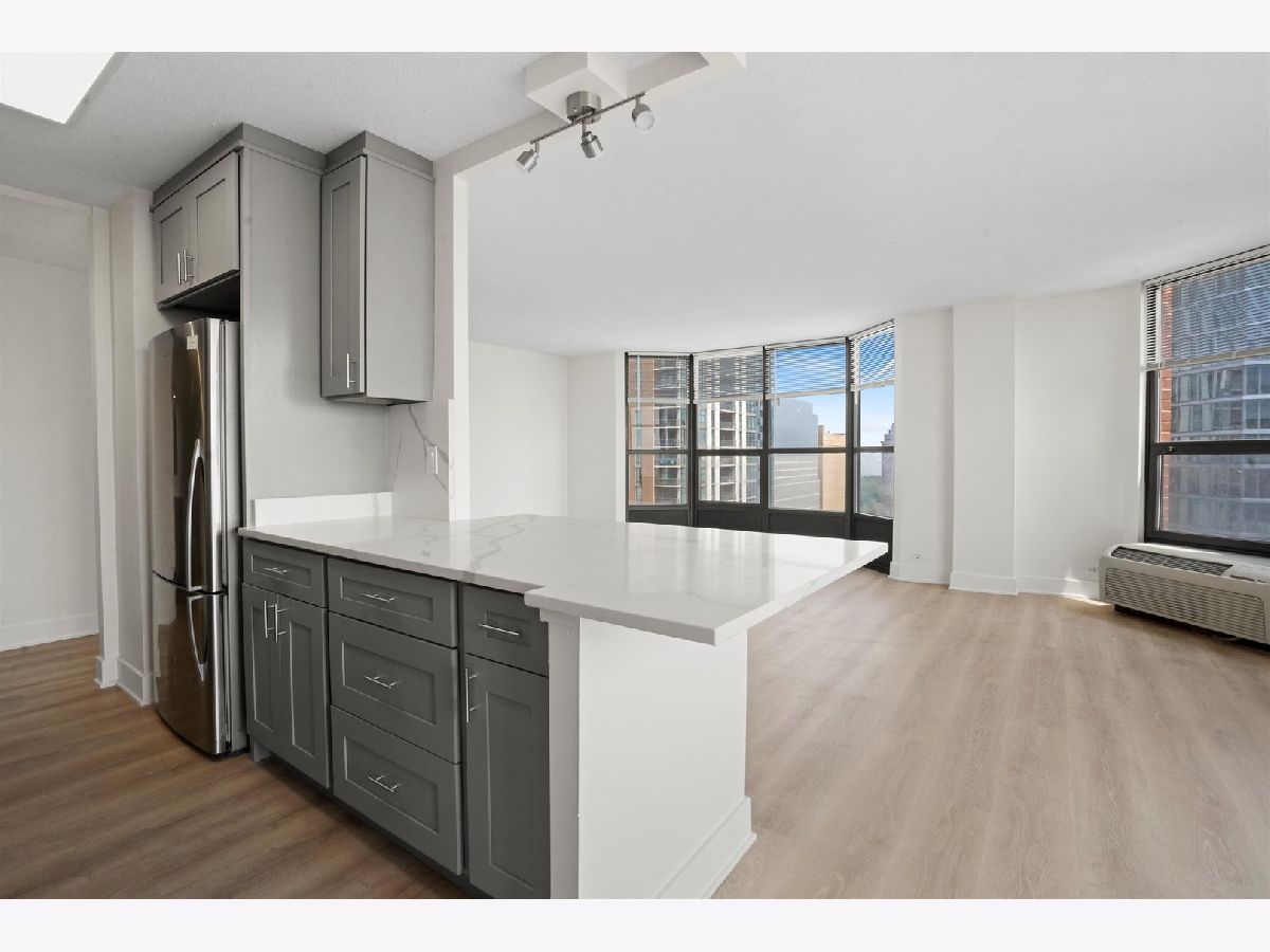 Just renovated!! Large and spacious corner sunny unit with S/E exposure and lake views. 2 beds 2 full baths featuring new LVP flooring throughout, new kitchen cabinets, quartz countertops, and more. Amenities include an outdoor pool and patio, fitness center, and party room. Minutes from everything downtown living has to offer! Close to transit and an easy walk to Grant Park, Lake Michigan, and State St shopping! Rental parking available for $130/month.