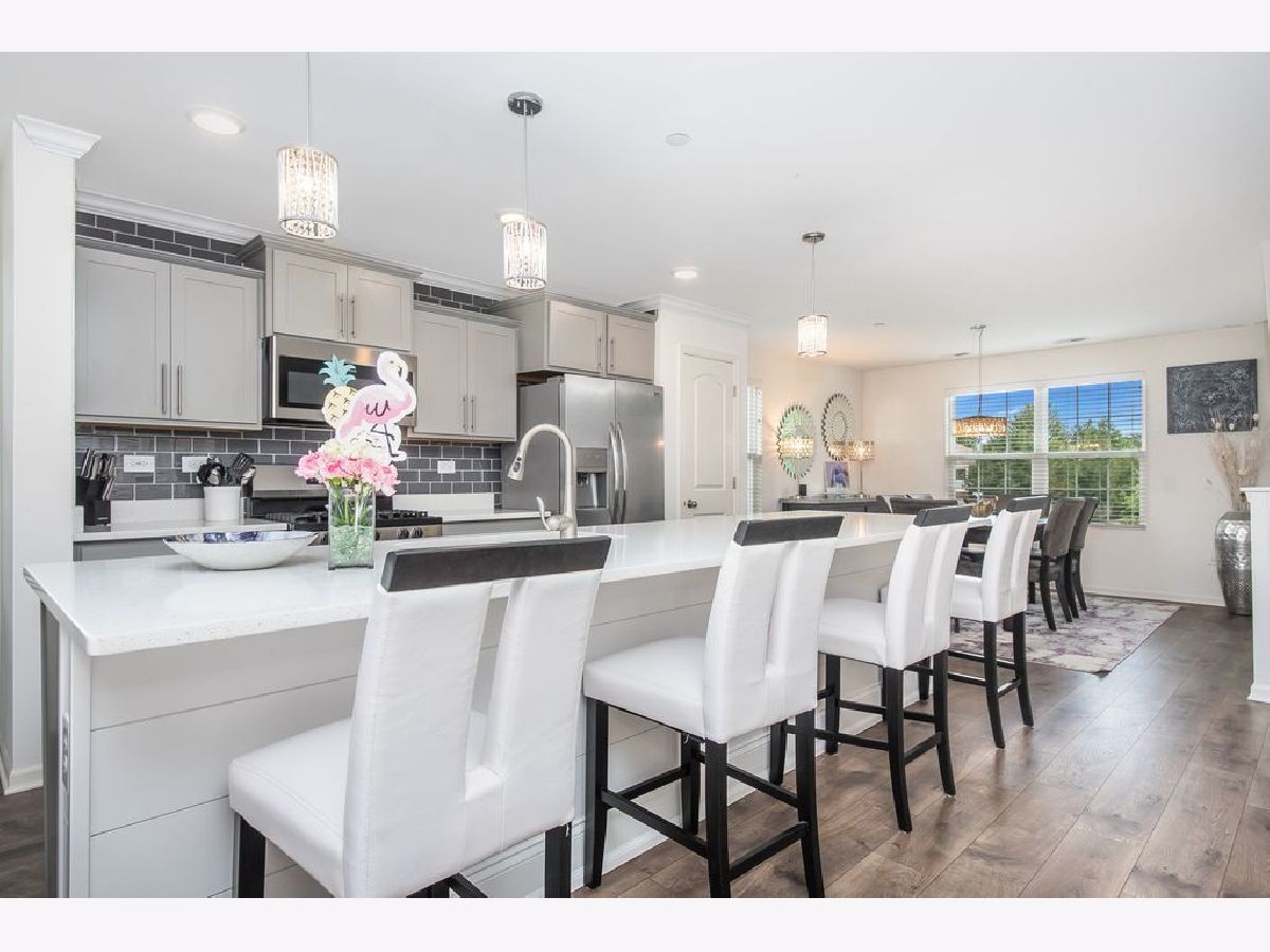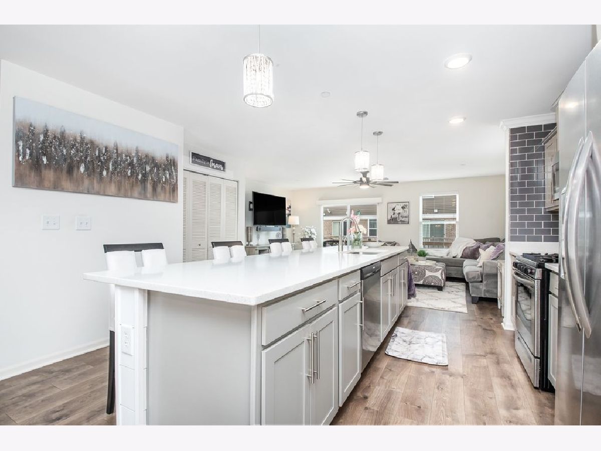 This impeccable sun-soaked end unit, 3 story townhome is fully loaded with high end features. A MUST SEE! 3 bedrooms and 2 1/2 baths plus a two-car garage. The main level has an open floor plan featuring a vast living room, dining area and bright sunny kitchen with all Stainless- steel appliances, upgraded gray cabinetry and subway tile backsplash, designer hardware and lighting throughout. All this is beautifully coordinated with high end white quartz counters including a massive center island/breakfast bar perfect for entertaining! The 3rd level has 3 roomy bedrooms with tons of closet space. All closets have custom shelving. The bright and luxurious primary suite has an ensuite with large double sink vanity and walk in shower. The custom laundry closet is conveniently located upstairs close to the bedrooms. The lower level offers an additional office/2nd family room offering plenty of extra space. A few other luxury upgrades include: an incredible accent wall up the stairs and shiplap. This home is located in the highly sought after School District 204, close to I88, the train, dining and minutes away from downtown Naperville! Welcome home!