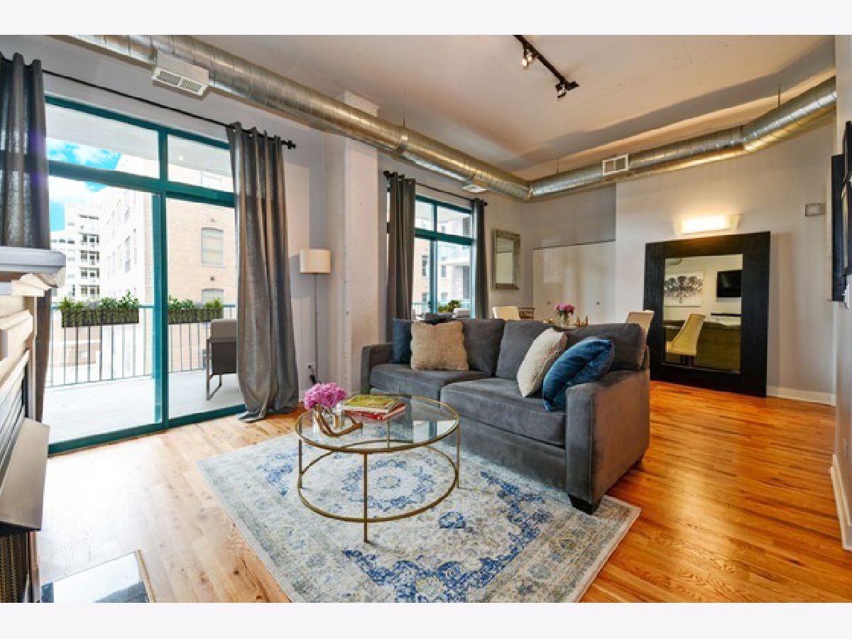 A summer full of Fulton Market fun could be yours with this move-in ready 1-bed, 1-bath concrete loft with a massive 39-foot by 9-foot terrace! You really have to see it to believe the size of this home's outdoor space, accessible through both the living room and bedroom! Enjoy this home's modern design including exposed ductwork, 10-foot ceilings, hardwood floors throughout, gas fireplace and full walls of windows in the living space, bedroom and dining area! The open and updated kitchen offers stainless steel appliances, ample cabinet space and a prep island for added countertop area. In the oversized bedroom find an entire wall of closet space, terrace access, room for a king bed and endless natural light! All of that in the heart of the Fulton Market, close to Mary Bartelme Park, Randolph Street restaurants, Whole Foods/Mariano's, plus easy access to I-90. 1 garage spot available for an additional $200/month.