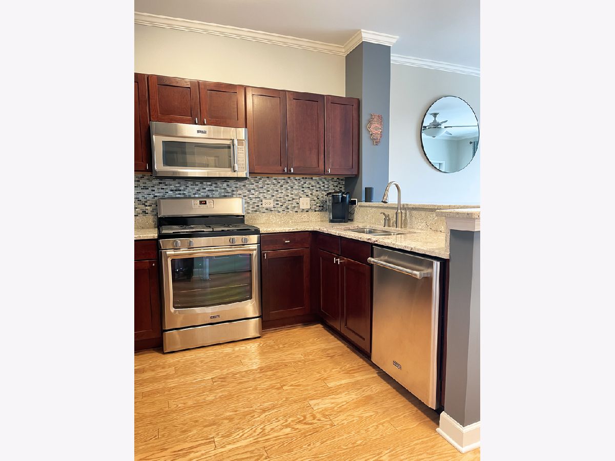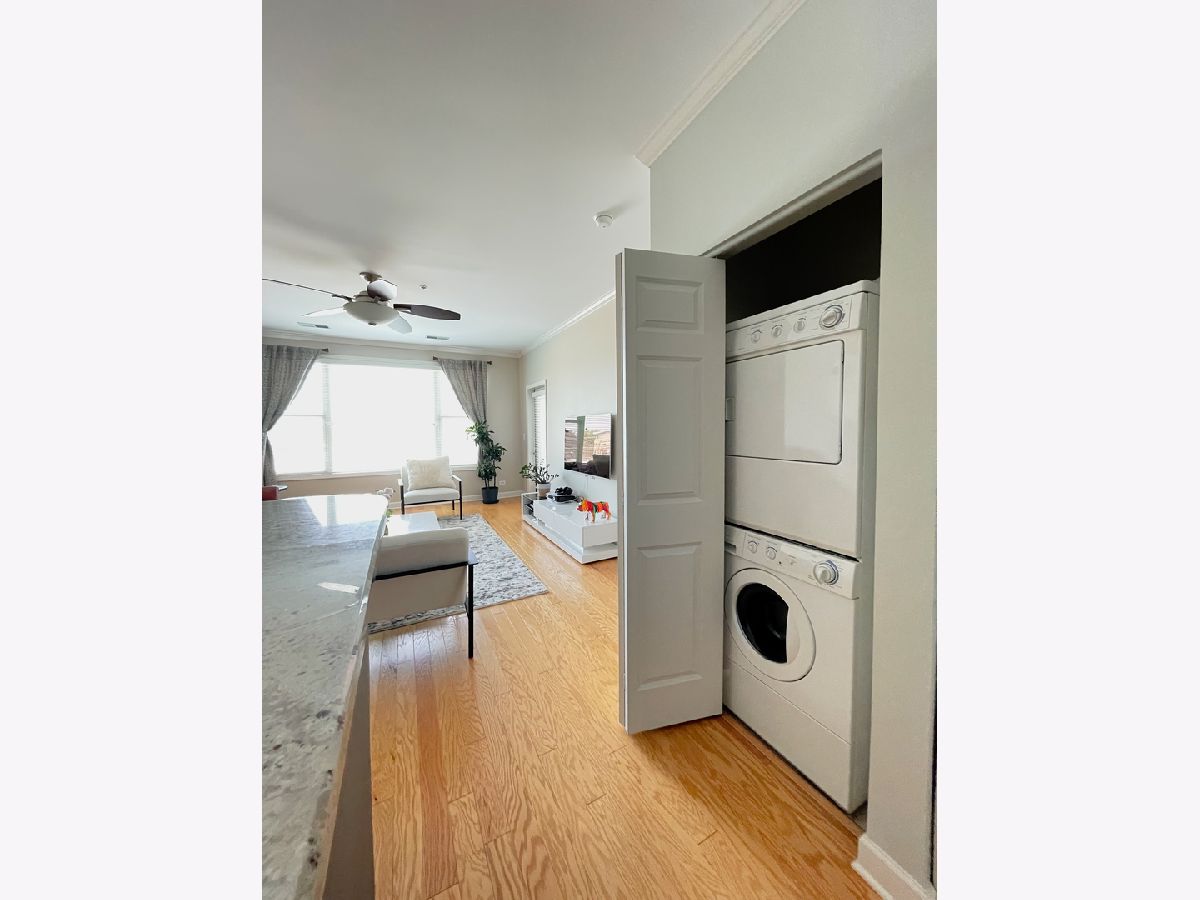 Clean and modern Top Floor unit in the heart of Downtown Downers Grove. Enjoy an open floor plan featuring hardwood floors & large windows. Gourmet kitchen featuring cherry cabinets, granite counters and stainless steel appliances with breakfast bar. Large Primary & Bath with Ceramic Tile & Granite Countertops. In-unit laundry, Balcony, Underground Climate Controlled Parking Space, Storage & Security. Proximate to shopping, restaurants and Downers Grove train station. Don't miss this great opportunity!