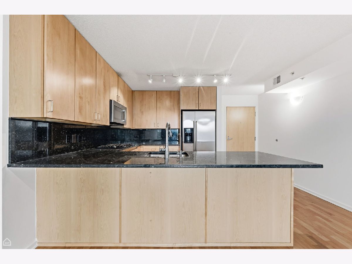 Spacious & beautiful 2 bed, 2 bath home with garage parking and fountain/courtyard view at Skokie's popular Optima Old Orchard Woods available now! This is one of the best 2 bed layouts, with open kitchen, featuring 42" cabinets, granite countertops and stainless steel appliances, with large peninsula/breakfast bar that opens to your living/dining area. Brand new flooring in both bedrooms and the unit is freshly painted! Upgraded, king-sized primary bedroom suite with walk-in closet plus marble bath with double sinks. Well-sized second bedroom is great for guests, roommates or a light-filled home office, with adjacent guest bath with tons of storage. Rent includes gas, heat, cable and water. Private balcony plus in-unit laundry, too! Well-maintained elevator building also features amazing amenities: large swimming pool, fitness center, party room, outdoor gardens, tennis court and on-site dry cleaners. Conveniently located across from the Forest Preserve and near Old Orchard Mall dining/shopping, expressway, Lifetime Fitness, and convenient to downtown Evanston & Skokie. Pets welcome. Come home!