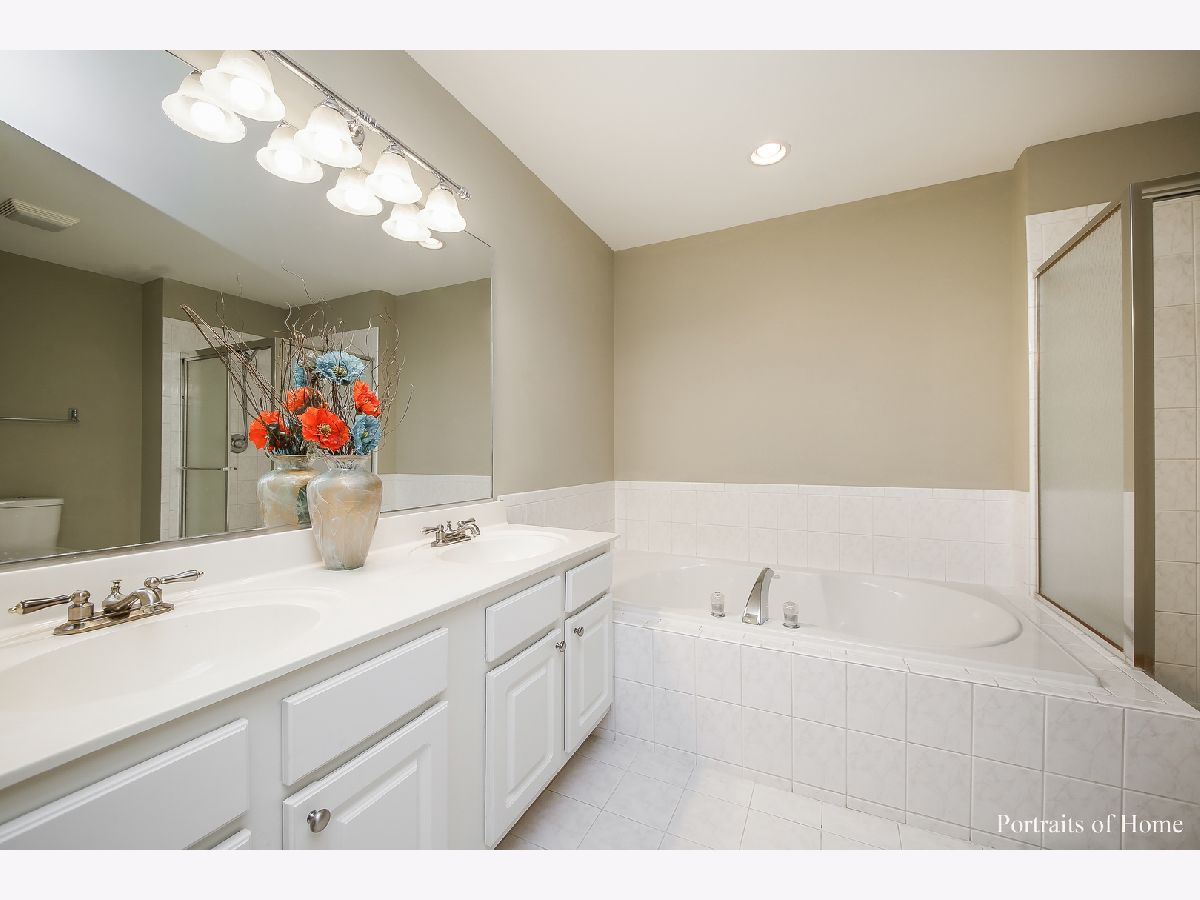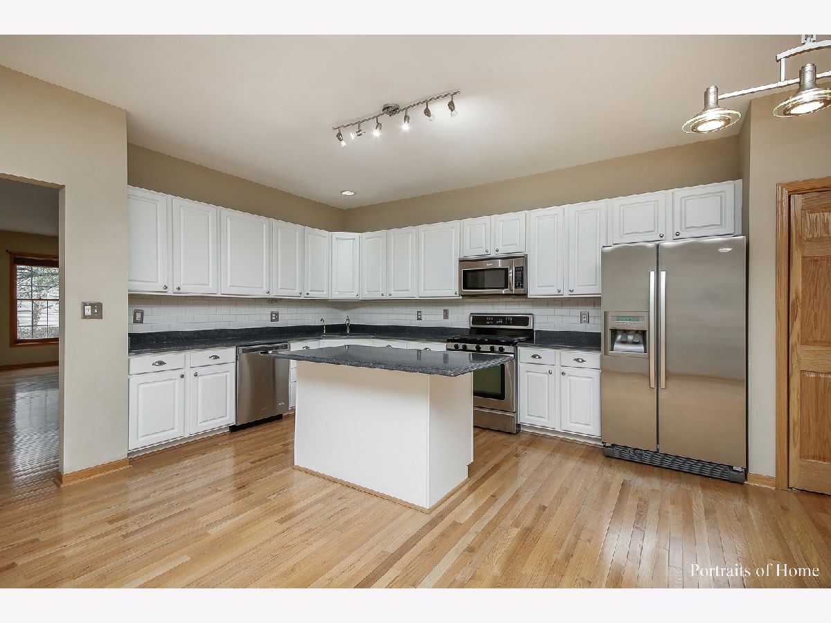 Gorgeous end unit townhouse in Mill Creek. Offering 3 bedrooms, 2 1/2 baths, a full basement and a 2 car garage. Beautiful hardwood flooring in the living and dining room. The kitchen features white cabinets, newer quartz countertops, subway tile backsplash, stainless steel appliances, a large island and opens to the family room with wood burning fireplace with gas start. The eat in area has a door leading to a screened in patio as well as an outdoor patio perfect for grilling and entertaining! The master bedroom has vaulted ceilings, new carpet 2020, a walk in closet and access to the private master bathroom with dual vanity, a soaker tub and separate shower. Access to your detached garage which has extra high ceilings and additional attic access is provided through your screened in porch. The full, unfinished basement has epoxy'd floor, furnace, a/c and water heater new in 2016. Powder room updated in 2006, totally neutral throughout, 2nd floor laundry, 6 panel doors, all appliances stay, wood blinds throughout...Fabulous location close to the Metra and surrounded by open space with miles of walking/bike trails and golfing. All this and feeds into top rated schools.