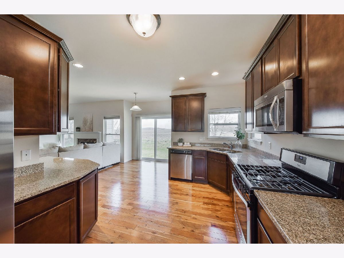 This is your chance to own a front row seat to the most incredible sunsets! This Mill Creek home boasts hardwood floors throughout the main level, a private study, and a kitchen with 42-inch cabinets, granite countertops and stainless-steel appliances. Upstairs you'll find the Primary suite as well as two secondary bedrooms, full bath #2, and the laundry room. The basement is unfinished, roughed in for a bathroom, and awaiting your finishing touch! This home is situated on a court with a large open space in front, but the backyard is where the magic happens. The wide open views across acres of farmland will never get old. Mill Creek is a wonderful community with something for everyone! Two golf courses, tennis courts, walking trails, baseball fields, and close proximity to in-town Geneva and all of its fabulous restaurants and boutique shopping. There is a community pool available with membership, and you'll enjoy easy access to the La Fox train station. Don't miss it!