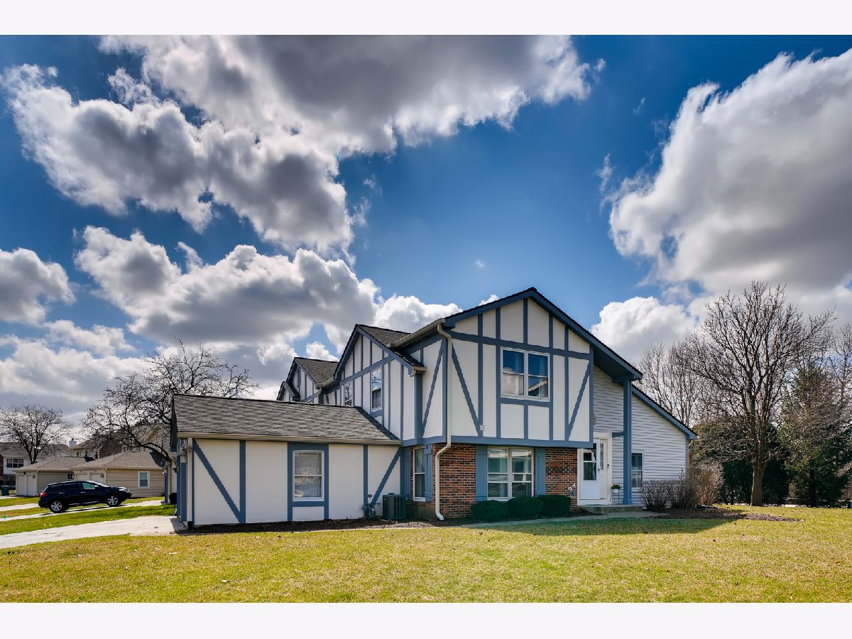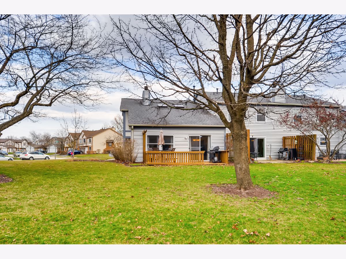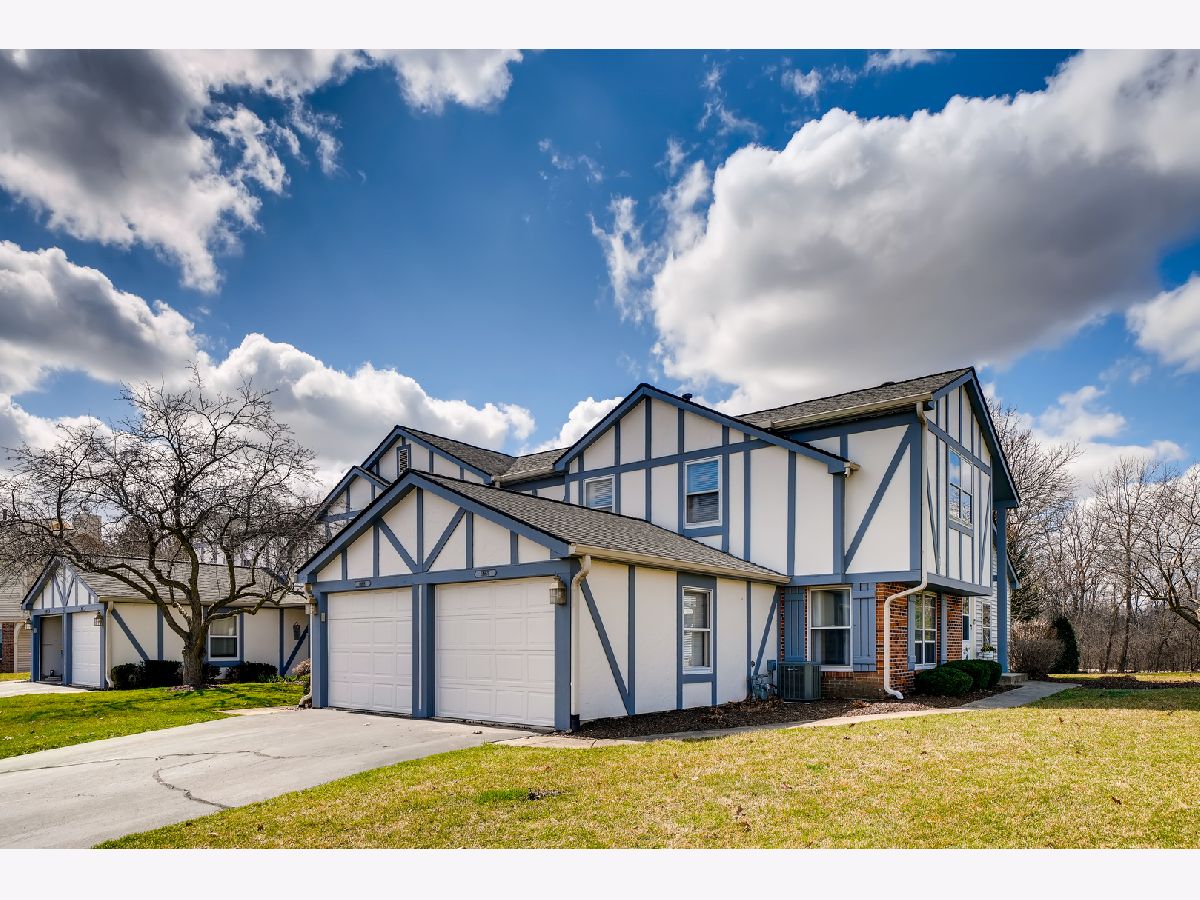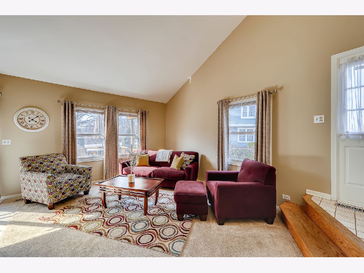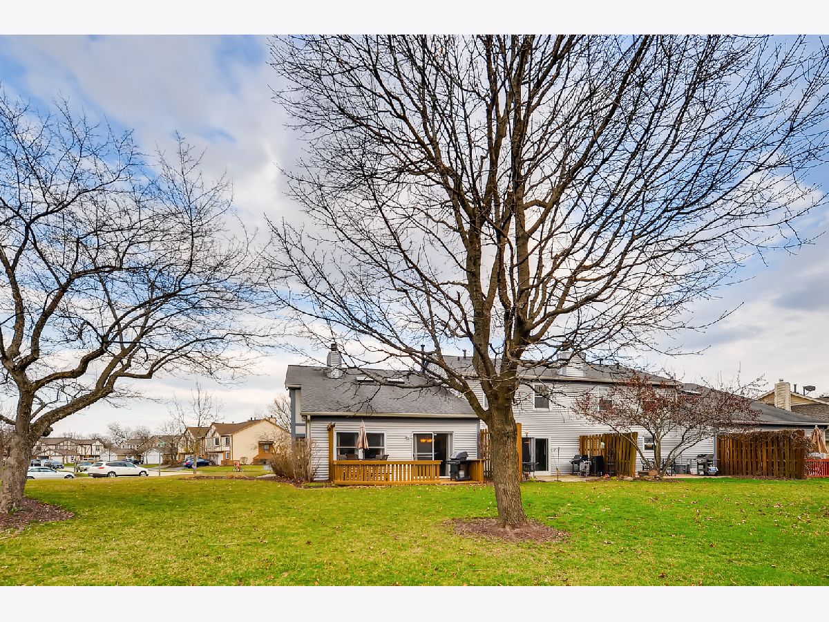 Great location, close to town, train, hospital, schools, parks including volleyball courts and basketball courts, Prairie Path, forest preserve, shopping, and provides easy commute to expressways. The bright and sunny end-unit backs up to forest preserve across the street and affords beautiful views of Sunsets over the woods. This open spacious floor plan features a vaulted living room and vaulted dining area overlooking updated kitchen with painted white cabinets, granite counters and granite backsplash with under cabinet lighting, stainless steel appliances, breakfast bar, all updated light fixtures throughout the home. Sliding glass doors lead from dining room out to newly stained deck which is great for entertaining and large open grassy areas. There is a first floor bedroom that is versatile in use and could convert to a family room with cozy fireplace with new herringbone stone surround and new mantle, which is the highlight of the room. There is a full bath on the first floor with shower, and newer vanity, mirror, lighting, highline Kohler toilet, etc. The large laundry room features a washer and dryer, laundry sink with cabinet, and rod for hanging clothes and ample space for storage, leading to attached garage with electric door opener, also note the long driveway with plenty of room to park 2 cars. The second floor overlooks the dramatic 2 story living room and features the Master bedroom with huge walk-in closet and secret storage room that can be accessed through the master closet, offering lots of additional storage. There is also access to the Master Bath which also has a door leading to the hallway, so it can serve as a 2nd floor bath also, and features a vaulted ceiling with skylight, newer vanity, mirror, commode, lighting, etc. There is a guest bedroom on second floor with closet and also a linen closet in the hall and a skylight in the hallway for additional light. This totally updated home features updated kitchen and baths, all new white 6 panel doors and white trim throughout, freshly painted interior, all new lighting, new custom fireplace, new energy efficient draperies, everything is immaculate and ready for you to move into! Hurry, this won't last!