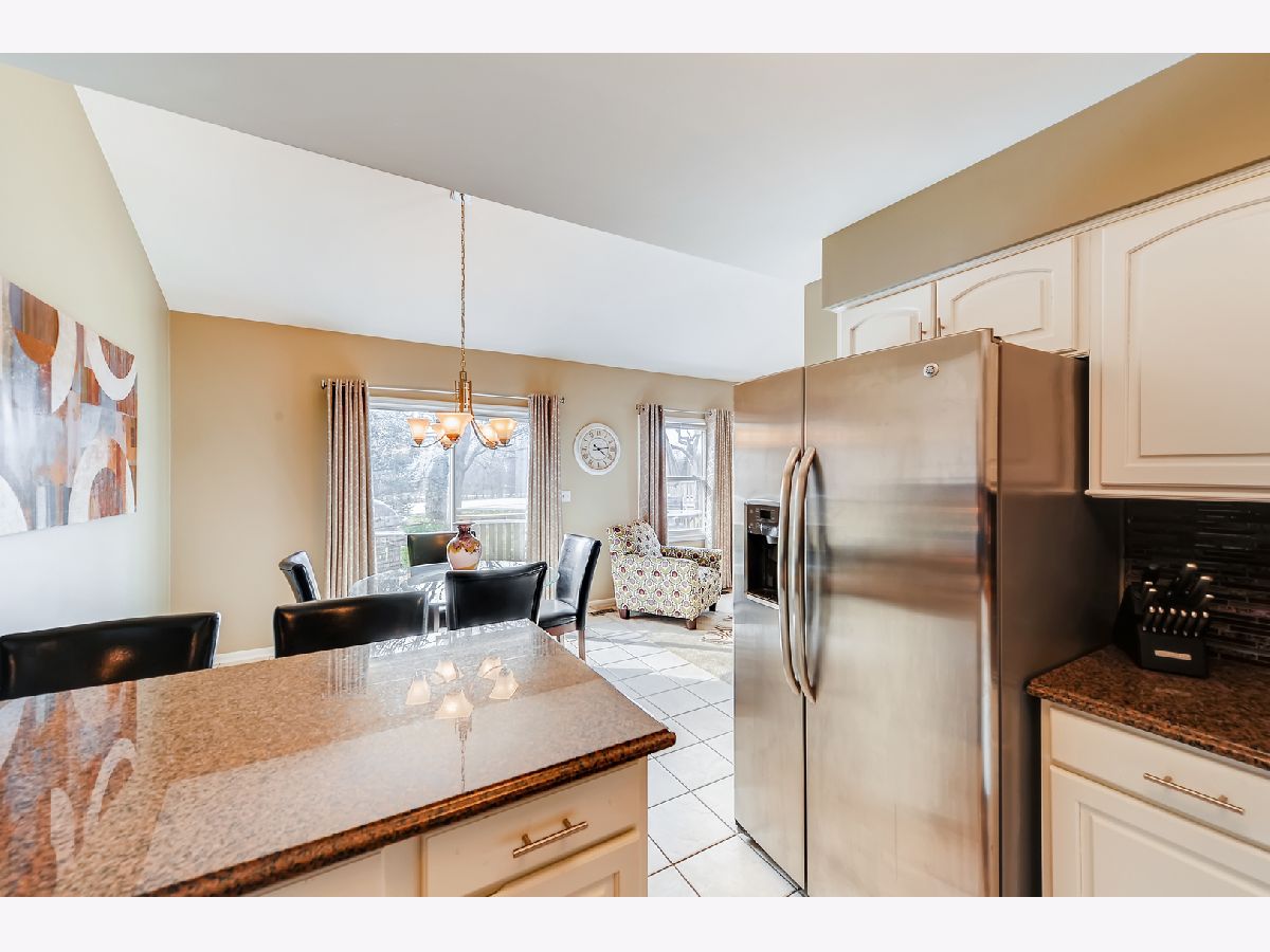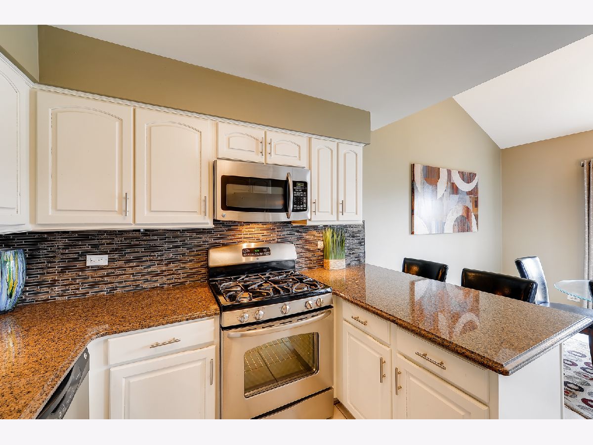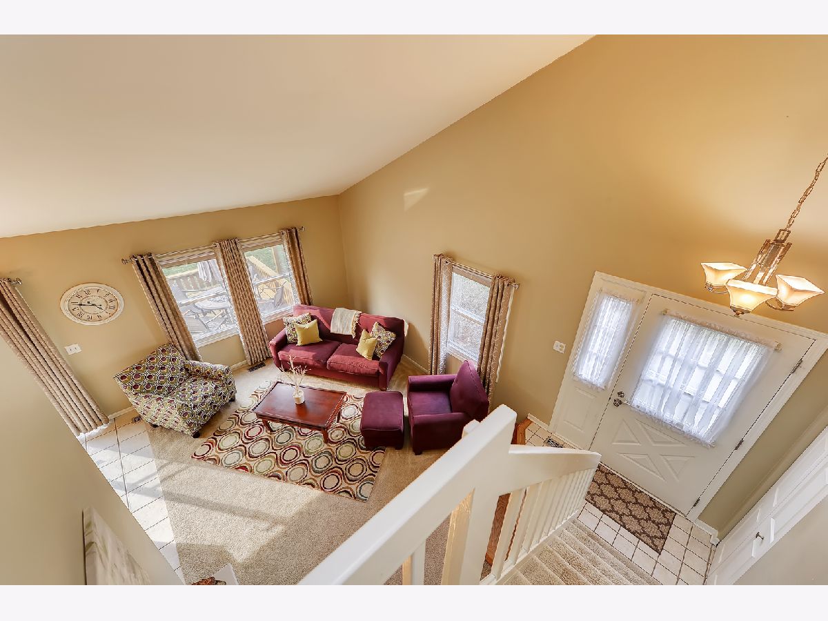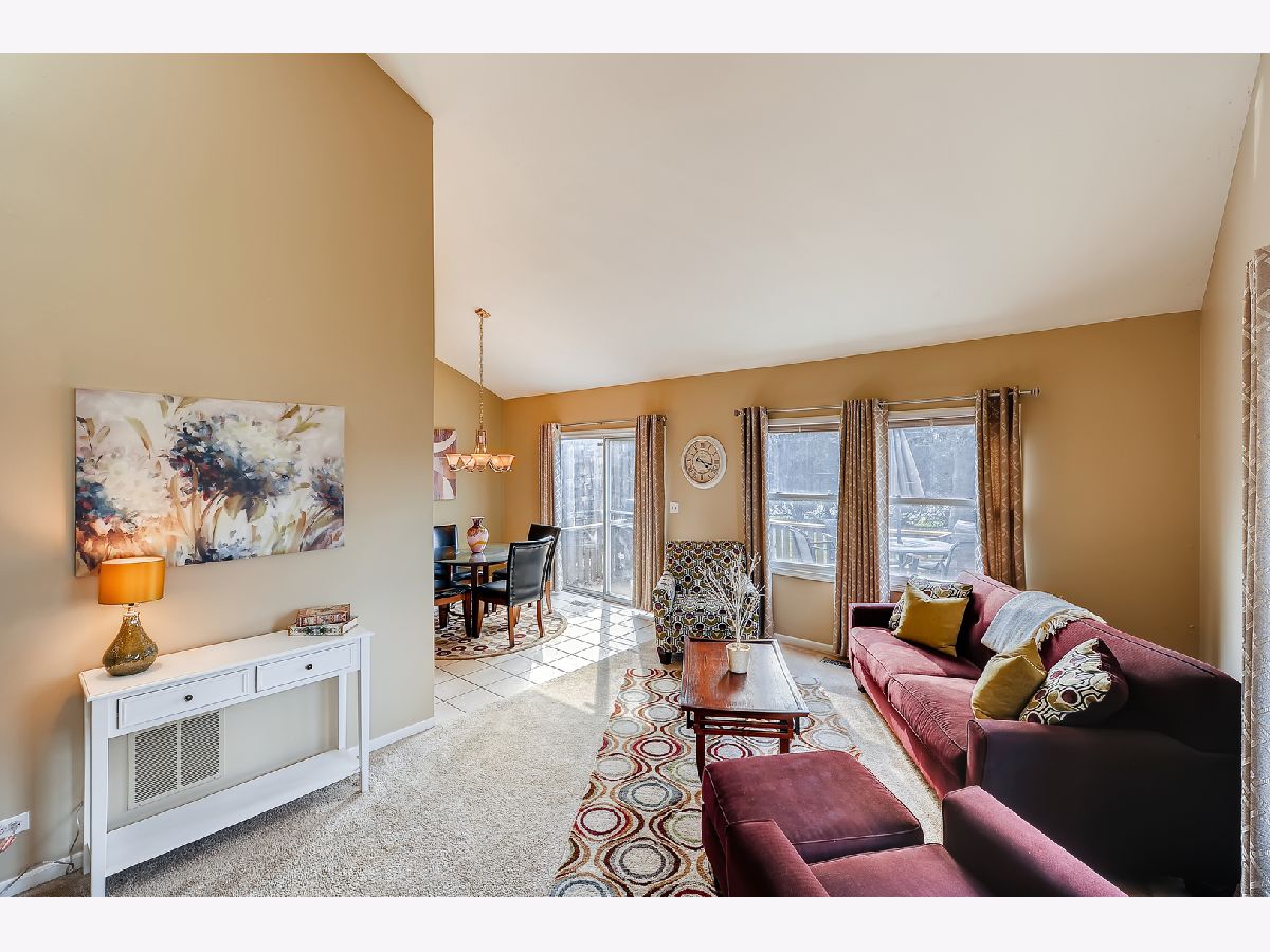 Great location, close to town, train, hospital, schools, parks including volleyball courts and basketball courts, Prairie Path, forest preserve, shopping, and provides easy commute to expressways. The bright and sunny end-unit backs up to forest preserve across the street and affords beautiful views of Sunsets over the woods. This open spacious floor plan features a vaulted living room and vaulted dining area overlooking updated kitchen with painted white cabinets, granite counters and granite backsplash with under cabinet lighting, stainless steel appliances, breakfast bar, all updated light fixtures throughout the home. Sliding glass doors lead from dining room out to newly stained deck which is great for entertaining and large open grassy areas. There is a first floor bedroom that is versatile in use and could convert to a family room with cozy fireplace with new herringbone stone surround and new mantle, which is the highlight of the room. There is a full bath on the first floor with shower, and newer vanity, mirror, lighting, highline Kohler toilet, etc. The large laundry room features a washer and dryer, laundry sink with cabinet, and rod for hanging clothes and ample space for storage, leading to attached garage with electric door opener, also note the long driveway with plenty of room to park 2 cars. The second floor overlooks the dramatic 2 story living room and features the Master bedroom with huge walk-in closet and secret storage room that can be accessed through the master closet, offering lots of additional storage. There is also access to the Master Bath which also has a door leading to the hallway, so it can serve as a 2nd floor bath also, and features a vaulted ceiling with skylight, newer vanity, mirror, commode, lighting, etc. There is a guest bedroom on second floor with closet and also a linen closet in the hall and a skylight in the hallway for additional light. This totally updated home features updated kitchen and baths, all new white 6 panel doors and white trim throughout, freshly painted interior, all new lighting, new custom fireplace, new energy efficient draperies, everything is immaculate and ready for you to move into! Hurry, this won't last!