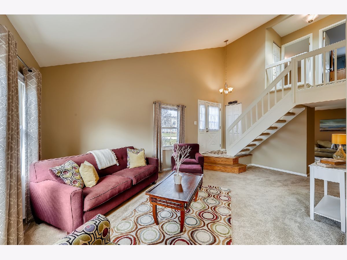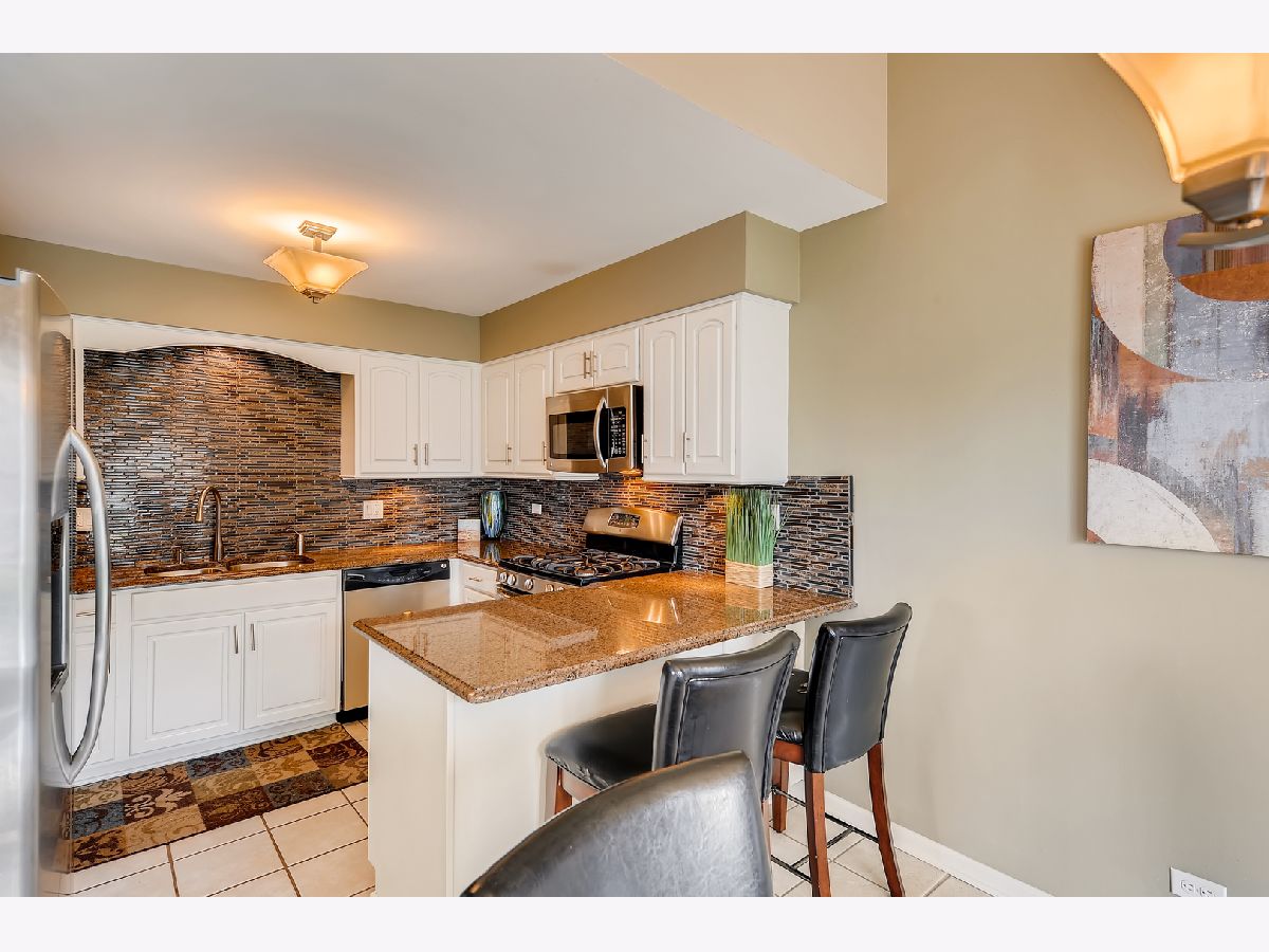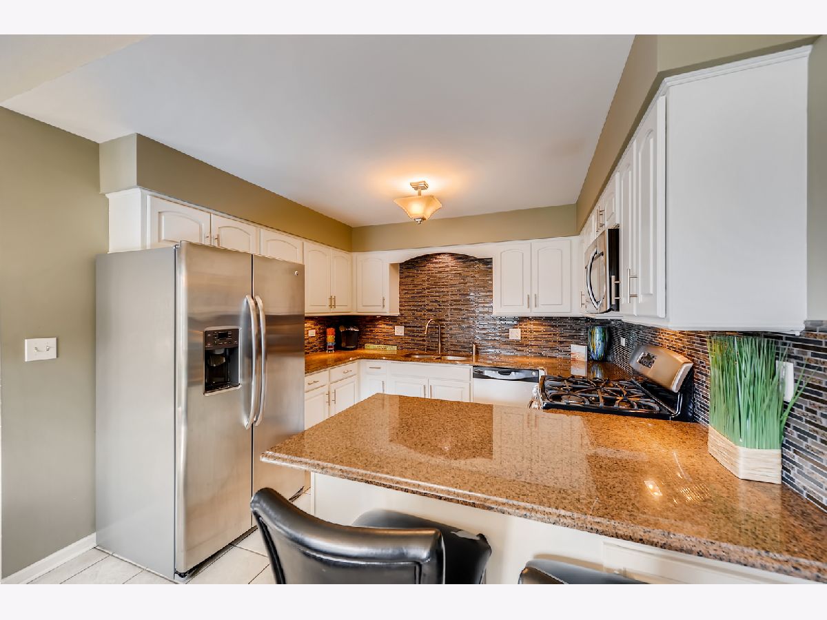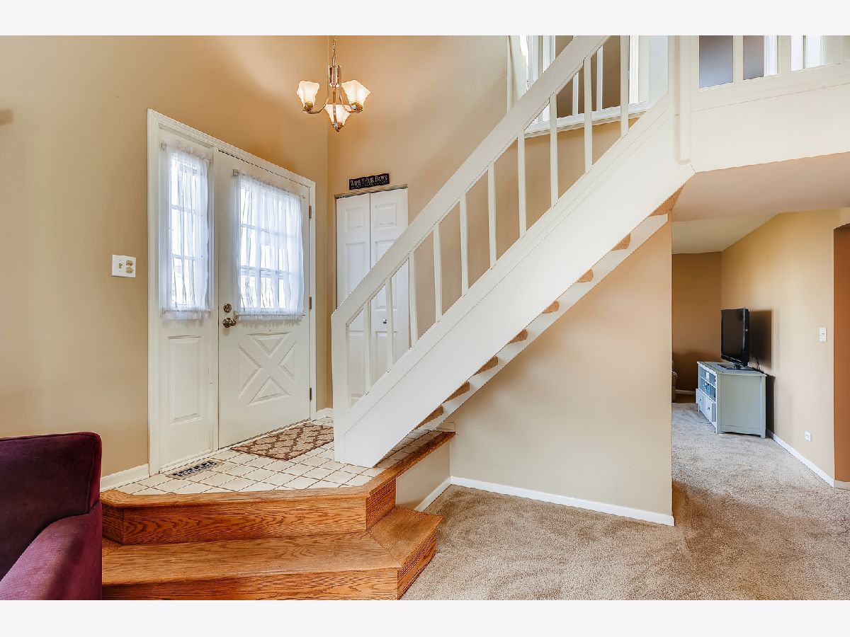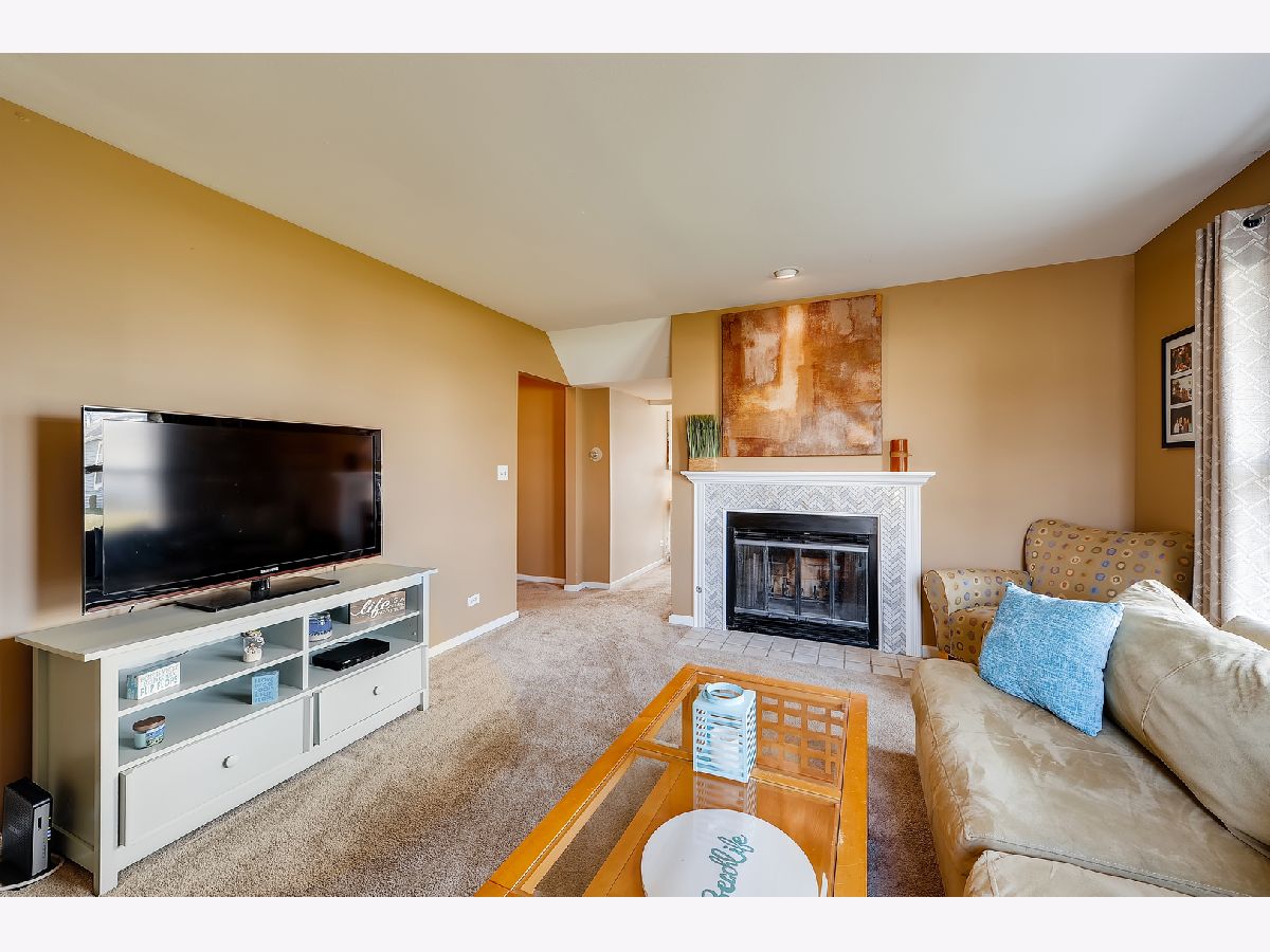Great location, close to town, train, hospital, schools, parks including volleyball courts and basketball courts, Prairie Path, forest preserve, shopping, and provides easy commute to expressways. The bright and sunny end-unit backs up to forest preserve across the street and affords beautiful views of Sunsets over the woods. This open spacious floor plan features a vaulted living room and vaulted dining area overlooking updated kitchen with painted white cabinets, granite counters and granite backsplash with under cabinet lighting, stainless steel appliances, breakfast bar, all updated light fixtures throughout the home. Sliding glass doors lead from dining room out to newly stained deck which is great for entertaining and large open grassy areas. There is a first floor bedroom that is versatile in use and could convert to a family room with cozy fireplace with new herringbone stone surround and new mantle, which is the highlight of the room. There is a full bath on the first floor with shower, and newer vanity, mirror, lighting, highline Kohler toilet, etc. The large laundry room features a washer and dryer, laundry sink with cabinet, and rod for hanging clothes and ample space for storage, leading to attached garage with electric door opener, also note the long driveway with plenty of room to park 2 cars. The second floor overlooks the dramatic 2 story living room and features the Master bedroom with huge walk-in closet and secret storage room that can be accessed through the master closet, offering lots of additional storage. There is also access to the Master Bath which also has a door leading to the hallway, so it can serve as a 2nd floor bath also, and features a vaulted ceiling with skylight, newer vanity, mirror, commode, lighting, etc. There is a guest bedroom on second floor with closet and also a linen closet in the hall and a skylight in the hallway for additional light. This totally updated home features updated kitchen and baths, all new white 6 panel doors and white trim throughout, freshly painted interior, all new lighting, new custom fireplace, new energy efficient draperies, everything is immaculate and ready for you to move into! Hurry, this won't last!