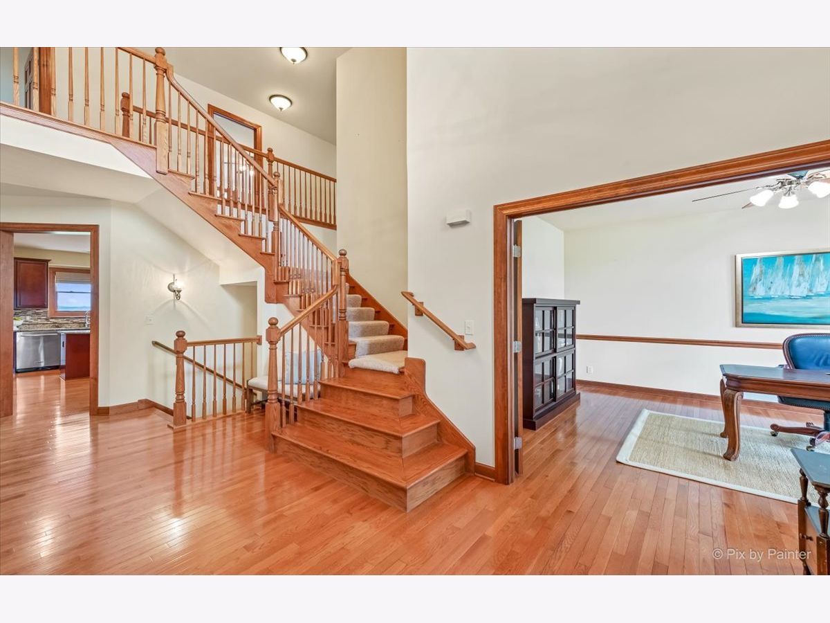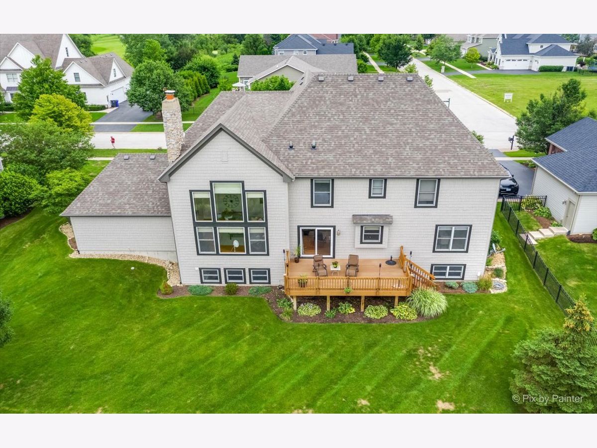 Gorgeous home situated on one of the most premium and secluded lots in sought-after North Mill Creek. Enjoy beautiful sunsets off your large back porch facing a picturesque lake and golf course view without a neighbor in sight. This beautiful meticulously maintained home boasts over 5,500 square feet of living space and a 4 car garage, beautiful office on the first floor, 4 bedrooms above and space to add a fifth below. Enjoy a private patio off the front of the home into your grand room and dining area. Follow your dining area around to find your gourmet kitchen with oversized pantry, 42" cabinets, SS appliances, granite counters and 35 bottle wine fridge. The kitchen features an eat-in dining space which opens to your deck and large living room fitted with surround sound speakers. Enter your second floor by one of two grand staircase entrances where you'll find 4 bedrooms, one guest with an on-suite bathroom, 2 bedrooms which share a Jack and Jill bath and a large master bedroom with loft seating area with view to living room below. Relax and unwind in your generous master bathroom with spa-like amenities, two sinks, large tub and separate shower. The master has a very large, oversized walk-in closet. The basement has room to add your own touch with a full bathroom and plenty of space to add a bedroom and entertaining areas. Sprinkler systems around the home will keep your landscaping well maintained. Gas hookup on deck to attach your own gas grill for BBQ season. NEW roof in 2016; NEW A/C & furnace in 2020. Oversized 4 car garage. Top rated schools. Neighborhood has a community pool, tennis courts, multiple playgrounds and miles of nature trails. Nearby access to shopping, dining and Metra.