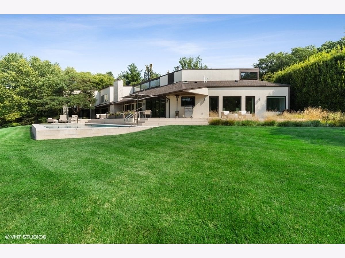 Absolutely magazine worthy, quality crafted contemporary home on extremely private lot on one of Lake Forest's most prestigious roads. Tucked away down a beautiful tree lined driveway you will find this 5000+sf, 5+ bedroom home beaming in sunshine! Walls of windows, vaulted ceilings, open floor plan and designer kitchen and baths are breathtaking! What I like best about this estate is the expansive areas allowing for full family gathering or entertaining but then having the luxury of retreating to the various "get away rooms" for rest, play, work or study. The open Great room/ Dining room are the center piece of this home overlooking the 5 star hotel resort-like pool and spa! Highly functional white kitchen boasts high end appliances, Italian marble center island and space for eat-in table plus built in cabinets and shelves. First floor primary suite is tucked nicely away from the living area and offers wall of windows overlooking the fruit tree's and grapevines, has a gorgeous bath complete with oversized shower, soaking tub, huge walk-in closet and laundry. Not to mention the primary suite has doors leading to patio and is just steps from a refreshing plunge in the pool! Two first floor offices offer convenience of working from home a breeze! Awesome library/family room, billiard room with custom paneling and sunroom plus an extra full bath boasting steam shower and heated floors as well as a guest powder room complete the first floor. Second floor showcases two bedrooms which Jack and Jill plus another en suite bedroom ALL with amazing views of the yard! 2nd floor oversized laundry room as well. Lower Level consists of very high ceilings and could easily be finished off if someone still needs more space. The yard! On my list of best backyards ever! So amazing and peaceful! South facing and loaded with sunshine making it the ideal lot for a pool, spa, vineyard and garden! Valders stone patio blended with Ipe wood decking and built-in outdoor fireplace set the tone here. Very versatile floor plan offering two options for Primary suite- first or second floor. Best way to describe this home is "Zen Perfect!" SELLER REQUESTS AUGUST CLOSING! Showing blocks are Wednesday (3/23) 2-6pm, Thursday (3/24) 10-12 and Friday (3/25) 11-1.