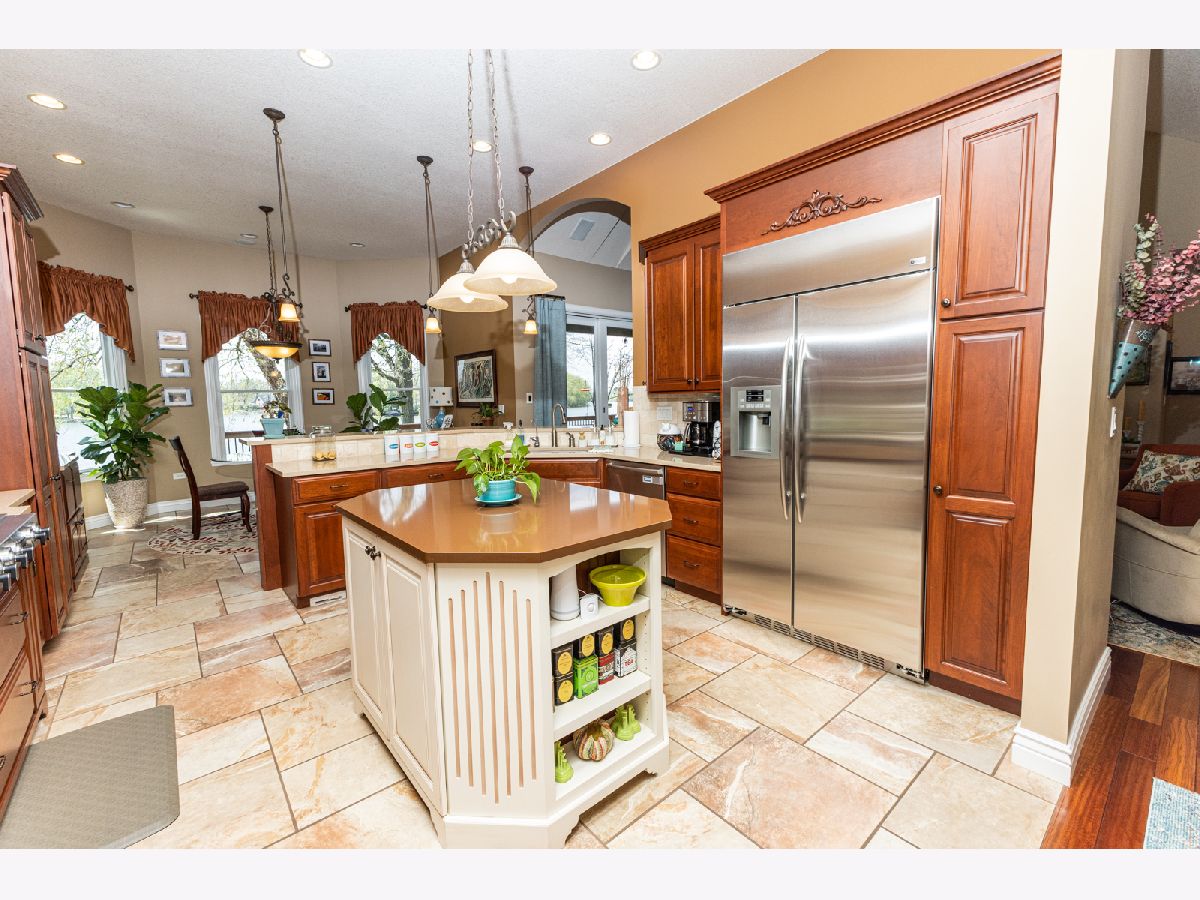 Located just outside Aroma Park, Illinois is this Amazing Waterfront home on boatable area of Kankakee River! 3 bedrooms with 2 full and two 1/2 baths with spacious, finished bonus room. Enjoy scenic views of the Kankakee River and nature from almost every area of the home. The foyer opens to a study and formal dining room. The living room features include a gas fireplace and a wall of sliding glass doors leading to the 3 tiered Timbertech deck that overlooks the beautiful landscaped yard and Kankakee River. Gourmet Kitchen features Amish Cherry Cabinets, Quartz Counter tops and Built-in appliances. The master bedroom has a door leading to the deck, large walk-in closet, bathroom with double vanities, Oasis whirlpool tub and walk-in shower. The attached oversized 3 car garage has radiant heat and 8ft doors. Features include In-ground Sprinkler system, On demand hot water, 95% Efficiency Furnace, Brick and Hardie Siding, Nuvo Sound System, R/I for Central Vac, Professionally landscaped yard and Stamped Concrete patio. Watch the wonders of bald eagles and other wildlife from your perfect backyard! Ideal for entertaining! 20kw Kohler Generator October 2020, Custom Window Shades, 180 ft. deep Well in 2009. Pump is 120' deep. Electrical is all in conduit. Gas Hookup for Grill on deck. Flooding is FEMA zone AE. Please check Floodsimple, Naptuneflood or Franklin Flood for Secondary flood Insurance and check with your mortgage company for assistance. Engineered Elevation certificate is available for review and this property is above the 500 year flood mark.