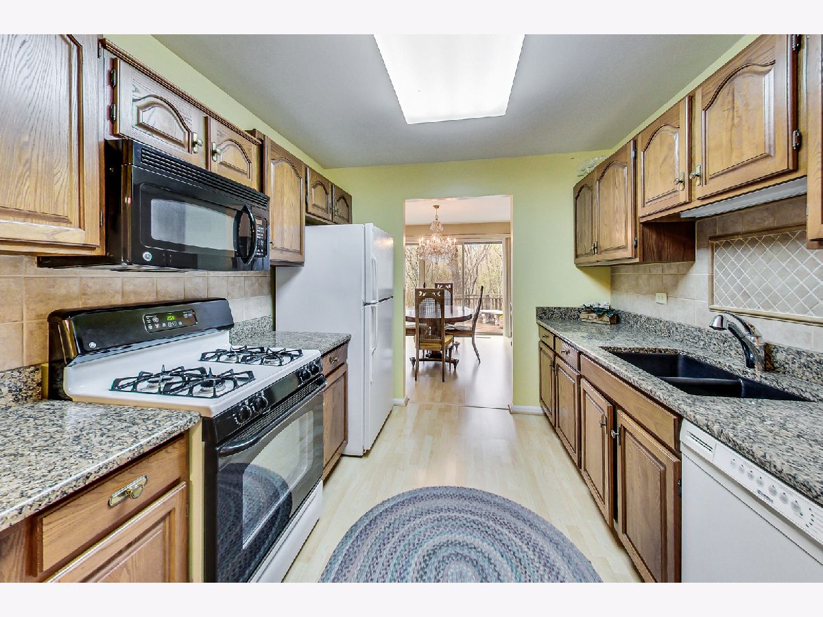 Enjoy Ranch living in this tasteful, sun filled, well maintained 2 Bedroom/2 Bath end unit townhome in Sutton Place. Open floor plan blends Foyer, Living & Dining rooms - great for entertaining & holiday gatherings. Great Kitchen with solid wood cabinets, tiled backsplash, granite & separate eating area. Master suite with Bath/shower & double walk in closets. 2nd Bedroom is being used as Den but with double doors & closet can easily be back to 2nd bedroom. 1st floor laundry/Mud room right off 2+Car Garage. Full Basement (unfinished) allows for 1675 additional sf. to create more livable space if desired or storage. Neutral paint, wood floors, floor to ceiling windows, slider out to wood deck with privacy & lush surroundings. A highly desirable "Blue-chip" destination with sweeping green space, wooded views and trails. Award winning school District 103 & Stevenson High School District 125. Conveniently located near Balzer Park, Restaurants & I-94. HWHeater/Sump 2017, A/C-2012, Furnace 2010.