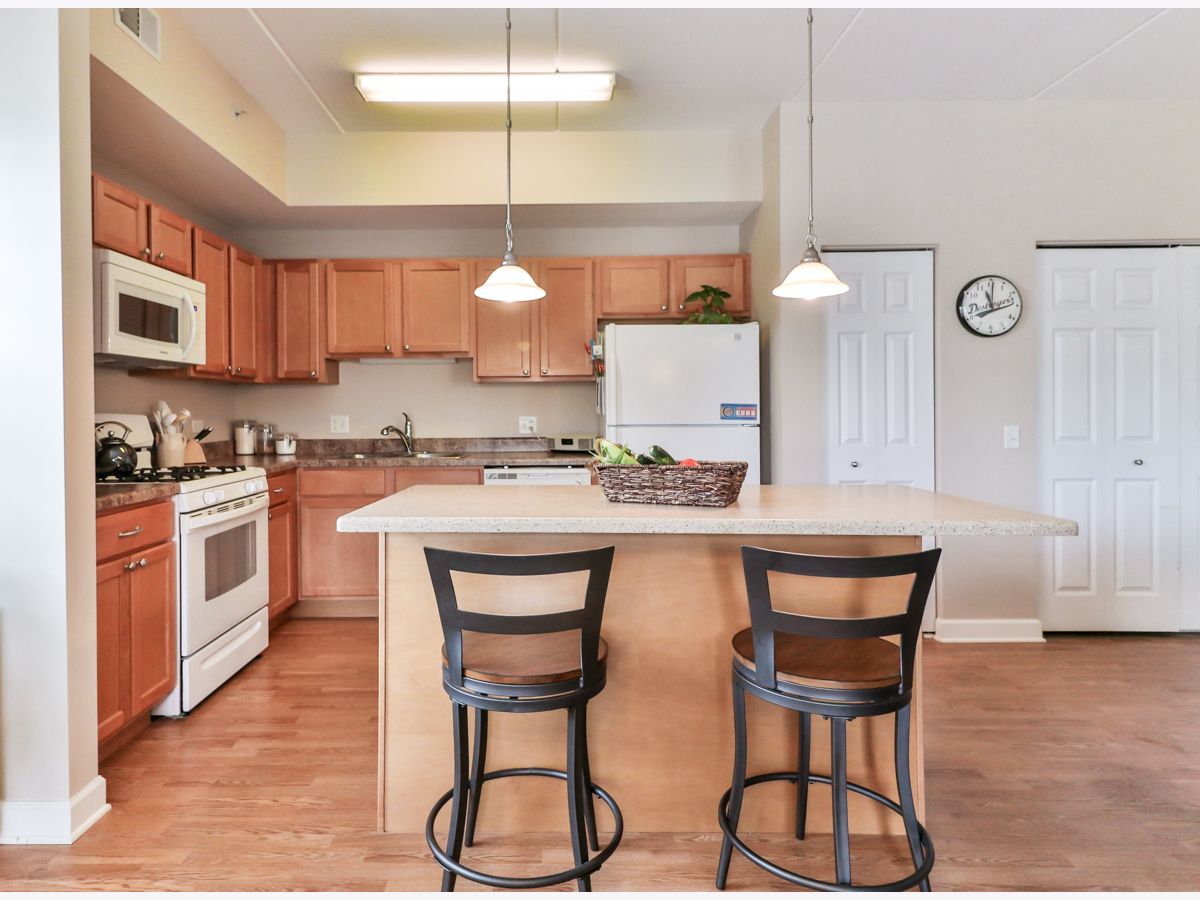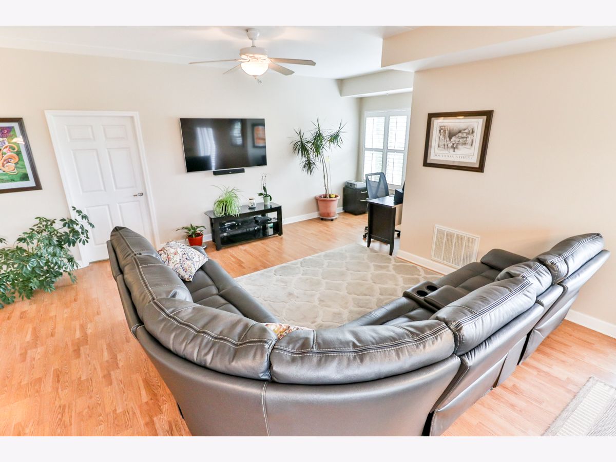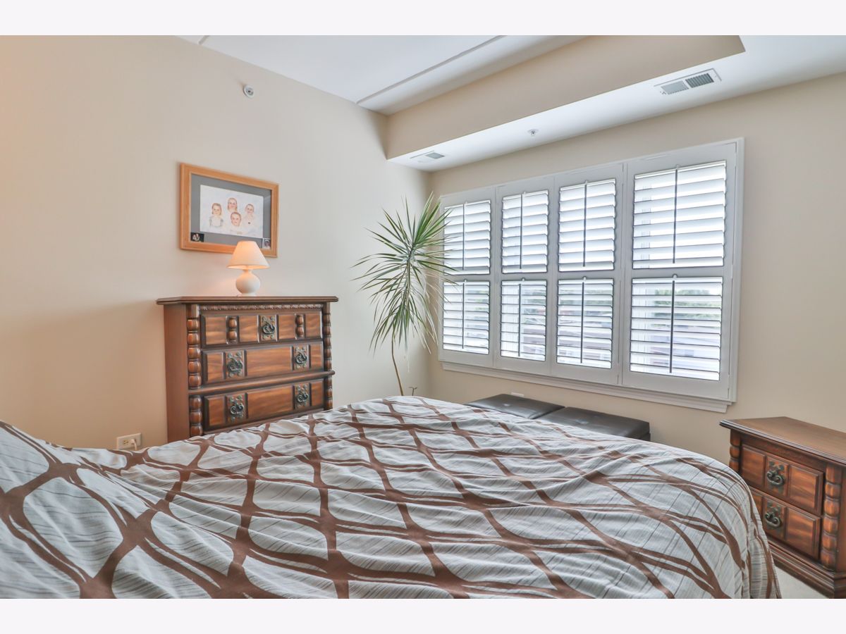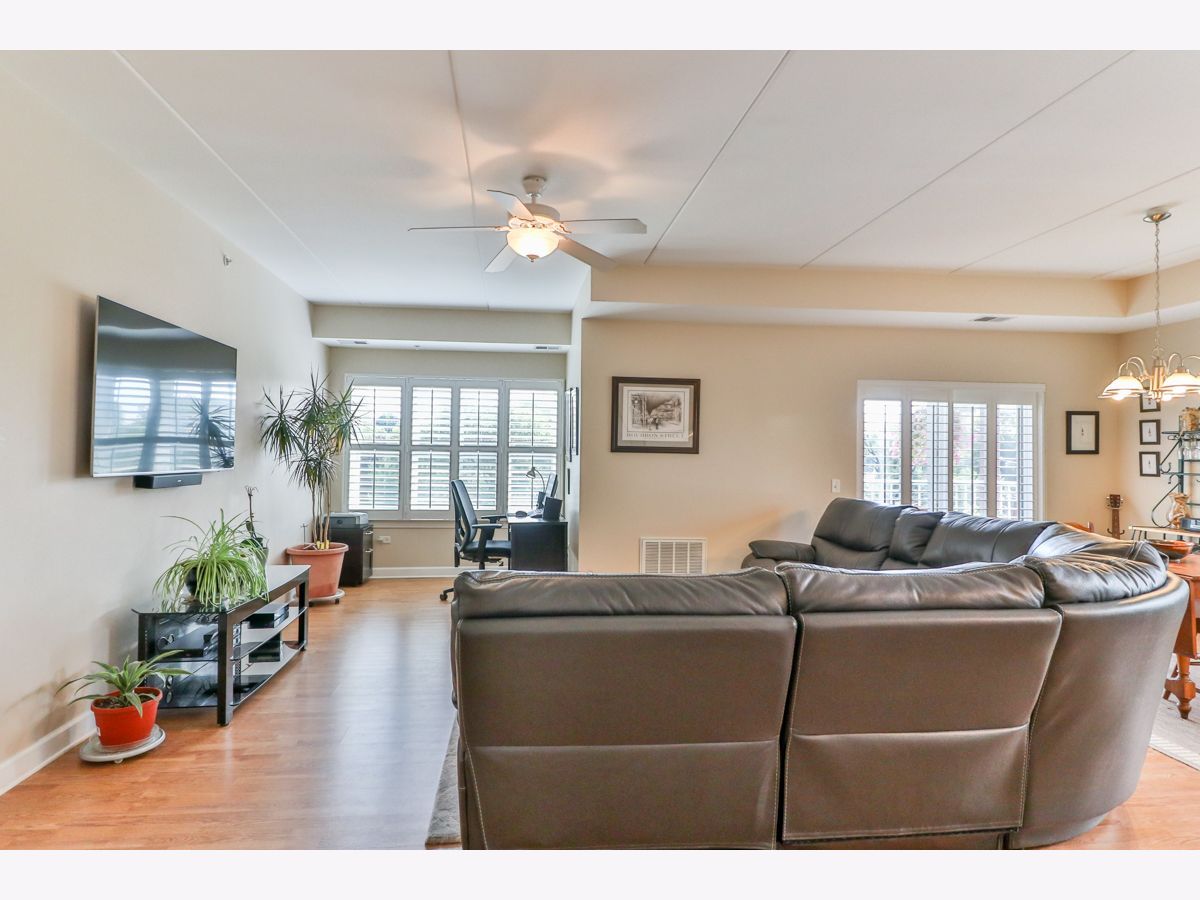 Rarely available third-floor corner unit. Natural light throughout this two-bedroom, two-bath condo in 55+ community. Walk-in closets in both bedrooms, including the 7'x7' closet in BR2. The master bath has ceramic tile, separate shower and soaking tub and double bowl vanity. All white millwork with 6-panel doors and brushed nickel hardware throughout the home. Center island with Corian countertop and breakfast bar. Beautiful plantation shutters on all windows and balcony door. Nine-foot ceilings and concrete construction provide for a quiet interior. No neighbors above. Deeded parking space in the heated underground garage is convenient to the elevators. Party room and exercise room on the premises. Great location - one block to the Fox River, where redevelopment is creating a community hub. Just minutes to Downtown Elgin or Downtown St Charles, as well as Randall Road shopping!