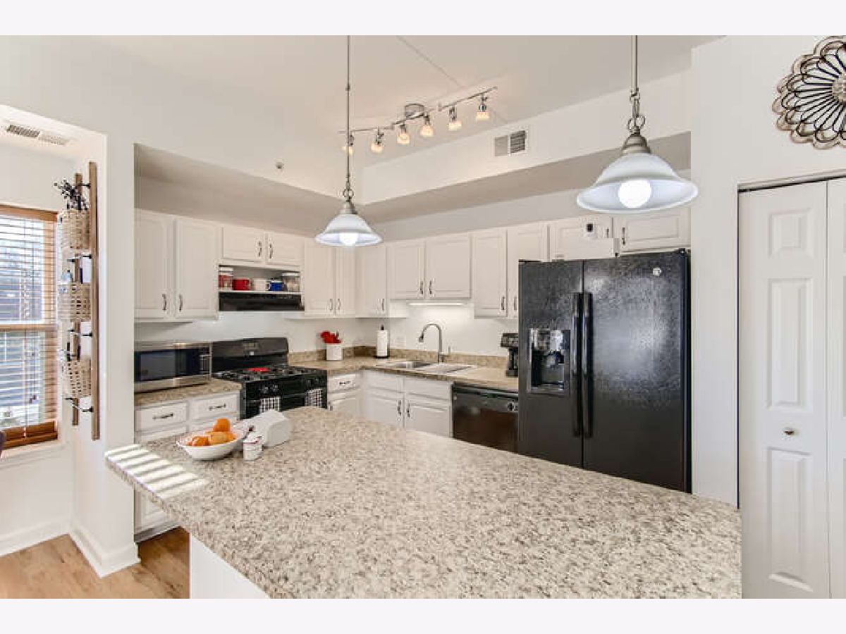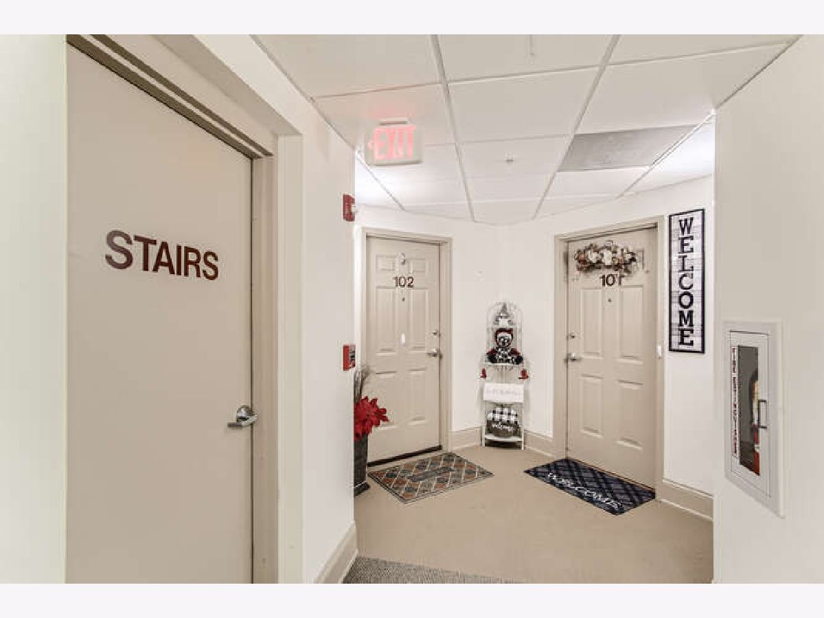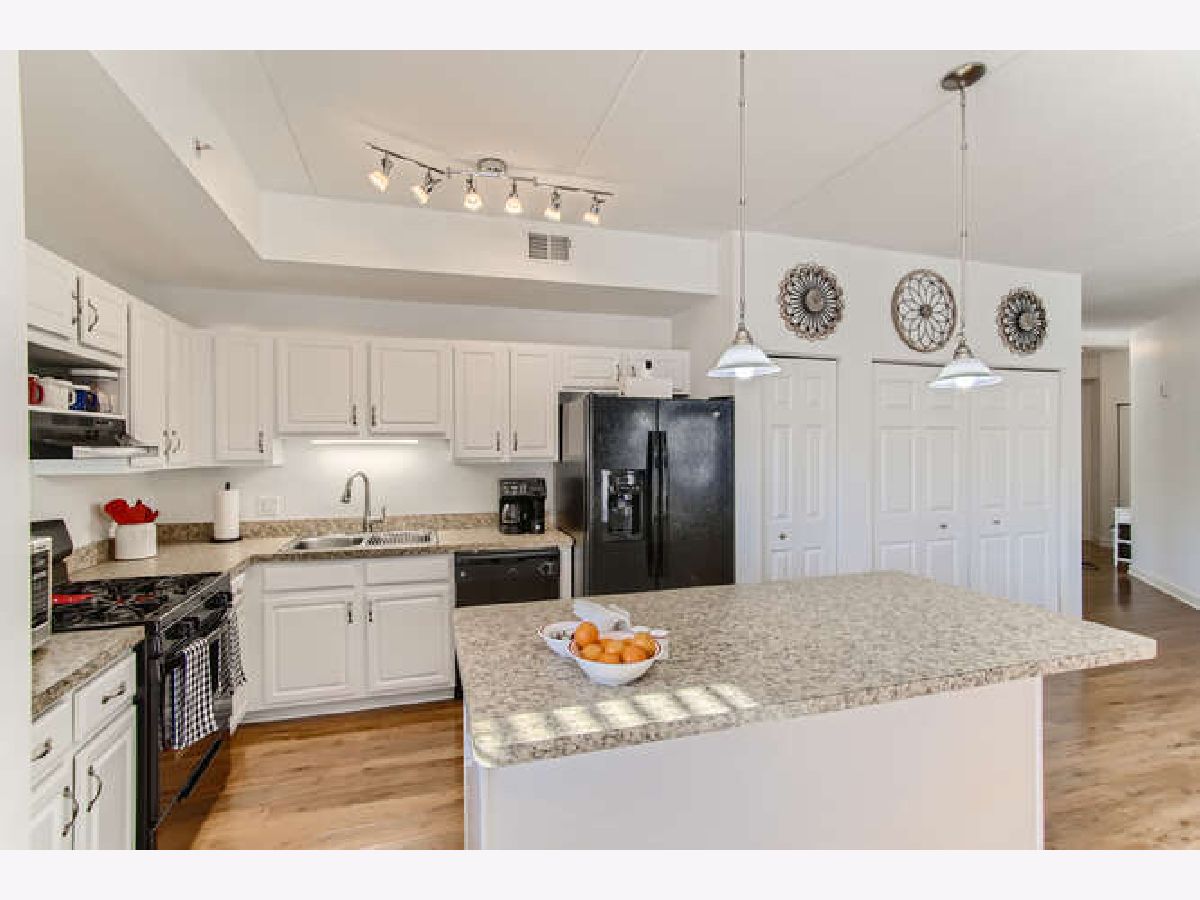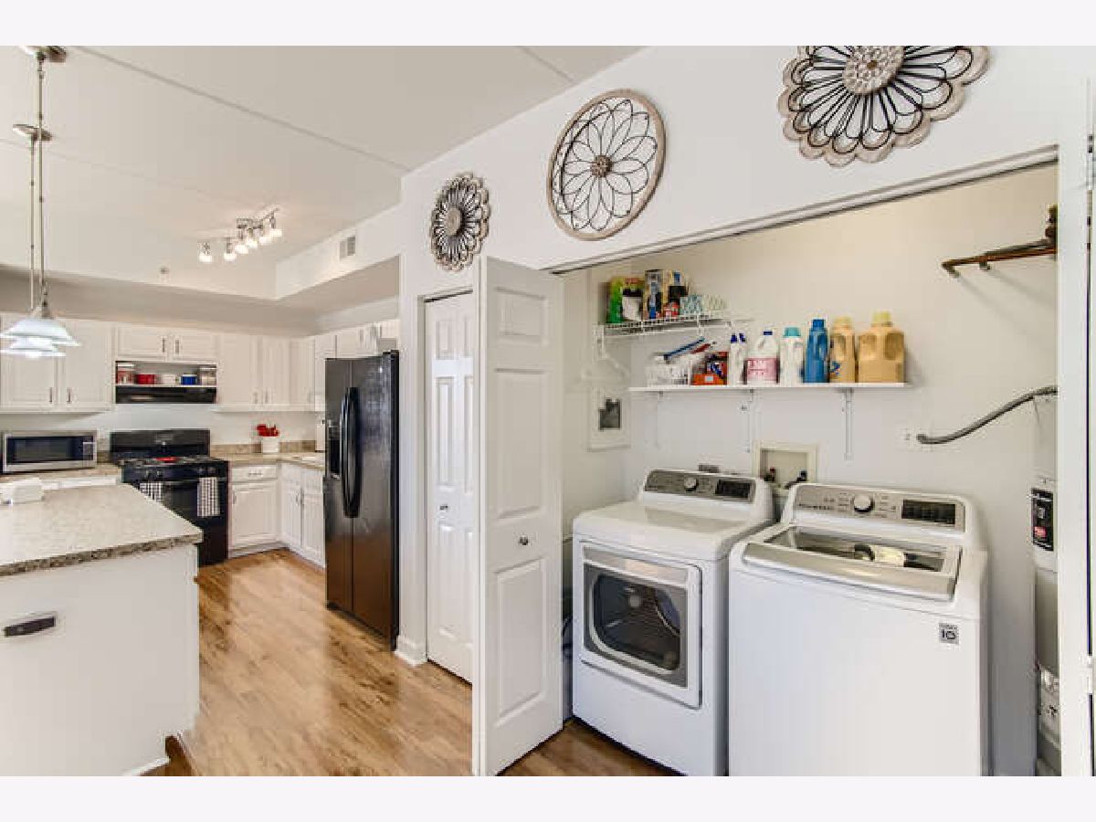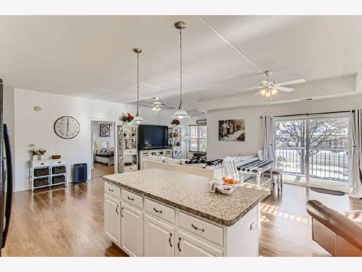 LIGHT & BRIGHT corner unit with southern & eastern exposure in exceptional active adult community at River Crossing! Wonderful 1st floor location with covered balcony & interior stairway to heated garage parking directly below! Delightfully updated including freshly painted interior & open great room with rich Pergo Ultra flooring! Professionally painted white kitchen cabinetry is complimented by Applewood floor! Primary Bedroom Suite features walk-in closet, linen closet, double vanity, soaking tub & separate shower! Convenient in-unit laundry! Spacious guest bedroom w/2nd full bath! 9 ft ceilings throughout! All new HVAC system (Furnace & A/C) in July 2020 & new H20 heater in 2016! Self-managed building results in super reasonable HOA fees, which include water & garbage pickup! There is also a water softener which services the entire building! Wide interior hallways, spacious Activity Room with kitchen & bath, fully equipped Exercise Room, & Storage Room with large individual lockable spaces! Superbly constructed brick & concrete building deadens sound between units, is sprinklered, has secure entry, 2 elevators & is ADA compliant. A convenience store & Visiting Angels are also housed within the building to serve the residents. Enjoy the nearby Fox River bike path & riverfront parks! Not to be missed, this is a compelling value!!!