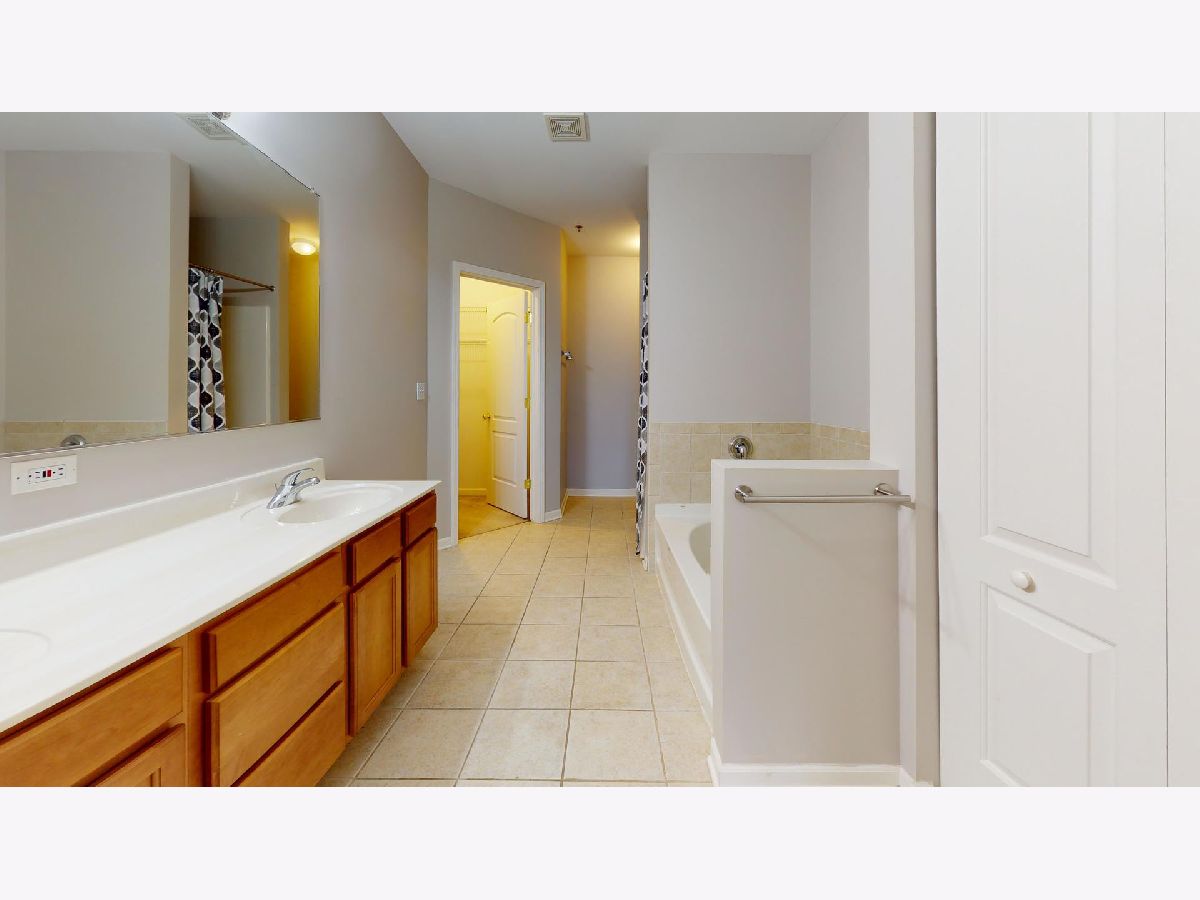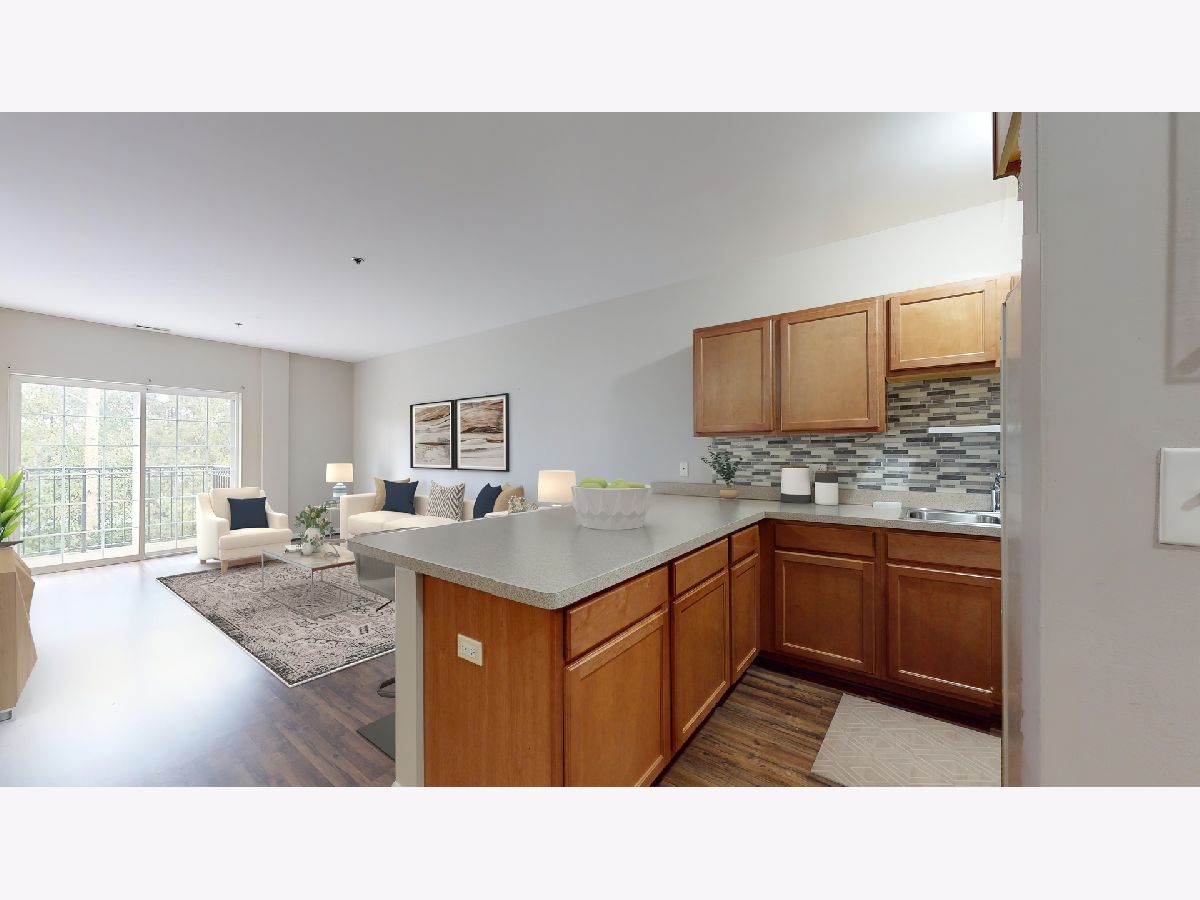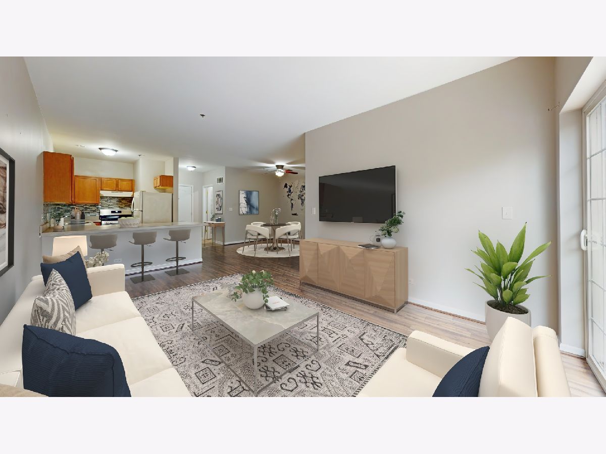 Affordable two bedroom, two bath condo with a fantastic downtown Lake Center Place location. Spacious open concept floor plan. Welcoming entry with a ceramic tile floor leads into the living room with wood laminate flooring and sliding door access to the balcony facing Grays Lake. The kitchen has a big breakfast bar with seating area, open to the dining room with wood laminate flooring and a ceiling fan. Indulge with a spacious master bedroom suite with walk-in closet, private bath with a dual sink vanity, separate tub and separate shower. A second bedroom has easy access to the hall bathroom. In-unit laundry room with washer/dryer. Secured entry, elevator building with heated garage and storage area, plus plenty of guest parking too. Ideally located close to shops, restaurants, parks, the Metra station and more! Immaculate, move-in ready!!