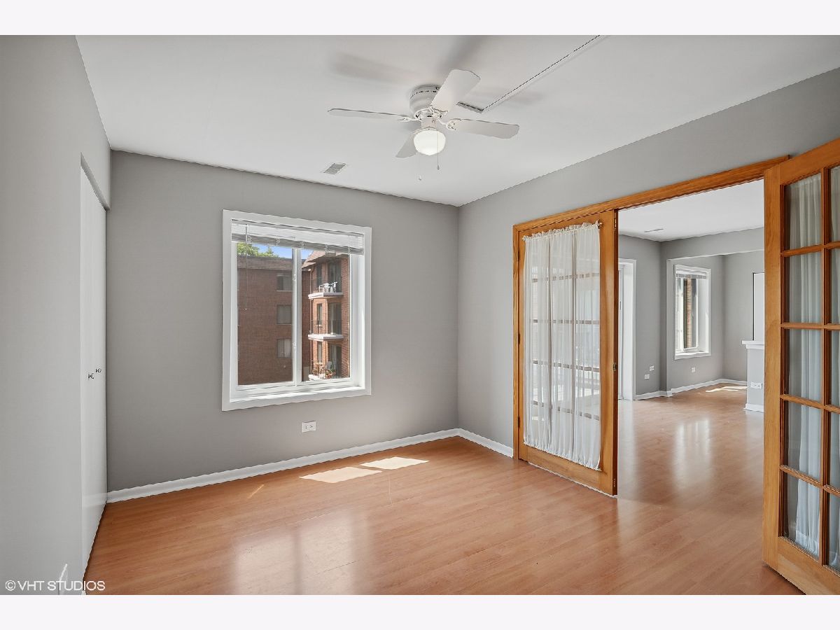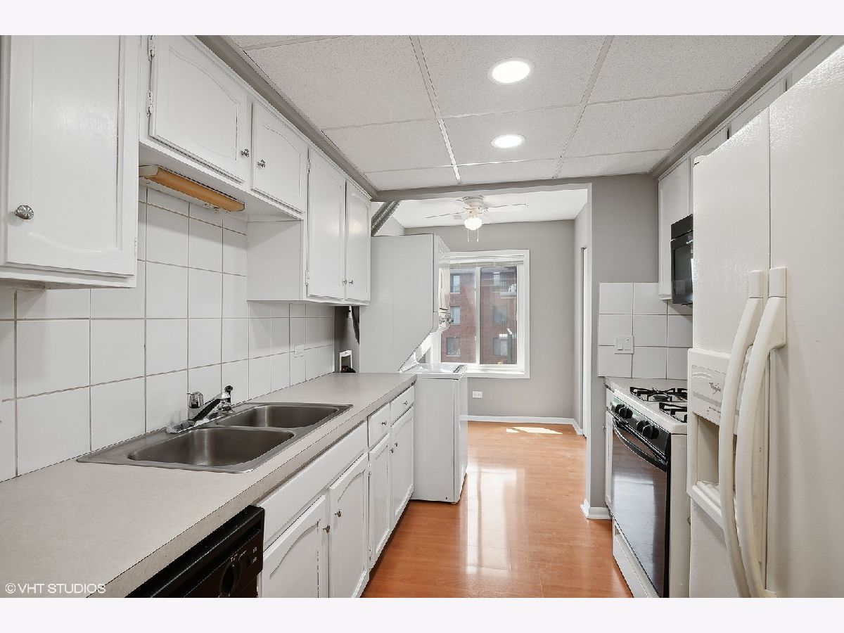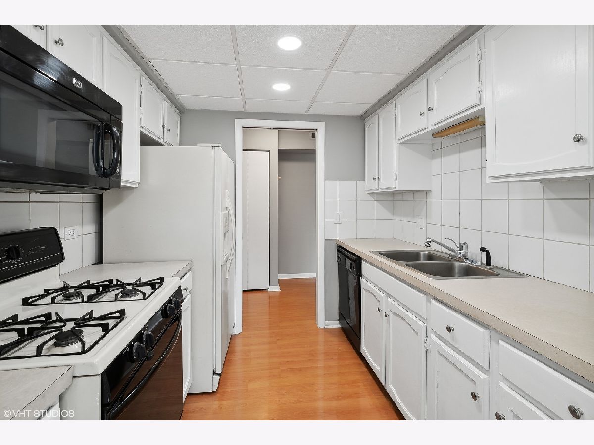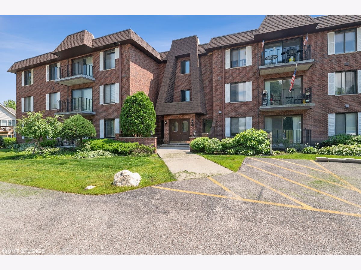 Rarely available and highly desired 2 bedroom, 2 bathroom condo! This unit is open and gets plenty of natural light. Freshly painted and move-in ready. Wood laminate floors, white kitchen cabinets, and tile backsplash! Bathrooms are updated. Relaxing balcony with lake views. In-unit laundry! Separate storage unit. Large swimming pool and clubhouse for your enjoyment. Gigantic Park is across the street in Park District, a great location for events. Highly ranked schools! Close to shopping, parks, schools, and restaurants. Come see it today!