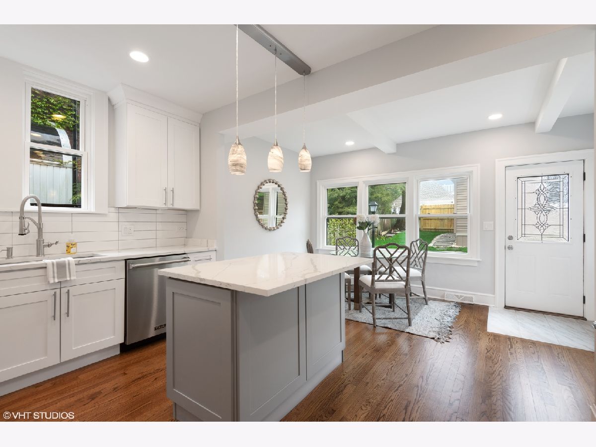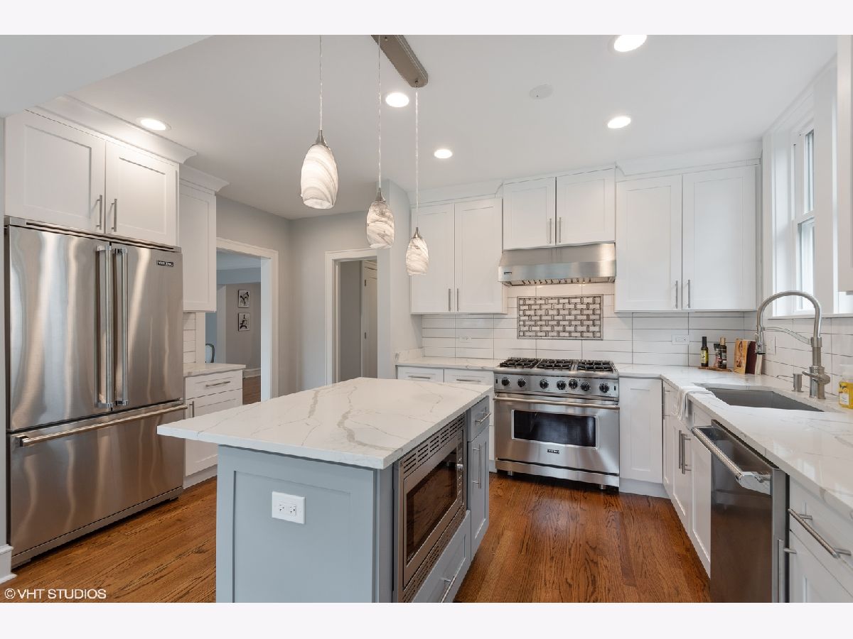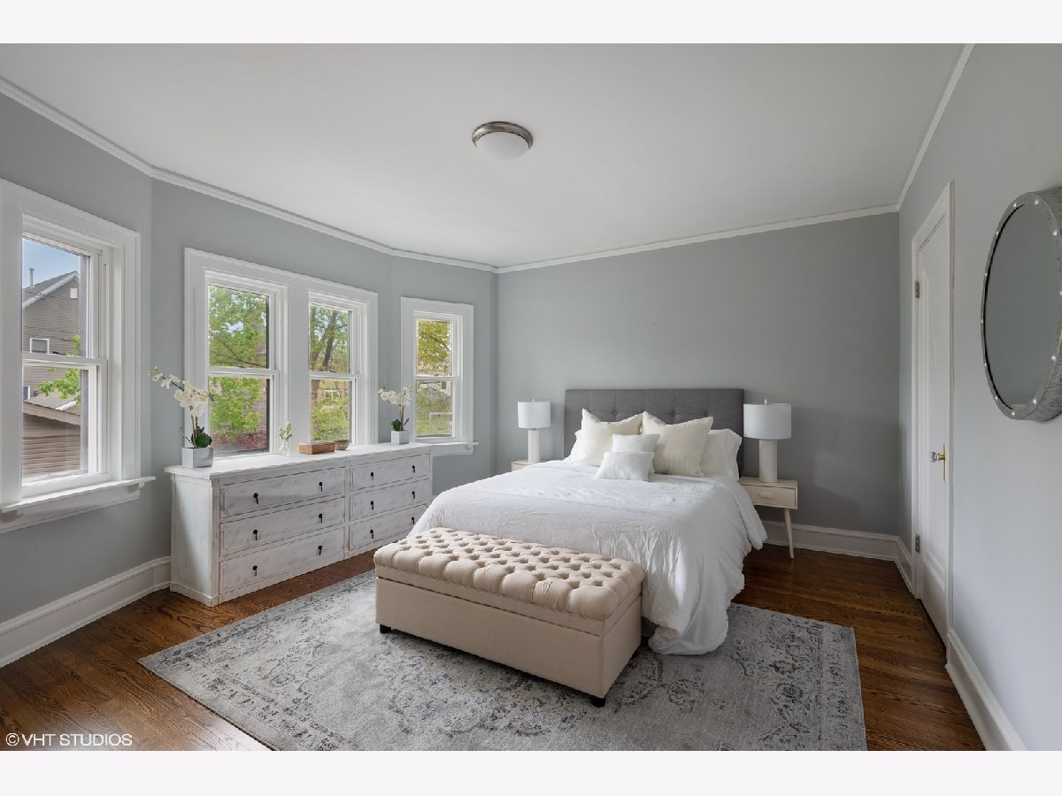 Fabulous Refresh of a 4 bedroom and 3 bath home just blocks to the lake, the El, golf course, bike lanes and parks. Freshly painted light and bright! Large living room opens to a large dining room. Beautiful kitchen with an eat in area full of light. Flexible floor plan allows for a first floor bedroom or office/family room and a full bath. Master bedroom suite has a full bath, walk-in closet and private balcony. Second floor laundry! Third floor boasts a huge bonus room. Basement has a finished rec room, storage and ability for a second washer and dryer. New over sized 2-car garage off alley. Beautiful, vacant and easy to show.
