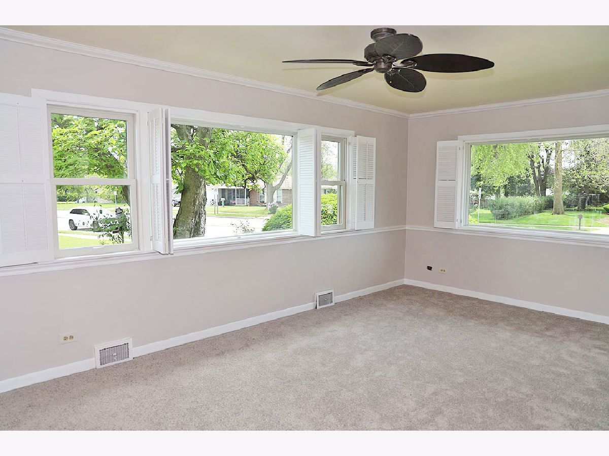 Situated on .58 acres, double lot of meticulously landscaped property and spectacular views of ancient upland forests, this custom-built ranch is at the center of it all. Moments entry to nearby highways, hiking/biking trails and gorgeous views of Busse Woods. Huge basement/partially finished, new vinyl plank flooring. Main bedroom has own bath/walk-in shower, ceiling fan and generous double closets. All 3 bedrooms are bright, good sized. Hallway full bath and a powder room bath off kitchen. Hardwood floors throughout, newly carpeted family room with wood burning fireplace and Dutch style door to backyard. Kitchen is eat-in style with top line appliances, double ovens. Newer upgraded windows maintain quiet and comfortable setting. Dining room is open to spacious living room, sliding doors to private patio with stone BBQ. 2 car attached garage with built in cabinets, backyard shed. This home has been meticulously cared for and maintained, offers endless possibilities.