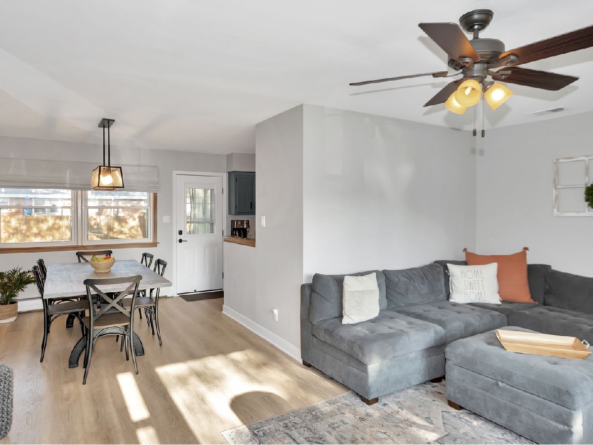 Do you love Manhattan and want to be in the heart of the town? Maybe you need an affordable home in Manhattan and Lincoln-Way school district? Maybe you just need to downsize to a move in ready ranch? This completely updated corner lot ranch with an attached 2 car heated garage is the home for you! All in the past year the seller has done a ton of work to make every corner of this home beautiful INSIDE AND OUT! It is trendy and neutral and looks like it came right out of a magazine. The modern touches start as soon as you walk in the front door and see the shiplap nook with a bench to take your shoes off. Take note of the perfect Luxury Vinyl Plank flooring in the living room and the recently updated fireplace. The LVP flooring continues on to the rest of the main level except there is soft new carpet in the 3 bedrooms. The seller really thought of everything here! Just about every inch of this home was painted including the concrete sidewalk and the deck and the exterior of the home. The kitchen cabinets are in great shape and were also painted and have all new classy hardware! All lighting in the home was also updated. The home has newer windows, a new stove, a new microwave, a new washer and dryer, new bathroom vanity, driveway was just seal coated, all new window treatments stay, even the porch has a new custom built post! Check out the brick lined stairway down to the huge full finished basement that includes a rec room, family room, storage and a laundry room that was just rehabbed last week! This charming home has a fully fenced yard with mature trees and a deck off of the back door, perfect for summer entertaining. Fence and deck just recently painted also. The Bar, pool table and garage fridge stay with the home! There is also a side driveway that would be great for storing a boat, camper or RV! Boasting about 2200 sq feet of livable space, come visit this perfectly remodeled home as soon as you can!