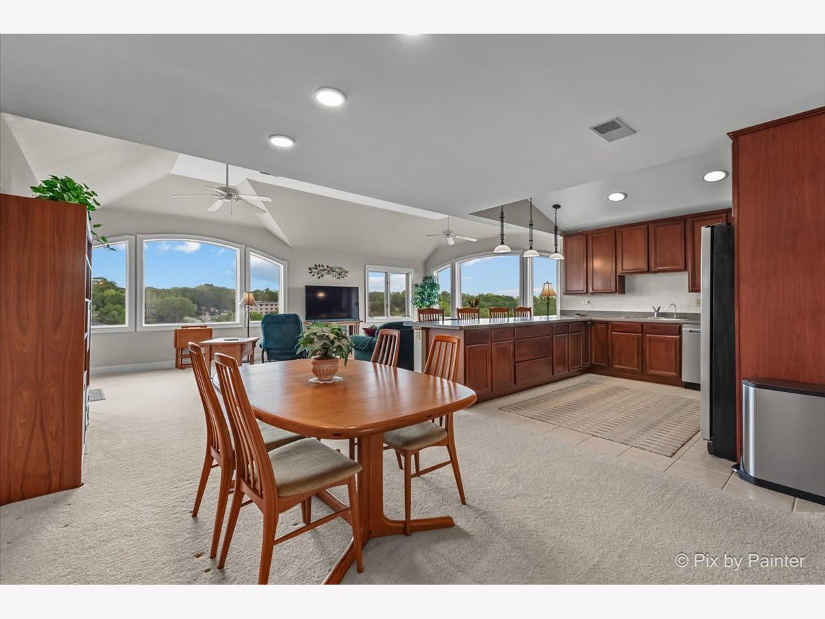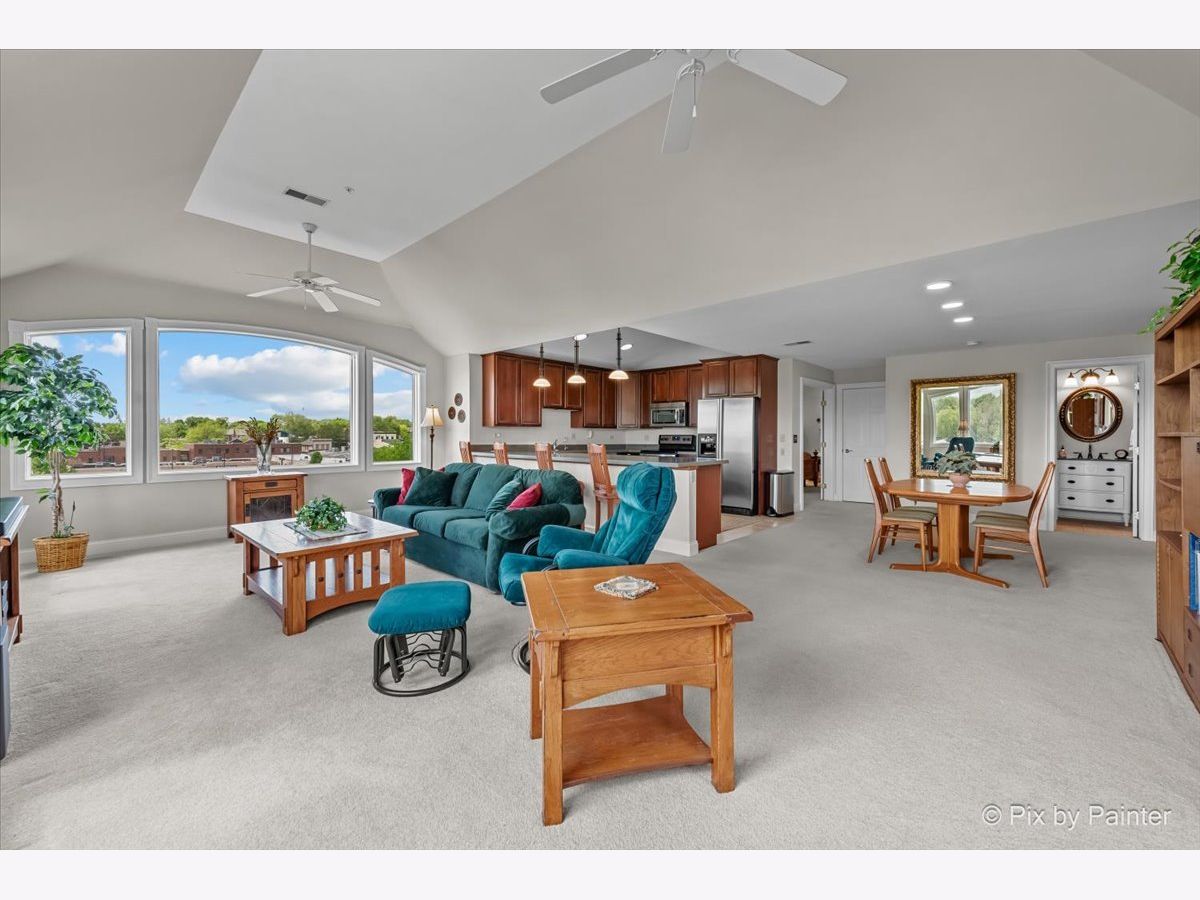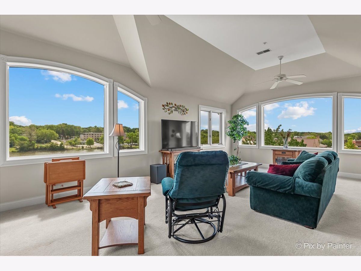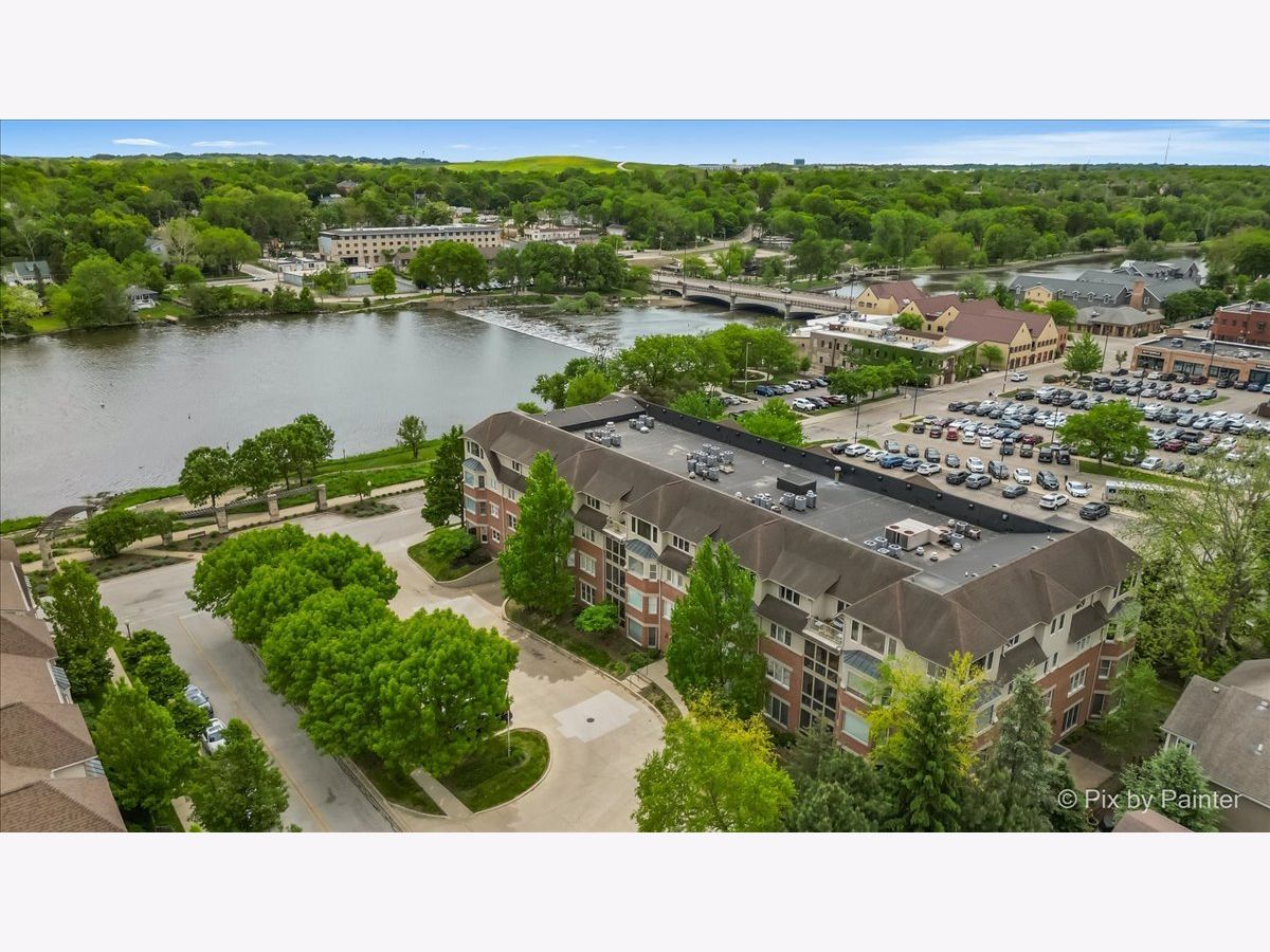 Penthouse with Priceless River Views in the Heart of Downtown Geneva! Welcome to a truly rare offering-a gorgeous corner penthouse condo with spectacular, unobstructed views of the Fox River. Designed for both everyday living and memorable entertaining, this vaulted, open-concept home features expansive windows and a private patio where you can enjoy every season in style. Sunrises and nature are always on display-right from your living room. Inside, the spacious layout offers the perfect setting for gatherings large and small. The large kitchen opens to the main living space, allowing you to entertain while soaking in the stunning surroundings. This home boasts 2 bedrooms and 2 beautifully updated full baths, including a serene primary suite with dual closets and a luxurious en suite bath featuring a custom walk-in shower and dual sink vanity. A generous guest room provides flexibility for visitors, a home office, or creative space. Additional highlights include in-unit laundry, two private garage spaces in the heated underground garage, and plenty of storage throughout. Fresh paint and thoughtful updates enhance the comfort and style of this exceptional home. Step outside and enjoy the very best of downtown Geneva-scenic riverwalk, boutique shopping, acclaimed restaurants and summer concerts. Don't miss this rare gem in one of Geneva's most sought-after locations! HOA fee includes: Garbage/Recycling Pickup, Water & Sewer, Heat (Boiler System), Exterior Maintenance which includes: snow removal, landscaping and window washing in addition to any needed repairs. A/C August 2023.