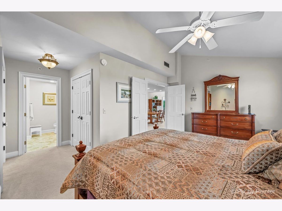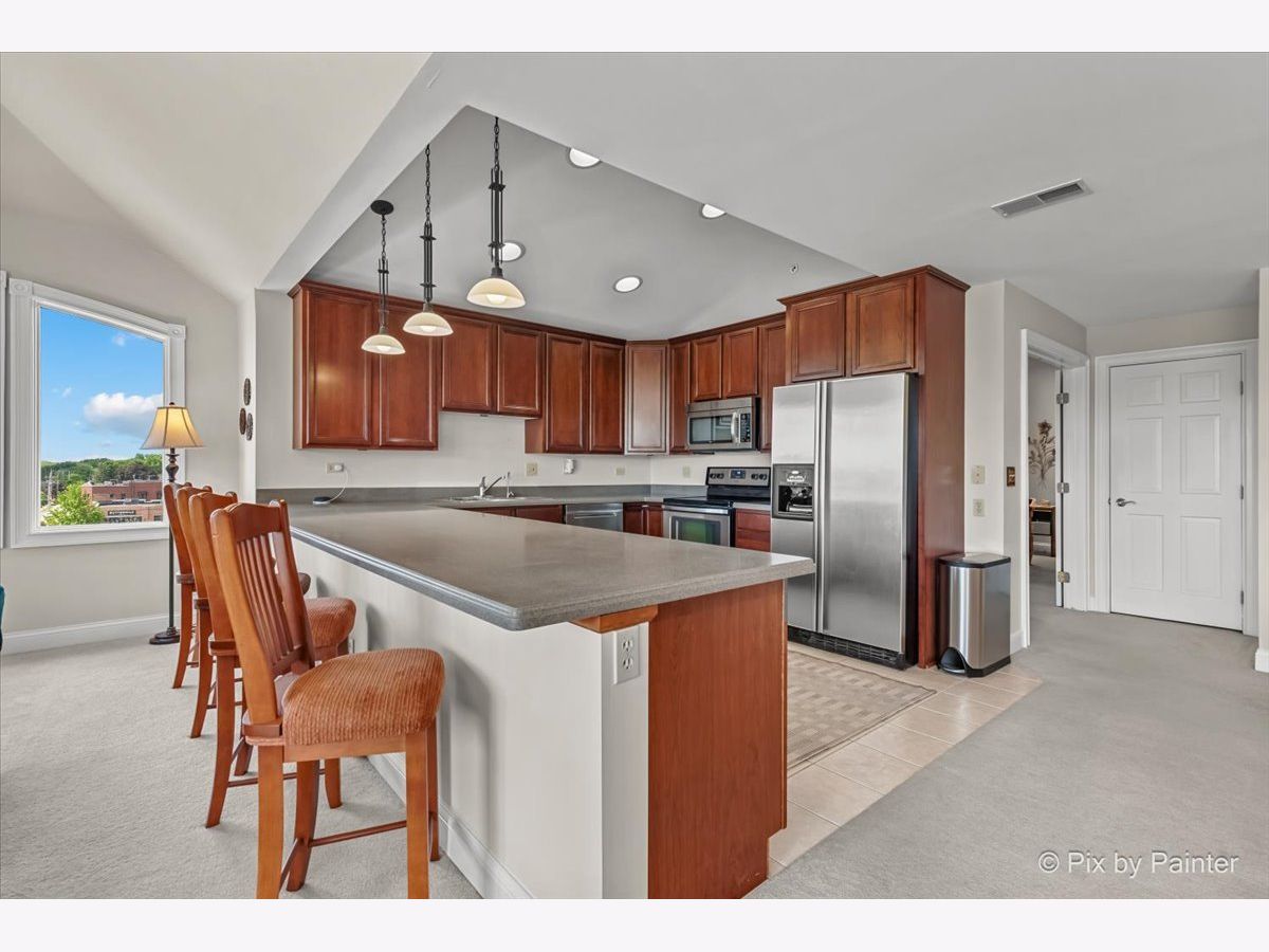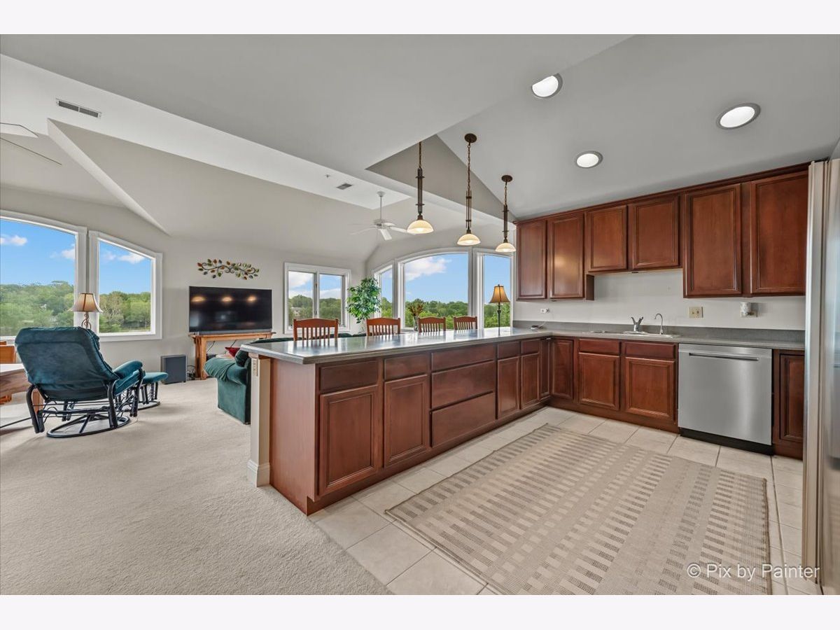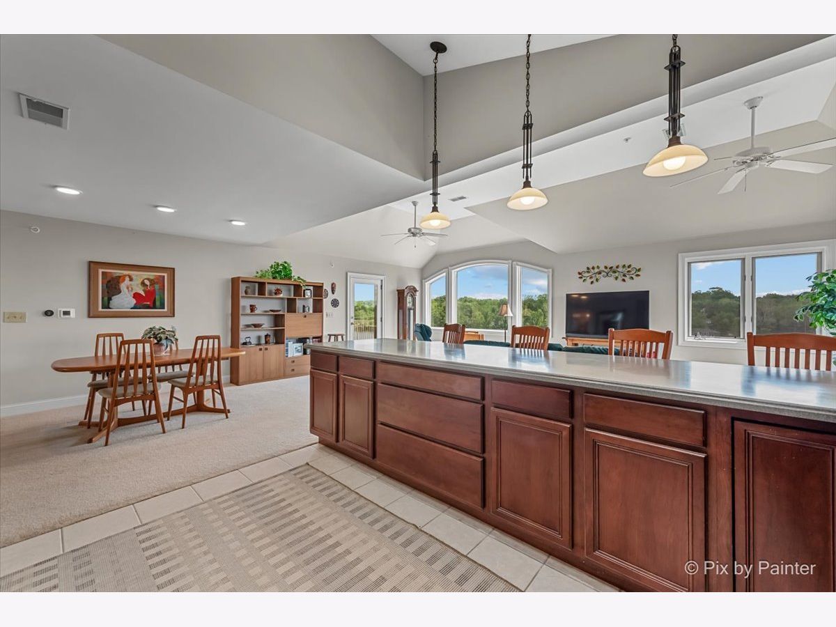 Penthouse with Priceless River Views in the Heart of Downtown Geneva! Welcome to a truly rare offering-a gorgeous corner penthouse condo with spectacular, unobstructed views of the Fox River. Designed for both everyday living and memorable entertaining, this vaulted, open-concept home features expansive windows and a private patio where you can enjoy every season in style. Sunrises and nature are always on display-right from your living room. Inside, the spacious layout offers the perfect setting for gatherings large and small. The large kitchen opens to the main living space, allowing you to entertain while soaking in the stunning surroundings. This home boasts 2 bedrooms and 2 beautifully updated full baths, including a serene primary suite with dual closets and a luxurious en suite bath featuring a custom walk-in shower and dual sink vanity. A generous guest room provides flexibility for visitors, a home office, or creative space. Additional highlights include in-unit laundry, two private garage spaces in the heated underground garage, and plenty of storage throughout. Fresh paint and thoughtful updates enhance the comfort and style of this exceptional home. Step outside and enjoy the very best of downtown Geneva-scenic riverwalk, boutique shopping, acclaimed restaurants and summer concerts. Don't miss this rare gem in one of Geneva's most sought-after locations! HOA fee includes: Garbage/Recycling Pickup, Water & Sewer, Heat (Boiler System), Exterior Maintenance which includes: snow removal, landscaping and window washing in addition to any needed repairs. A/C August 2023.