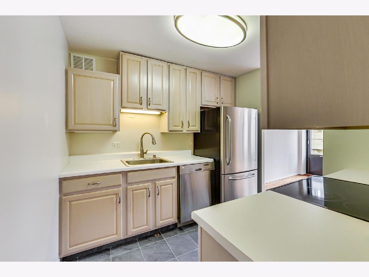 Click the 3D tour for a look inside! - Welcome home to this Huge 1 bedroom Corner Unit located in the perfect Gold Coast location. This Bright and Sunny unit has floor to ceiling windows, spacious rooms, separate dining room, wood laminate floors, mini blinds throughout, and lots of closet space with additional storage included. The kitchen has stainless steel appliances, under cabinet lighting and marble floors. The large master bedroom has organized closets, a large linen closet and is attached to the bathroom. This unit allows for lots of privacy as you do not face neighbors. Full amenity building 24/7 door staff, top floor pool and sundeck, exercise room, party room, laundry room on 43rd floor, elevator, management onsite M-F. This amazing location allows you to walk to Michigan Avenue, Rush Street, museums, restaurants, shopping, entertainment, public transit, Oak Street Beach, Lake Shore Drive running/biking trail and so much more. Indoor Garage Valet parking available. Assessments include: Heat, A/C, Cable, Water.