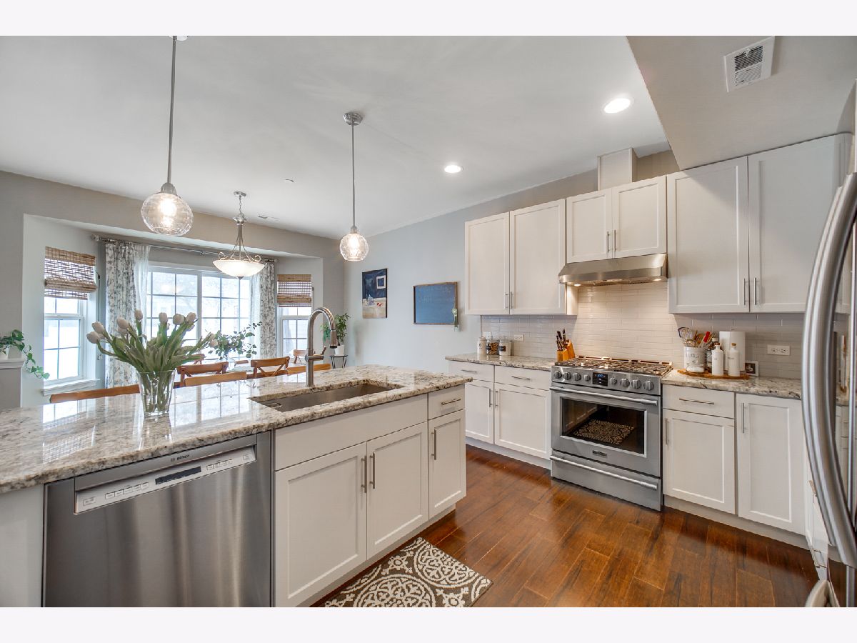 WELCOME to this EXQUISITE home in the highly desired New Jacobs Community of Vernon Hills. No detail has been overlooked in this simply stunning 3 bed, 2.1 bath GEM with 9ft ceilings. Charm and elegance abounds throughout this ONE OF A KIND beauty with high end finishes and custom details! OPEN & BRIGHT floor plan which truly shines as it is complemented BEAUTIFULLY by LUSCIOUS hardwood floors and BREATHTAKING natural light throughout! The GOURMET open concept Kitchen is straight out of a magazine! With trending white shaker cabinets, glimmering granite countertops and high end appliances, you're sure to LOVE this PRISTINE space for meal prep, entertaining and MORE! Walk upstairs to find a huge master suite with a walk in closet and a spacious bathroom, other 2 generous size bedrooms with a beautiful views outside of the windows, shared hallway bathroom and laundry. Lovely amenities. This STUNNER is only minutes away from shops and restaurants with easy access to commuter routes via train and tollway! You don't want to miss out on this exquisite home-come check it out!