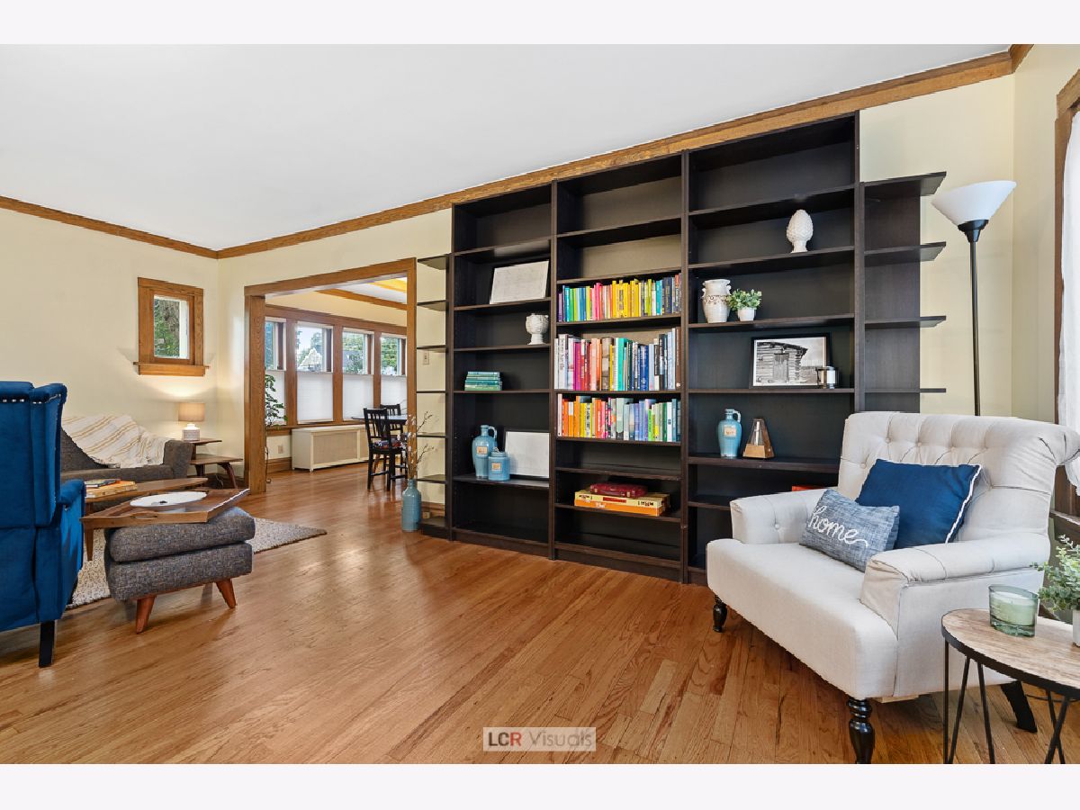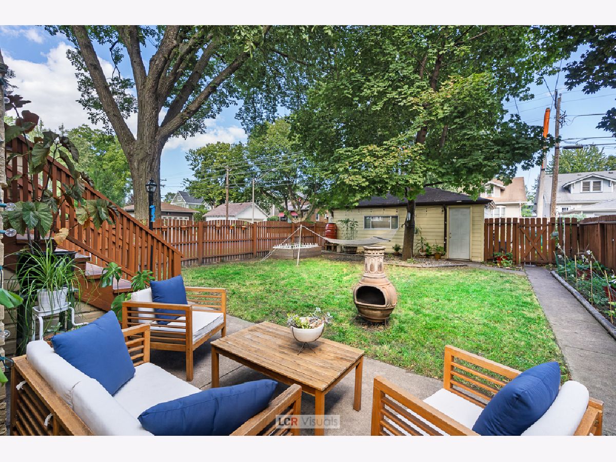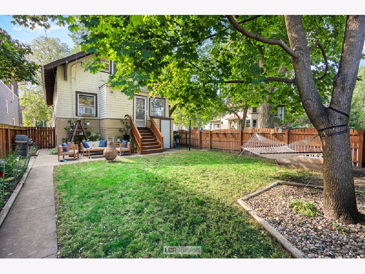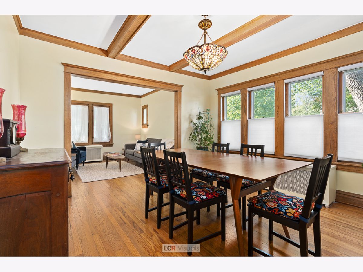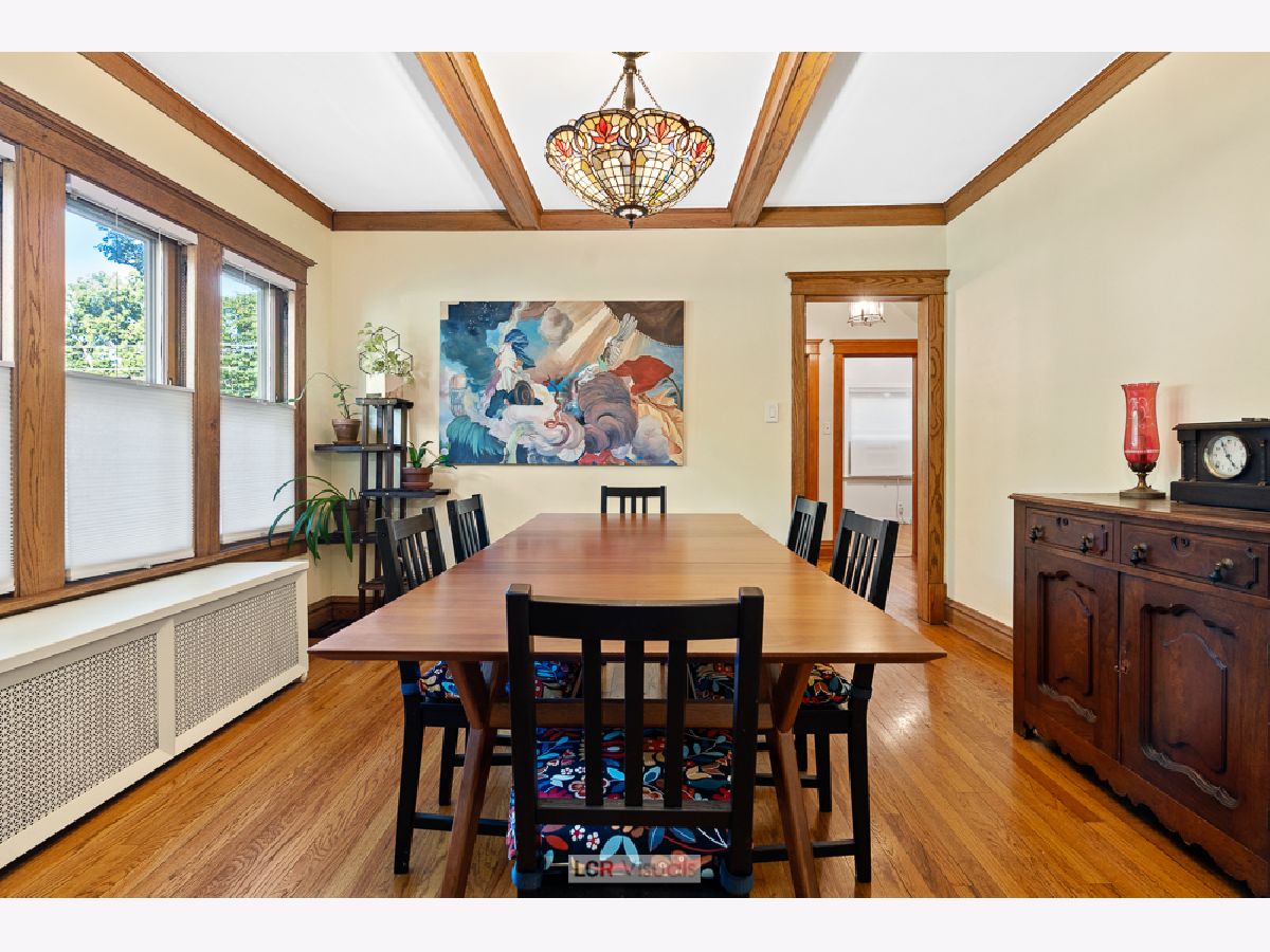 Tradition and on-trend flex space intersect perfectly in this 4 bedroom, 2 bath home. Classic features include an enclosed porch, beautiful oak floors, wood trims and a beamed ceiling all lending charm and character throughout. The floor plan flows from room to room with an abundance of space and the home is enhanced by streams of sunlight from the corner setting. The kitchen has all stainless steel appliances, updated finishes and bountiful counter space for meal prep. The adjoining formal dining room features a distinctive beamed ceiling, creating the perfect setting for festive gatherings and everyday meals. The first floor bedroom makes a great guest space or dedicate this room as a work from home space. The family room and nicely updated full bath round out the first floor. There is a beautiful oak staircase to the second floor up to 3 more bedrooms. The primary and middle bedrooms have all the space needed for a king size bed and the third upstairs bedroom is sunny and charming and awash with morning sunlight. The full bath features a vanity sink and all new decorating. You'll find great closet space and storage galore in the center hallway. Full basement has a tool shed and a studio or office that has been used as a creative space, most recently a music room. The fenced back yard has patio seating, lawn and garden and shade trees. The garage holds two cars, plus room for storage, and there is room to park another car on the pad. The walk everywhere location of this home is easy to LOVE. Lincoln school, the blue line train, shops, bakery and dining are all within blocks. The flexible floorplan is ideal, giving you a home that grows with your needs. The space and condition you've been seeking is all found here in this classic home.
