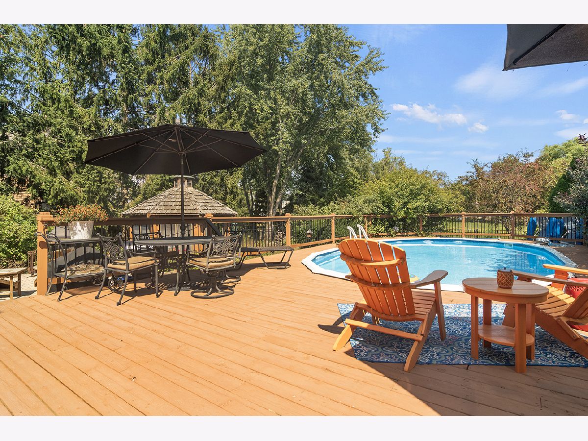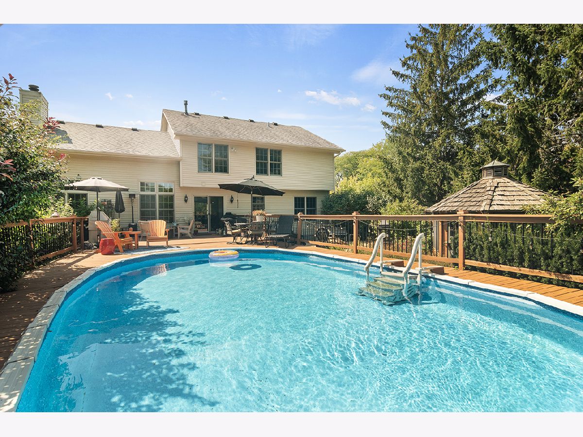 Welcome Home to 1000 Jessica Drive. This custom built 4 bedroom, 2.5 bath home is nestled on an expansive lot in the Whispering Pines neighborhood in the heart of Wauconda. As you approach, you are greeted by a charming front porch, ideal for enjoying quiet moments or greeting guests. Step inside to discover a grand two-story entryway and gleaming hardwood flooring throughout the main level. The living room flows seamlessly to the dining room, creating an inviting space for entertaining and relaxation. An updated, eat-in kitchen with stainless steel appliances, center island and granite countertops opens to a spacious family room adorned with a beautiful, brick fireplace and soaring vaulted ceilings. Completing the main level is a well-appointed mudroom with plenty of storage, located off the oversized three-car garage and a half guest bath. Ascend to the upper level to find four generously sized bedrooms, including the primary with an ensuite bath featuring double sinks, a large tub and walk in closet. Another full bath serves the three other guest bedrooms. A partially finished full basement is the perfect space to create another entertaining area with a pool table and bar and with ample storage space. The fully fenced backyard is your private oasis and will feel like you are on vacation with two levels of entertaining space, including a deck with a stunning inset swimming pool, and a lower level brick paver patio including a gazebo. There is plenty of green space, perfect for playing and overlooks a serene pond. This home is located within the desirable Fremont School (D79) and Mundelein High School boundary. Wauconda is home to destination areas including Bangs Lake, with beach access, water sports and great waterfront dining, a quaint downtown and nearby Lakewood Forest Preserve and dog park.