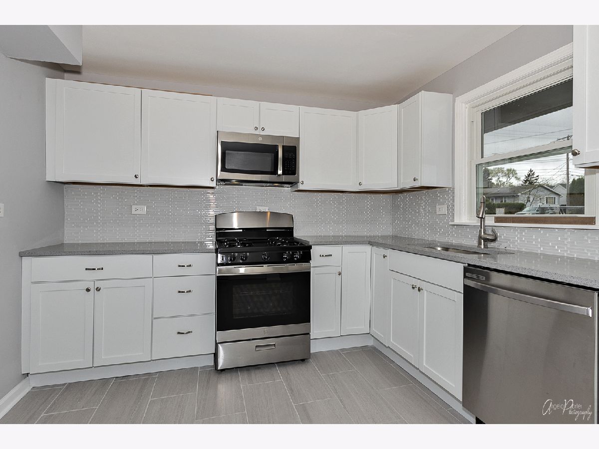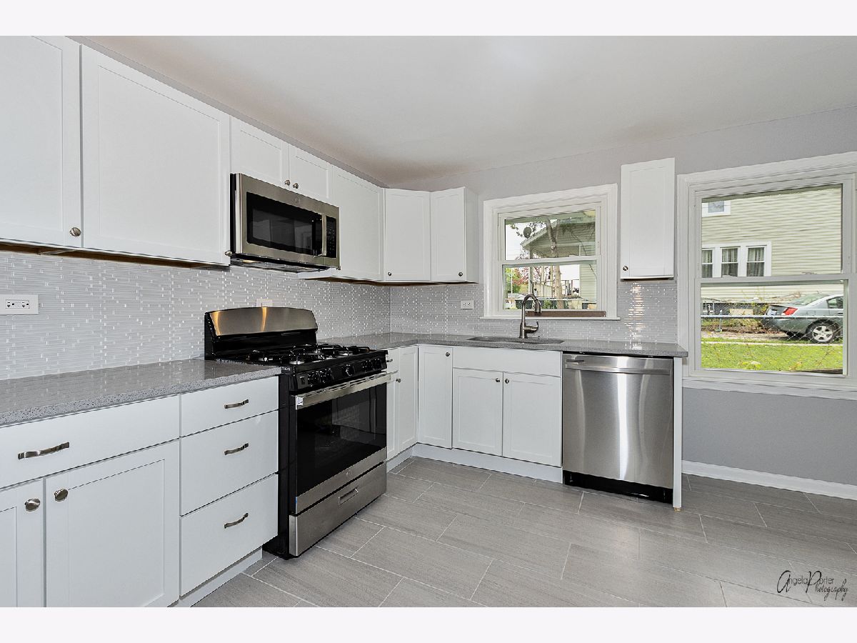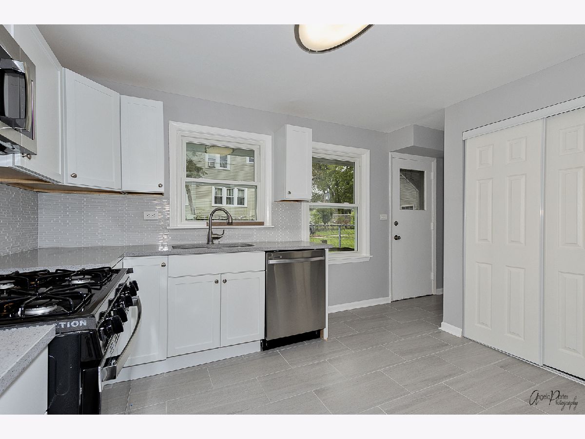 Beautifully rehabbed 2-bedroom ranch on great corner lot in Waukegan! Modern kitchen with shaker white cabinets, quartz countertops, glass backsplash, and stainless steel appliances. Fresh paint and laminate floors throughout. Gorgeous, completely refinished bathroom. Brand new furnace and central air. Big, new windows make this bright and sunny home feel larger than it is. Small laundry room prepped for stacked washer/dryer. Exterior of house and 1-car garage freshly painted.