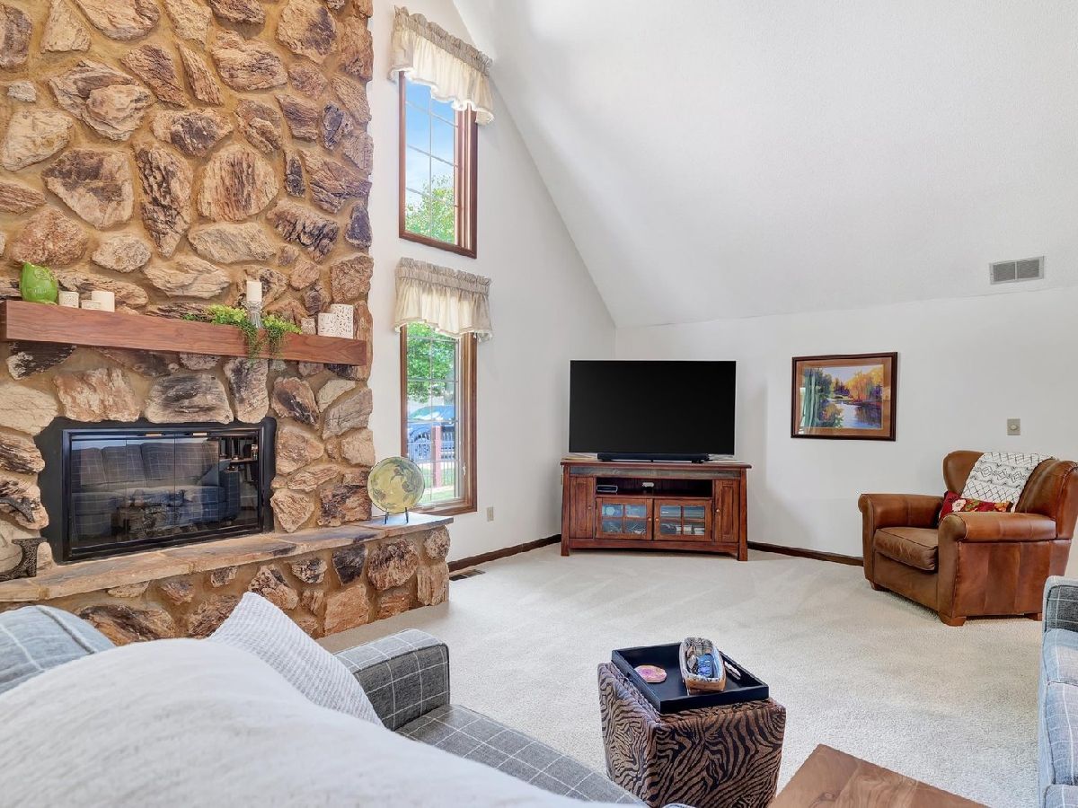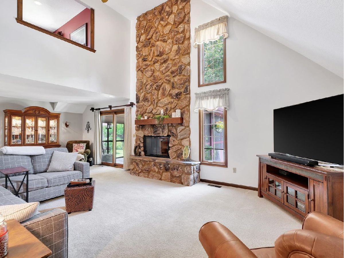 Sought after location in Monticello near the golf course, aquatic center, park and bike path. This well maintained home offers striking curb appeal with great space indoors and out! The entry leads into the living room with soaring ceilings and stone fireplace. The updated kitchen offers great natural lighting and features ample cabinet/counter space, built in oven and a smooth surface cooktop. The master suite is on the main level and offers great closet space with an updated bath and walk in shower. The upper level of this charming story and a half home features two bedrooms and a full bath. The outside amenities of this home are just as impressive. Offering a fabulous screened porch with vaulted wood ceiling and an almost country like view. Off the screened porch is the partially fenced yard with a concrete patio perfect for entertaining while grilling out. Offering a convenient Monticello location with great features you will not want to miss your chance to view this lovely home.