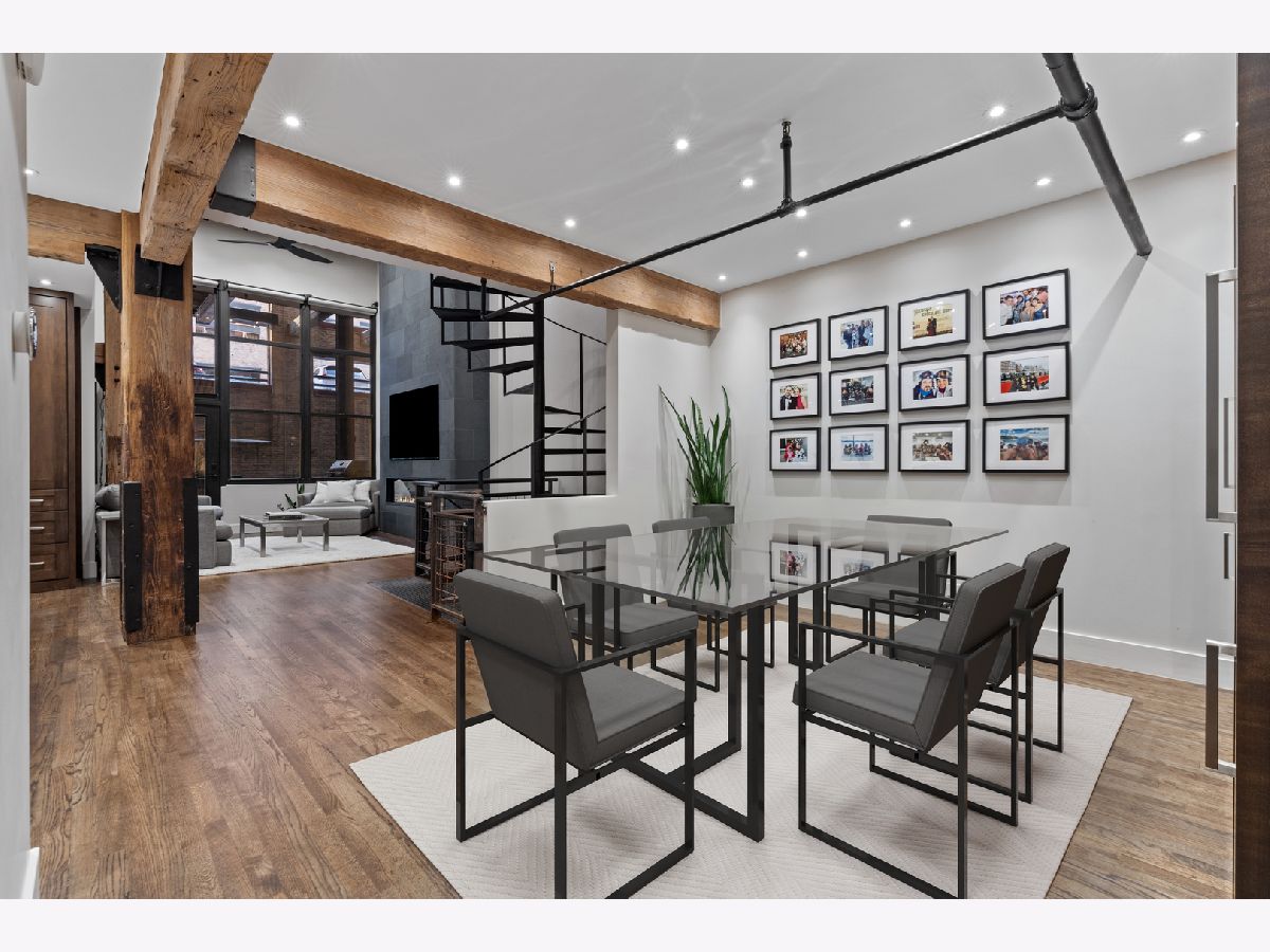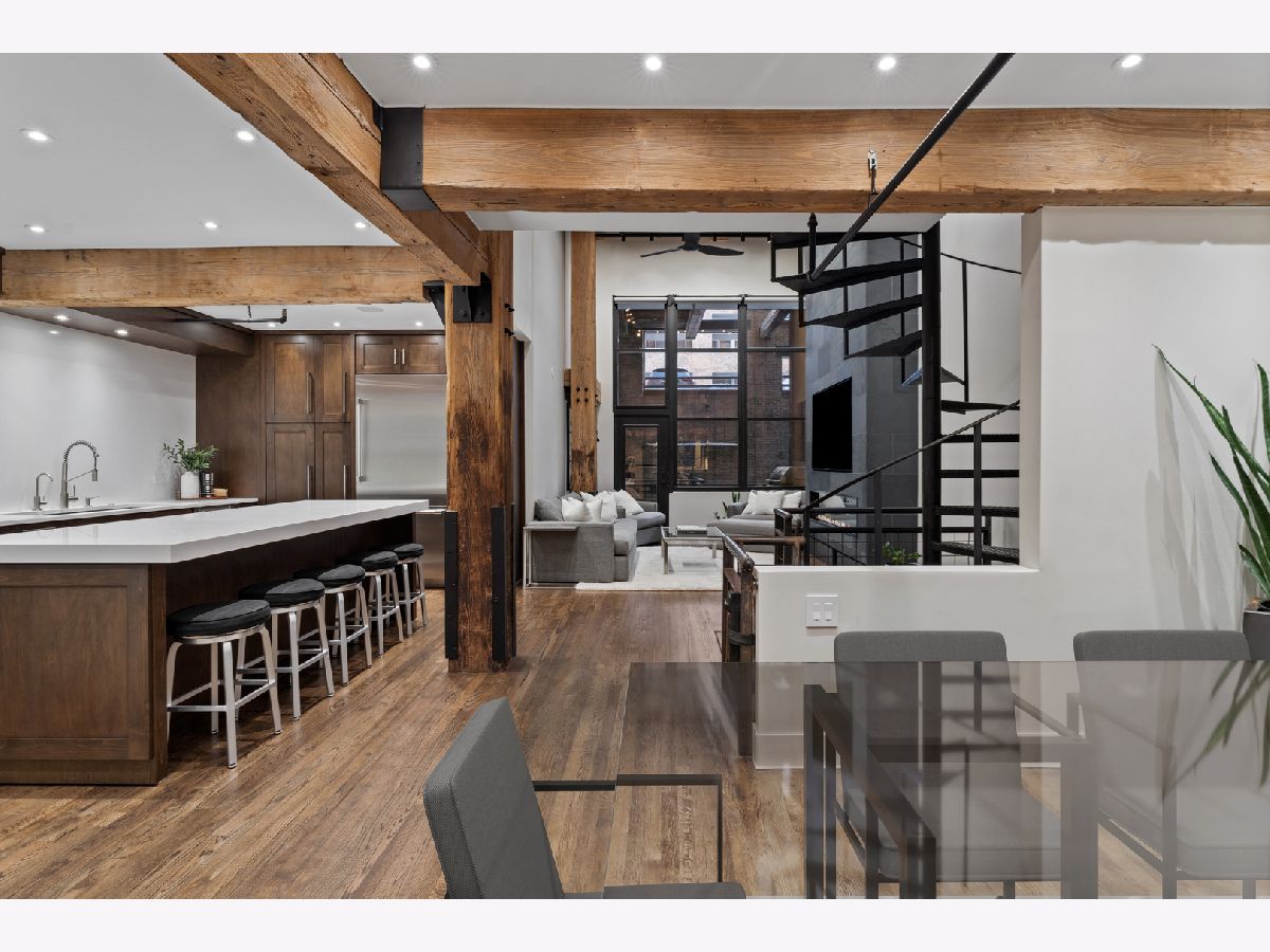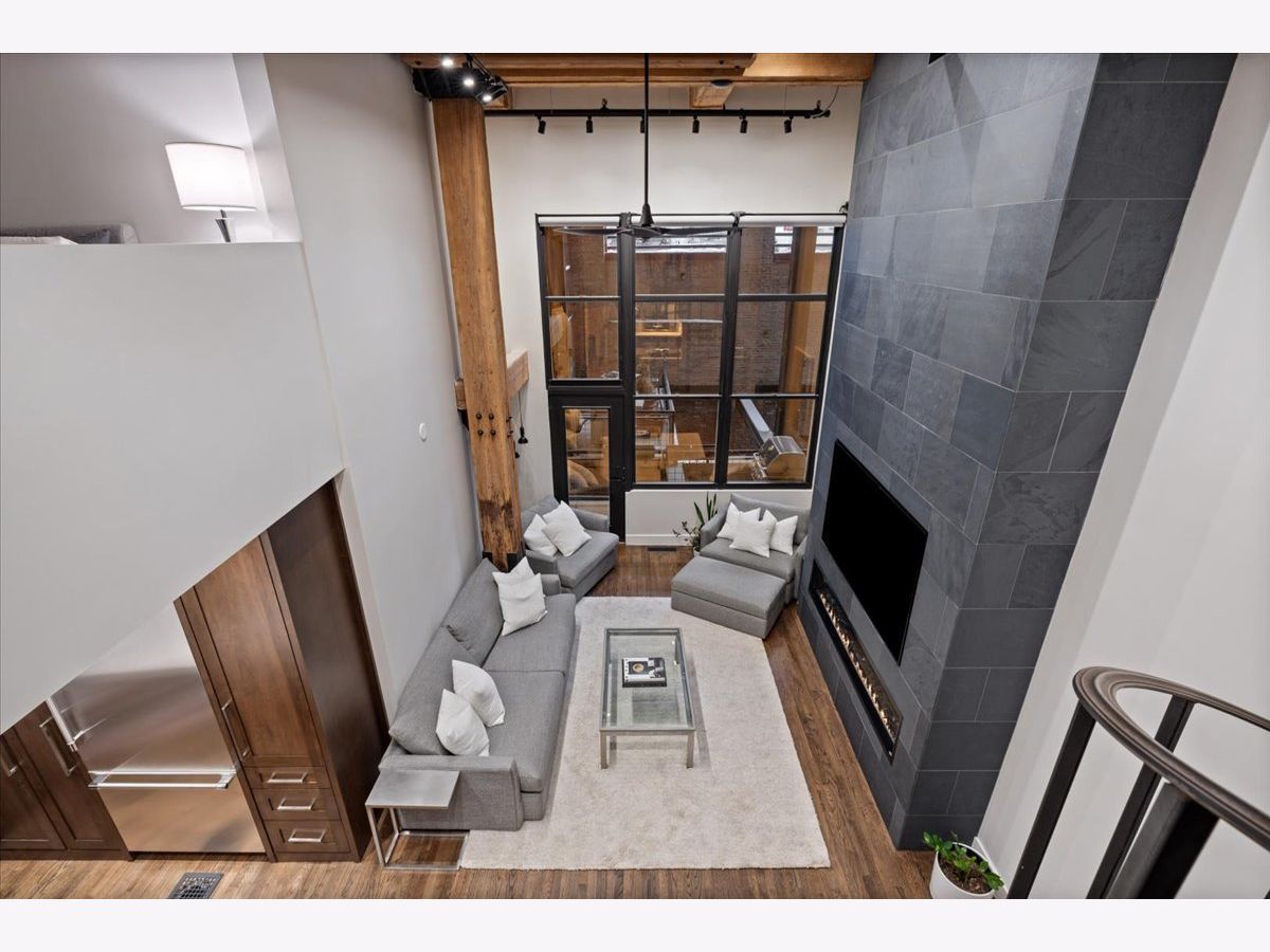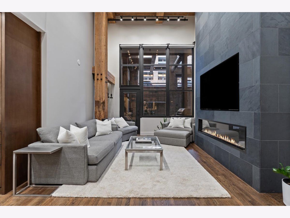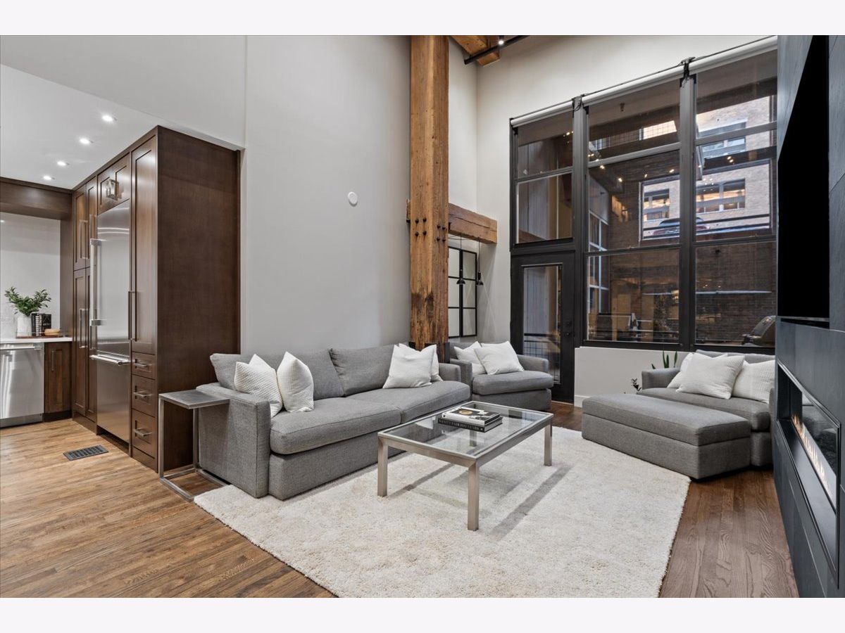 Welcome home to this expansive 2,300-square-foot 2 bed, 3 bath residence in the heart of the West Loop. Thoughtfully designed for modern living and entertaining, this home offers multiple indoor and outdoor living spaces, including a private deck, a private lower-level patio, and access to a stunning south-facing shared atrium. The main living level features refinished floors, a sleek slate electric fireplace, and remote-controlled electric blinds. The fully renovated kitchen (2021), showcases a quartz waterfall island and matching backsplash, premium Thermador appliances, and an oversized hood. The former third bedroom has been opened to create a spacious dining area ideal for hosting. A remodeled full bathroom rounds out the main level. The lower level provides exceptional additional living space with new carpeting, a fully remodeled bathroom featuring hardwood walnut cabinetry and slate floors, an additional bedroom and a great flex storage space. This level is perfect for a media room, home office, or guest suite, with direct access to the private patio. The top level is a true primary suite featuring the primary bedroom and bathroom, and open space perfect for an office or seating area. Two parking spaces are available for an additional cost. Ideally located near Randolph Street and surrounded by West Loop's renowned dining, shopping, and nightlife, with easy access to everything the neighborhood has to offer. Situated within the Skinner Elementary School district and near Wells Community Academy High School. Two parking spots for an extra $55,000