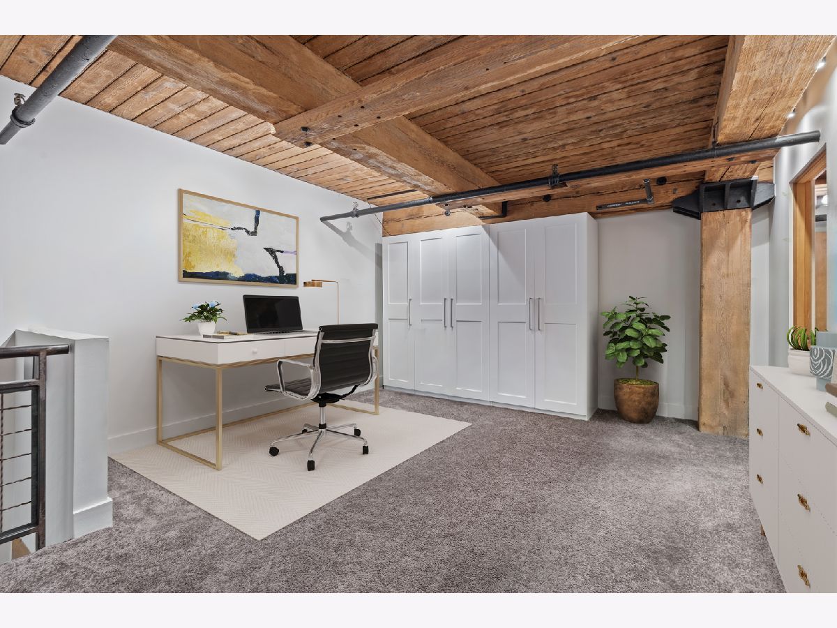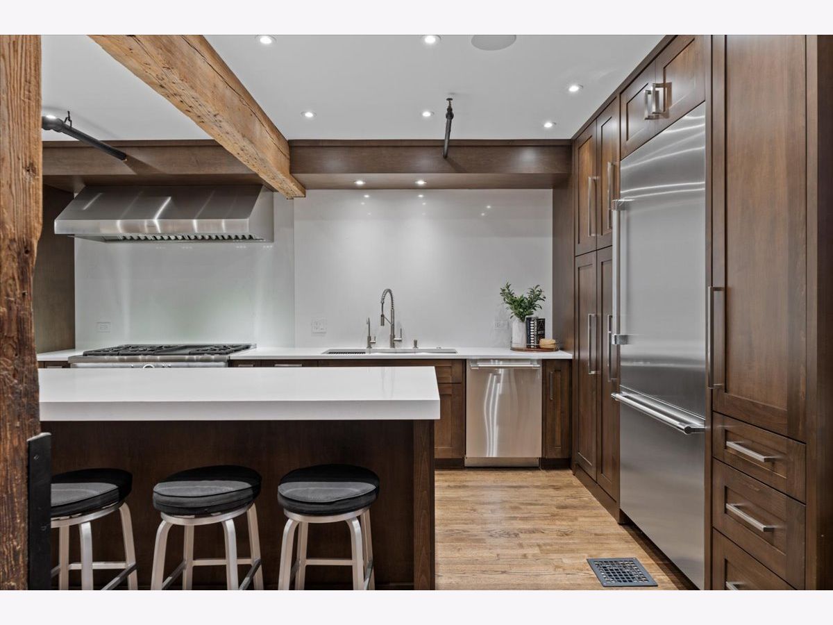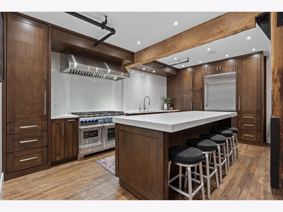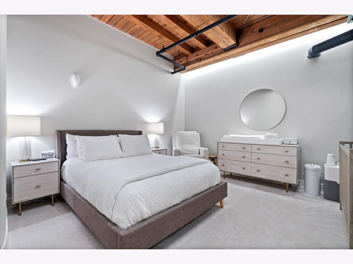 Welcome home to this expansive 2,300-square-foot 2 bed, 3 bath residence in the heart of the West Loop. Thoughtfully designed for modern living and entertaining, this home offers multiple indoor and outdoor living spaces, including a private deck, a private lower-level patio, and access to a stunning south-facing shared atrium. The main living level features refinished floors, a sleek slate electric fireplace, and remote-controlled electric blinds. The fully renovated kitchen (2021), showcases a quartz waterfall island and matching backsplash, premium Thermador appliances, and an oversized hood. The former third bedroom has been opened to create a spacious dining area ideal for hosting. A remodeled full bathroom rounds out the main level. The lower level provides exceptional additional living space with new carpeting, a fully remodeled bathroom featuring hardwood walnut cabinetry and slate floors, an additional bedroom and a great flex storage space. This level is perfect for a media room, home office, or guest suite, with direct access to the private patio. The top level is a true primary suite featuring the primary bedroom and bathroom, and open space perfect for an office or seating area. Two parking spaces are available for an additional cost. Ideally located near Randolph Street and surrounded by West Loop's renowned dining, shopping, and nightlife, with easy access to everything the neighborhood has to offer. Situated within the Skinner Elementary School district and near Wells Community Academy High School. Two parking spots for an extra $55,000