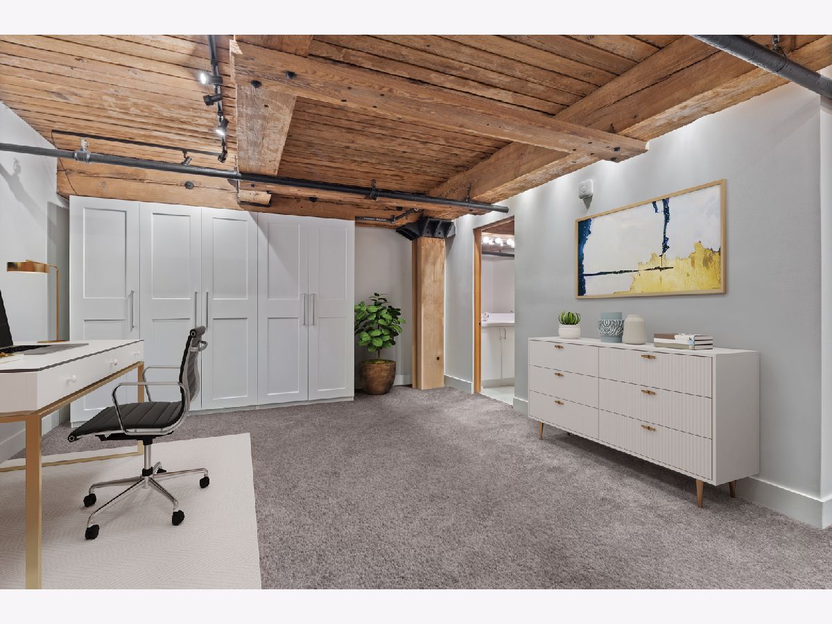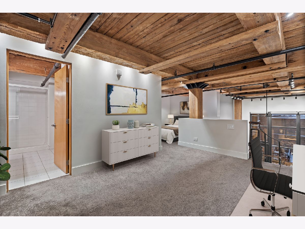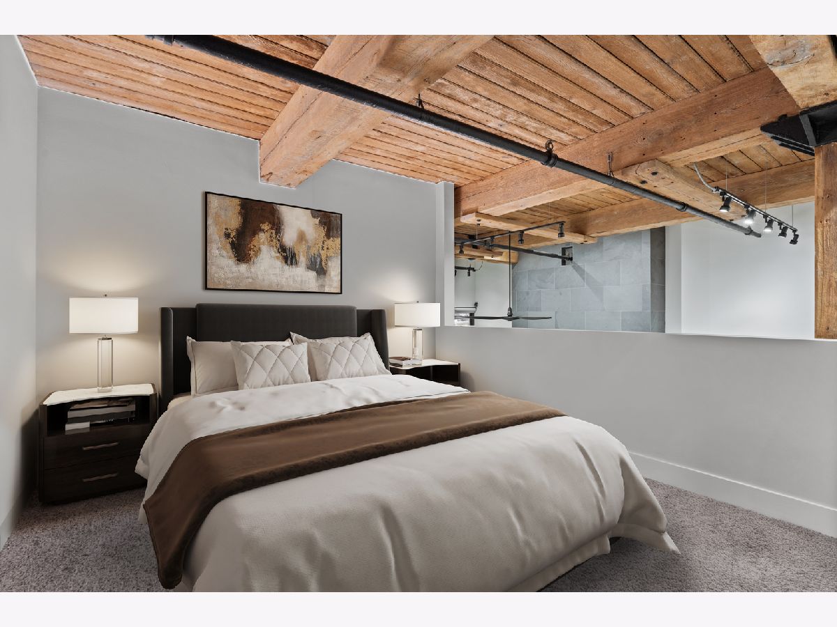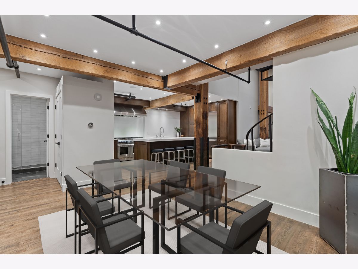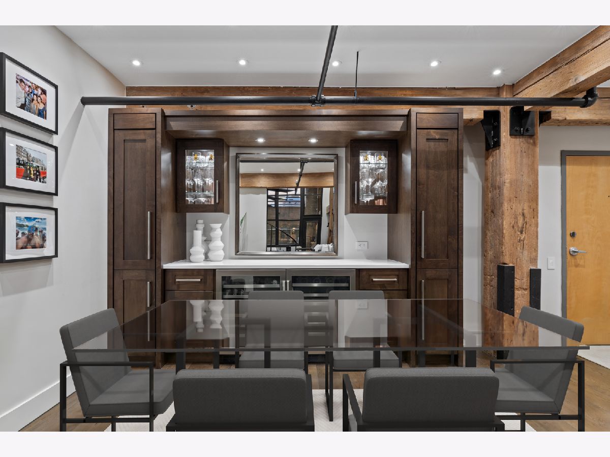 Welcome home to this expansive 2,300-square-foot 2 bed, 3 bath residence in the heart of the West Loop. Thoughtfully designed for modern living and entertaining, this home offers multiple indoor and outdoor living spaces, including a private deck, a private lower-level patio, and access to a stunning south-facing shared atrium. The main living level features refinished floors, a sleek slate electric fireplace, and remote-controlled electric blinds. The fully renovated kitchen (2021), showcases a quartz waterfall island and matching backsplash, premium Thermador appliances, and an oversized hood. The former third bedroom has been opened to create a spacious dining area ideal for hosting. A remodeled full bathroom rounds out the main level. The lower level provides exceptional additional living space with new carpeting, a fully remodeled bathroom featuring hardwood walnut cabinetry and slate floors, an additional bedroom and a great flex storage space. This level is perfect for a media room, home office, or guest suite, with direct access to the private patio. The top level is a true primary suite featuring the primary bedroom and bathroom, and open space perfect for an office or seating area. Two parking spaces are available for an additional cost. Ideally located near Randolph Street and surrounded by West Loop's renowned dining, shopping, and nightlife, with easy access to everything the neighborhood has to offer. Situated within the Skinner Elementary School district and near Wells Community Academy High School. Two parking spots for an extra $55,000