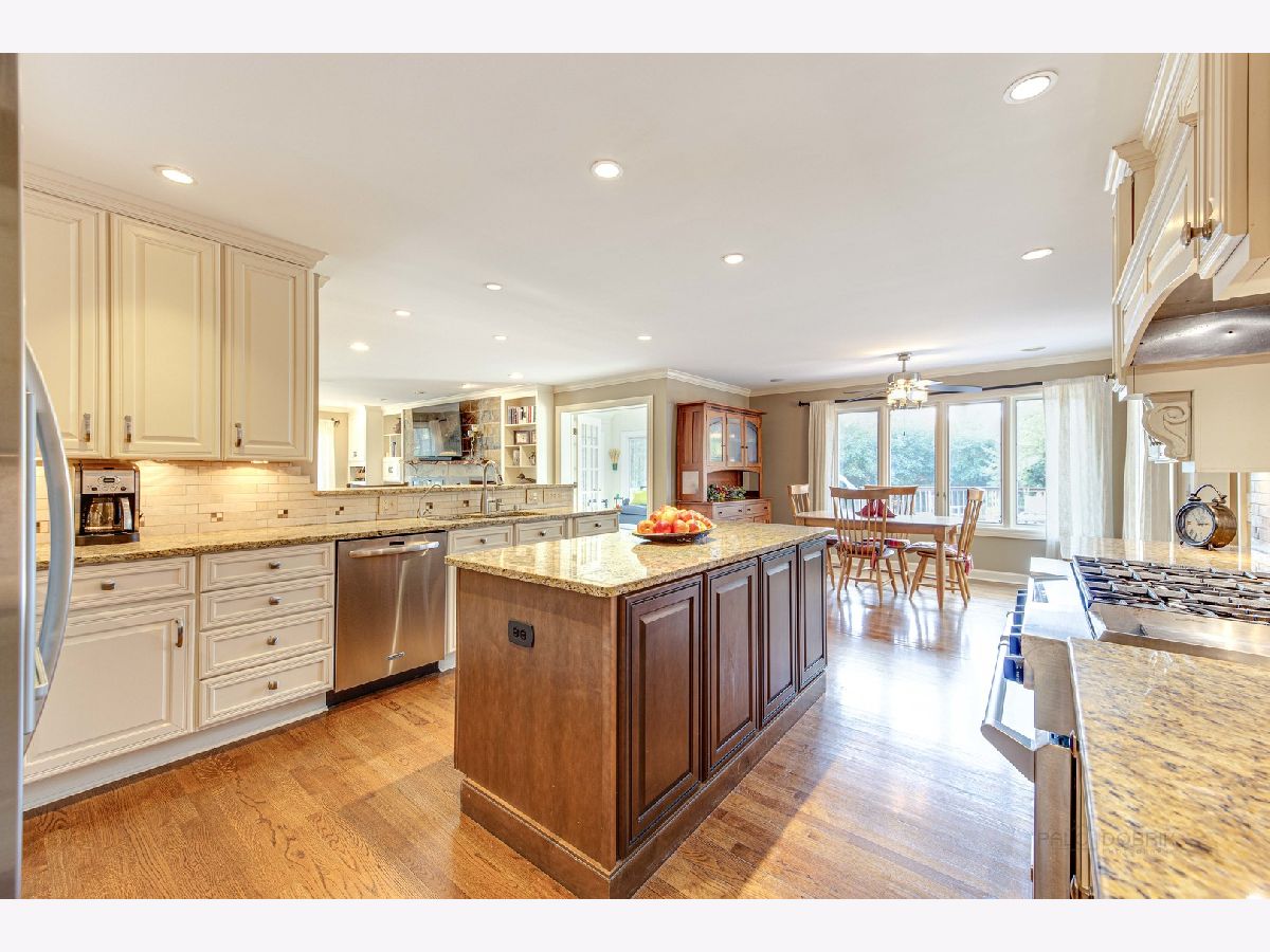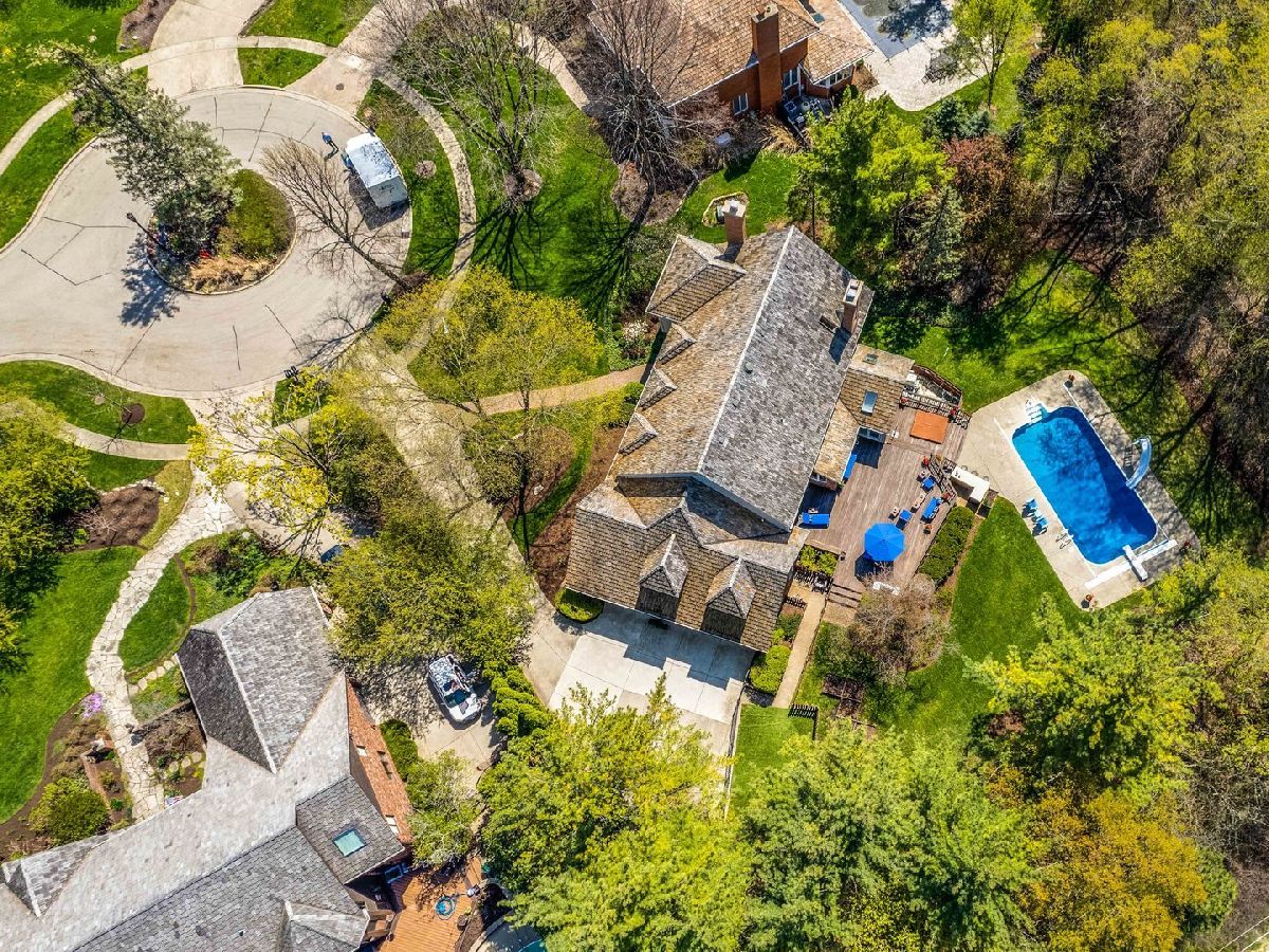 Picture-perfect and amazing curb appeal draws you into this meticulously cared-for custom designed home. Situated on a quiet cul-de-sac lot on .68 acres of lush landscaping and mature trees: providing a private setting within a wonderful family neighborhood. Luxury living inside and out with over 4,000 square feet of a masterfully designed floorplan made for entertaining in style, add the full English basement and this home is sure to have all the space you will need. Stunning details you are sure to fall in love with are the remarkable hardwood flooring, detailed millwork, custom built-ins, and ample amounts of storage - WOW! The inviting brick walkway leads way to the front entry which provides an excellent place to greet guests as they arrive and offers a fantastic landing spot - check out those slate steps! Feel the warmth of home as you walk through the front door and are met by a two-story foyer flanked by a formal living room and separate dining room which has quick access to the kitchen. Next, the gourmet kitchen showcases beautiful granite counters, a plethora of custom cabinetry with crowned uppers and under cabinet lighting, a closet pantry, a pot filler, and quality stainless-steel appliances featuring a KitchenAid refrigerator, KitchenAid 6 burner with griddle double oven, a KitchenAid microwave, and a KitchenAid warming drawer. A large center island and peninsula with breakfast bar seating are great spaces for a quick bite to eat. Envision yourself rolling out some cookie dough, prepping Thanksgiving dinner, or find these are wonderful places to display your main dish with all the sides. Enjoy your morning coffee in the sun-filled breakfast area or head through the French doors to the vaulted sunroom where you can appreciate the views from all around. Open the slider to allow fresh air in or head out to the deck. Host your next cookout in your backyard oasis; imagine cooling off in the pool on those warm summer days, soaking away the stress of the day in the hot tub, or just pulling up a seat at the outdoor bar to sip on your favorite drink and catch up with friends. Head back inside to the family room, pour a drink at the wet bar, light a fire, and cozy up. The family room is accented by a woodburning fireplace with custom bookcases; adding not only style but added storage to the room. Conversations will flow effortlessly from room to room with the kitchen completely open to the family room. Completing the main level is a half bath and laundry room. Escape upstairs to the expansive main bedroom suite including plentiful closet space, access to the loft area, a private spa-like bath with a whirlpool tub, a separate shower and dressing area with a dual sink vanity. Completing the second level is a second full bath, 2 additional bedrooms, and two additional bedroom suites with private bathrooms - one with a semi-private entrance; excellent for in-laws, a rec/playroom, or a 2nd master. Adding even more living space is the finished basement! Here you will find a large rec room with a third fireplace, a full bath, a wet bar, and two additional bonus rooms - so many possibilities. It is a beautiful custom home on a gorgeous lot and a 3 car garage! Minutes to Independence grove and everything downtown Libertyville has to offer, from the summer farmers market to restaurants, and more!