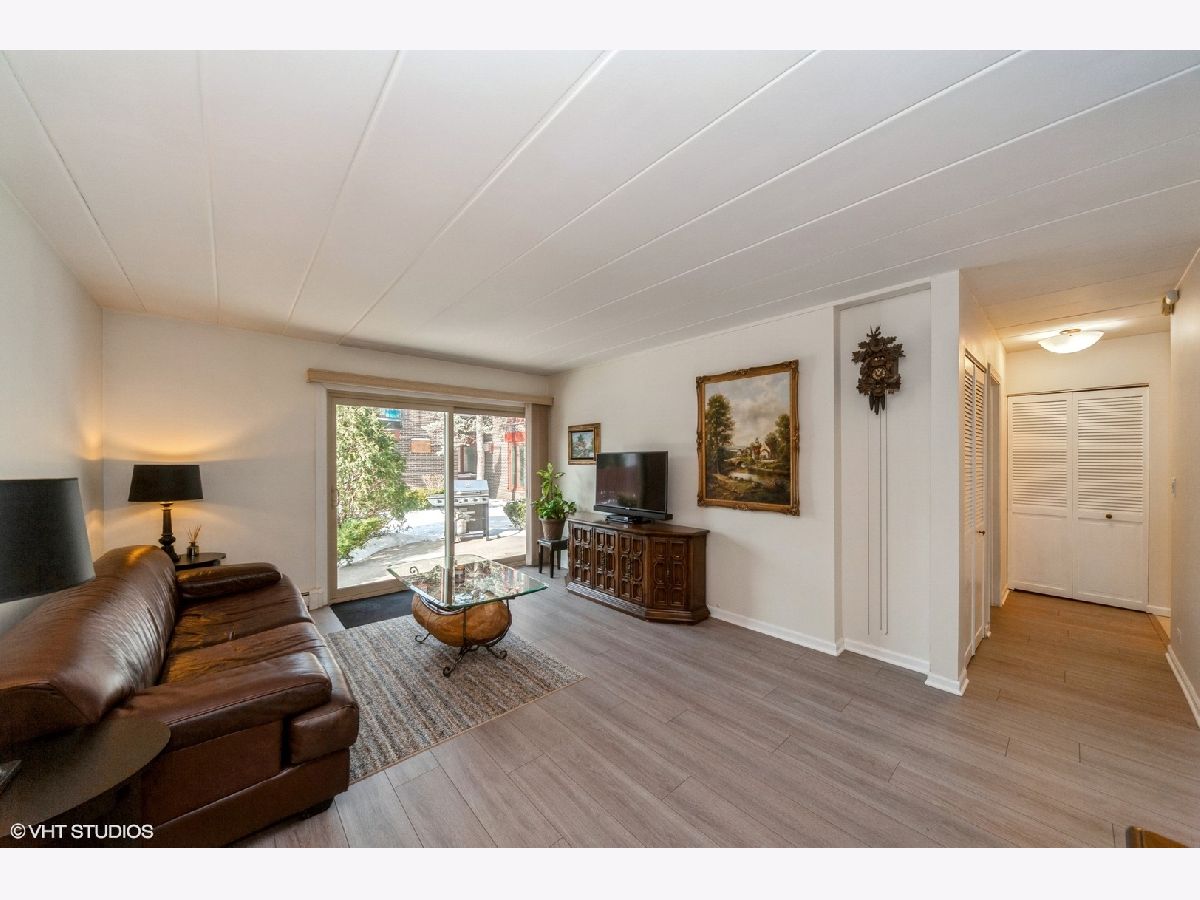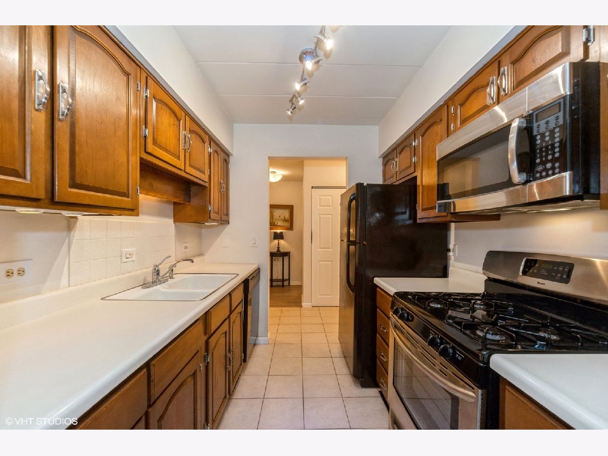 Meticulously maintained spacious condo with private patio and quiet views in the beloved Regency Condos steps away from downtown Deerfield shops and trains. Tiled foyer with generous coat closet invites you inside to a galley kitchen with cherry wood cabinets, quality gas oven/range combo, neutral countertops and tiled backsplash. Open dining/living combo that walks out onto the patio offers great opportunity for entertaining. The primary bedroom has a walk-in closet and attached half-bath. 2nd bath with full soaker tub. Additional large bedroom can also be used for private office. New wood laminate flooring throughout as well as high quality windows make this condo a perfect opportunity to live quietly while so close to so many of Deerfield's amenities.