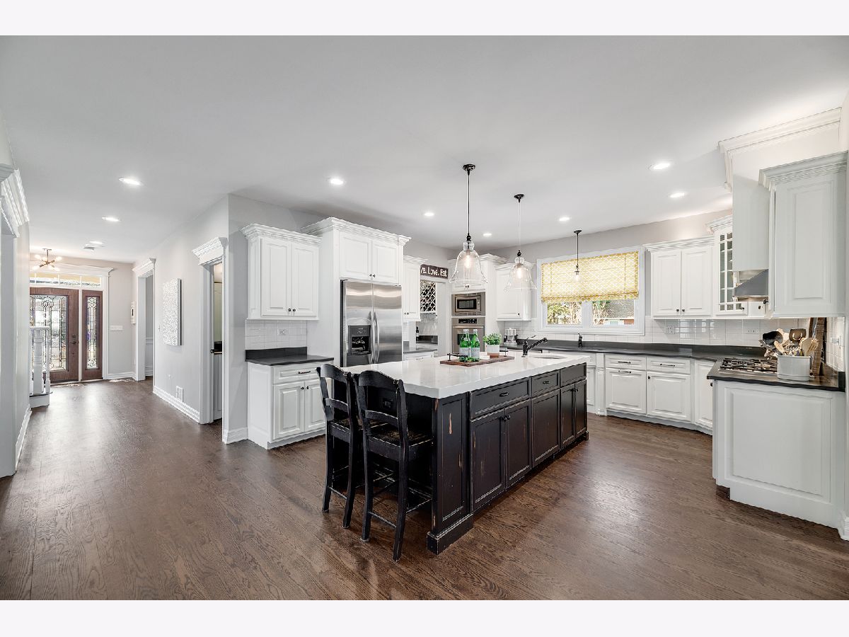 Striking newer home on a rare, large 64x159 corner lot in La Grange's desirable Country Club neighborhood. Steps to Spring Ave Elementary, Gurrie Middle School, St. Cletus School and award winning Lyons Township High School. This home shows like new construction and offers incredible natural light and a flawless open floor plan. Nine foot ceilings, detailed moldings, rich hardwoods, designer lighting, plantation shutters, French doors and tons of character throughout. Gracious foyer entry, formal living room with fireplace and spacious dining room with barn style door to a butler's pantry. The expansive kitchen is perfect tor entertaining with classic white cabinets, stainless steel appliances, quartz countertops and an amazing oversized center island all open to the breakfast room and comfortable family room with second fireplace. Private first floor office/study with French door entry from both the hall and the adjacent living room. First floor mudroom features slate floor, storage, clean up sink and easy access to the back deck. Four second floor bedrooms including a primary bedroom suite with dramatic double door entry, two walk-in closets and private bath with double vanity, separate walk-in shower and whirlpool bath. Bedrooms two and three share a Jack and Jill bath and bedroom four has its own private bath. Huge second floor laundry room and hall linen closet. The finished third floor is perfect for a 5th bedroom, recreation room or playroom with full bath. The full unfinished deep basement with roughed in plumbing for future bath and egress windows offers amazing expansion potential. Enjoy the outdoors from the relaxing front porch or the substantial back deck - perfect for entertaining or just enjoying summer nights. Brick paver walkways and driveway, irrigation system and private backyard with established trees and landscaping. Over 3,900 sf of living space in this gorgeous home!