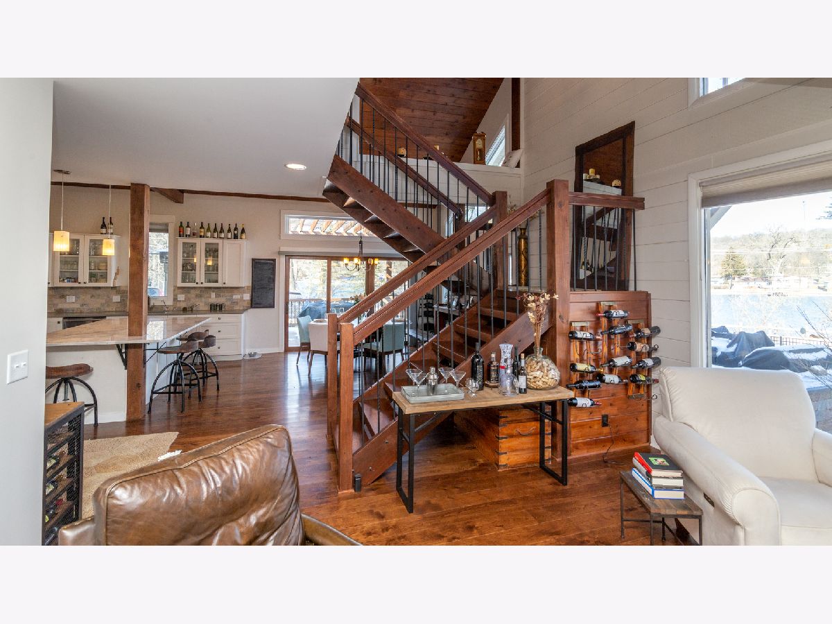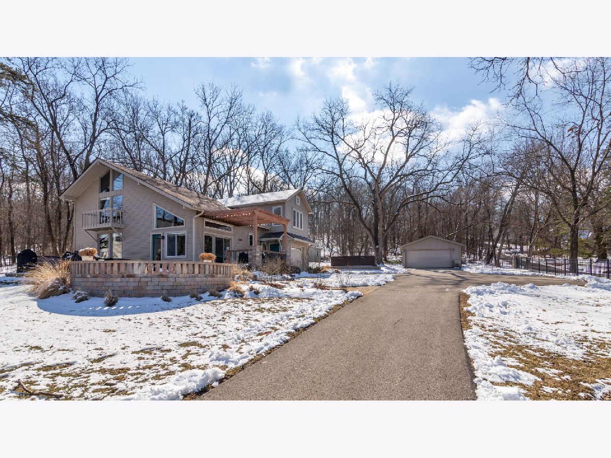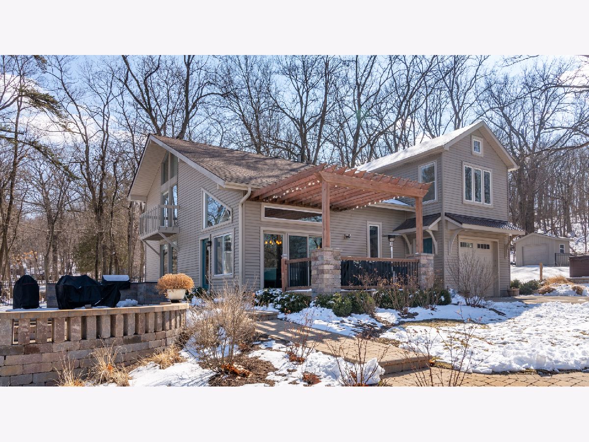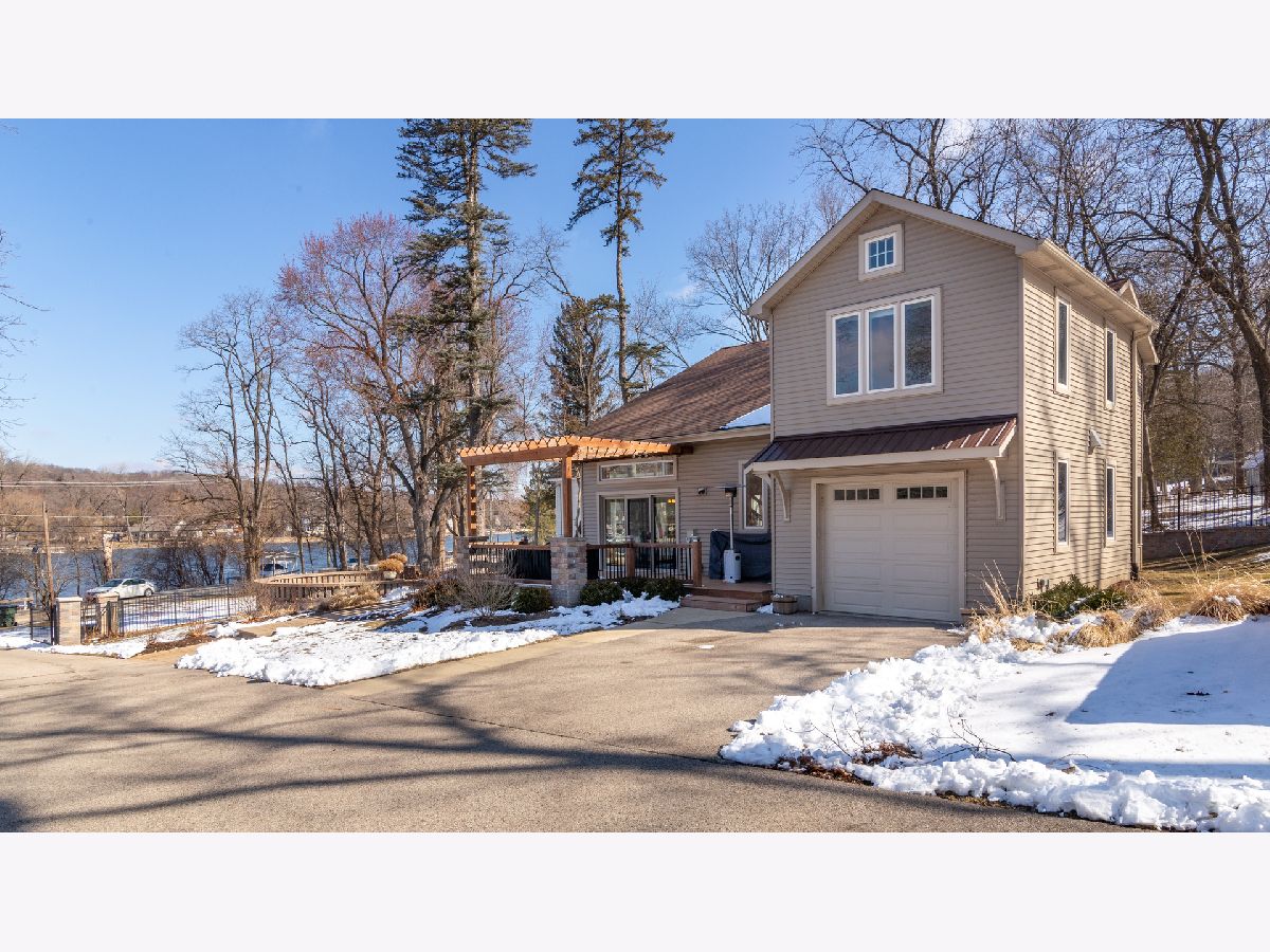 Bright & spacious move in ready waterfront home on huge 2+ acre wooded lot with 147 feet of frontage & 3 boat pier on the Fox River. Beautifully remodeled kitchen with Samsung & Bosch SS appliances including range hood, quartz & quartzite counter tops, white shaker style cabinets, custom subway tile backsplash, huge island with breakfast bar, reverse osmosis water purifier & pantry closet with electric outlet. Open floor plan with hardwood floors & tons of windows with river views throughout main floor. Living room with stone woodburning fireplace, dining room with sliding doors to deck with pergola, brick paver terrace & outdoor kitchen with cooktop/grill. Main floor full bath, bedroom/office & laundry room. Cozy 2nd floor loft/family room overlooks main floor. Primary bedroom features vaulted ceilings, ensuite bathroom with w/double sink & walk in closet with 2nd washer/dryer. 2nd floor guest bathroom with huge walk-in shower custom glass subway tile and double sink. Gated, professionally landscaped yard with swim spa/hot tub. Attached 1.5 car garage plus detached 2 car garage to store all of your fun outdoor toys!