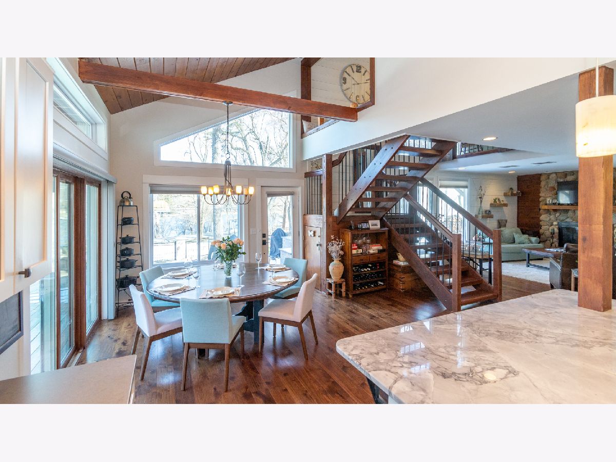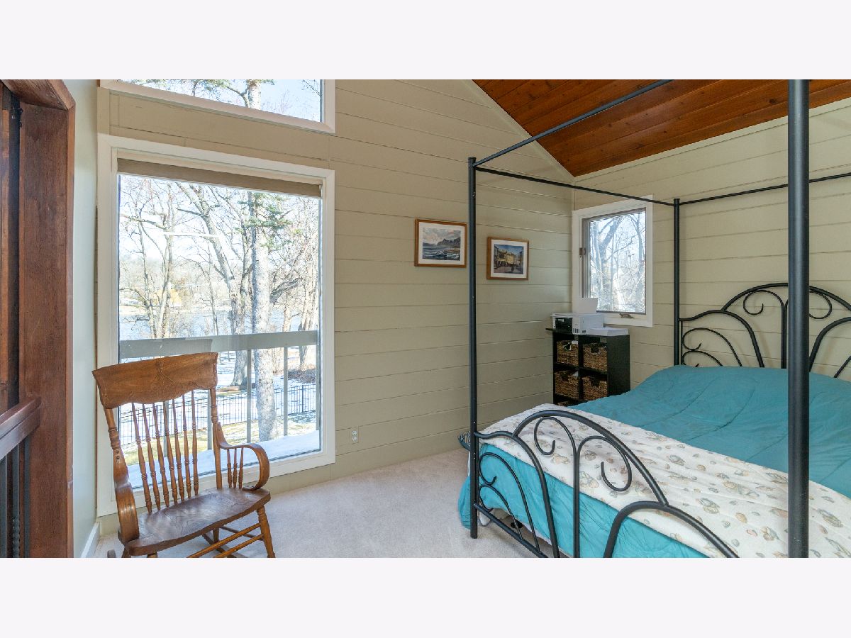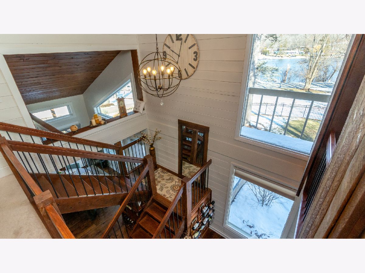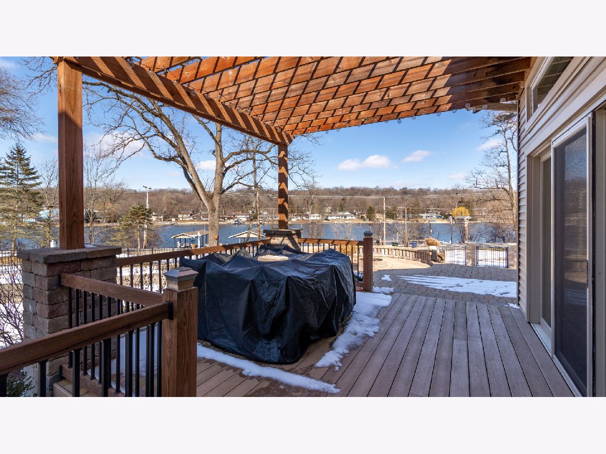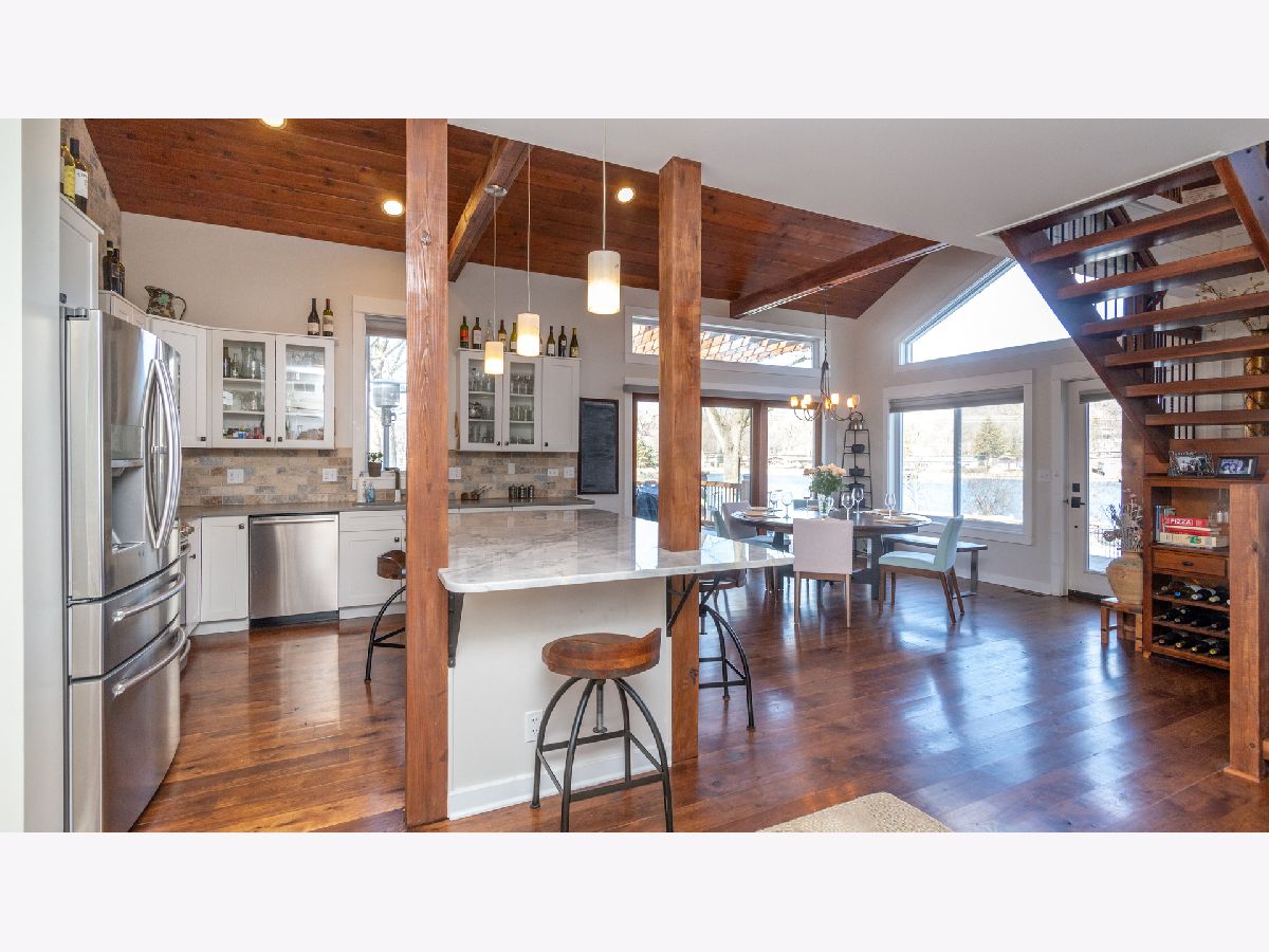Bright & spacious move in ready waterfront home on huge 2+ acre wooded lot with 147 feet of frontage & 3 boat pier on the Fox River. Beautifully remodeled kitchen with Samsung & Bosch SS appliances including range hood, quartz & quartzite counter tops, white shaker style cabinets, custom subway tile backsplash, huge island with breakfast bar, reverse osmosis water purifier & pantry closet with electric outlet. Open floor plan with hardwood floors & tons of windows with river views throughout main floor. Living room with stone woodburning fireplace, dining room with sliding doors to deck with pergola, brick paver terrace & outdoor kitchen with cooktop/grill. Main floor full bath, bedroom/office & laundry room. Cozy 2nd floor loft/family room overlooks main floor. Primary bedroom features vaulted ceilings, ensuite bathroom with w/double sink & walk in closet with 2nd washer/dryer. 2nd floor guest bathroom with huge walk-in shower custom glass subway tile and double sink. Gated, professionally landscaped yard with swim spa/hot tub. Attached 1.5 car garage plus detached 2 car garage to store all of your fun outdoor toys!