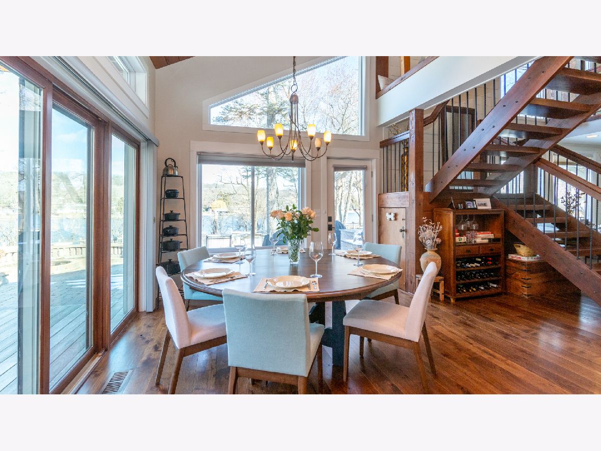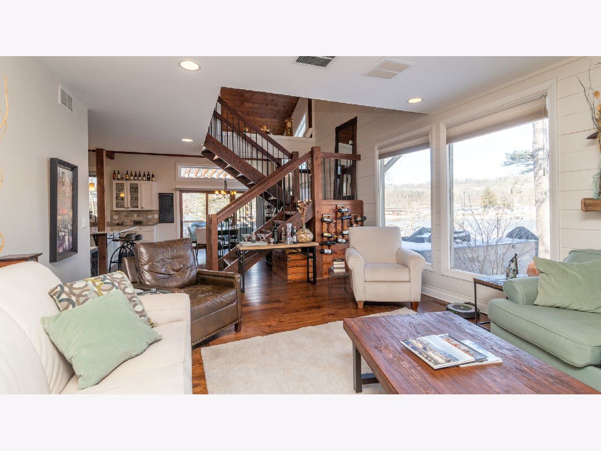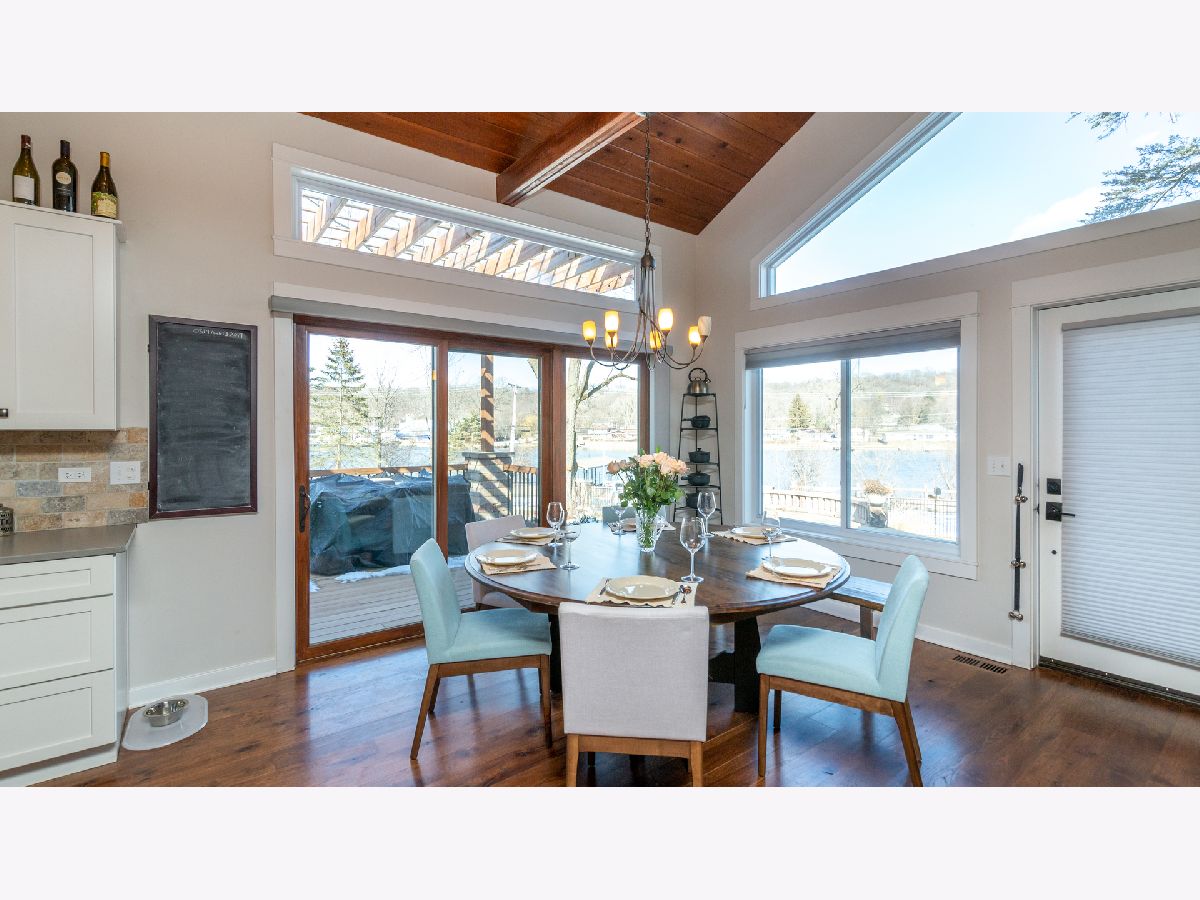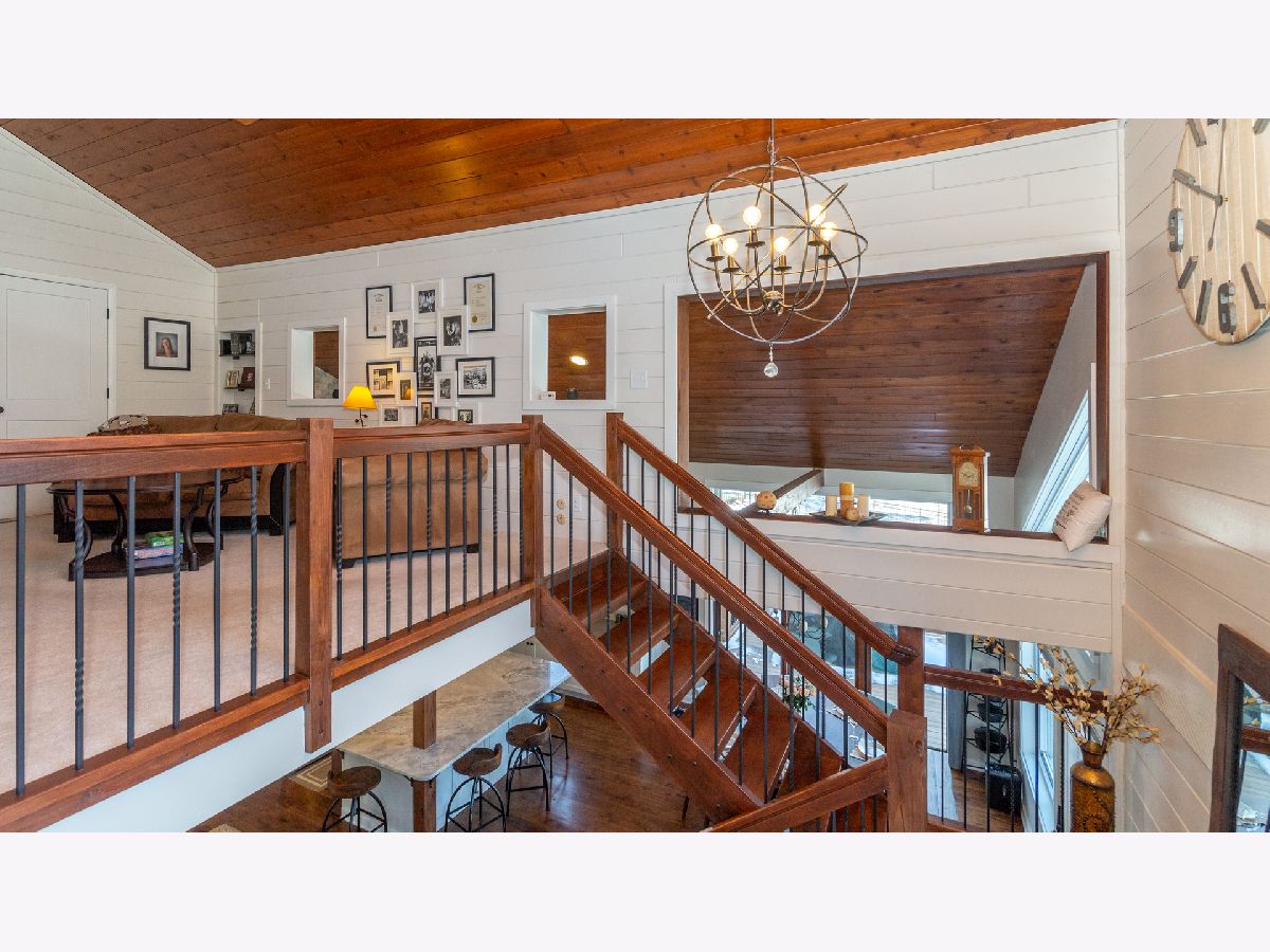 Bright & spacious move in ready waterfront home on huge 2+ acre wooded lot with 147 feet of frontage & 3 boat pier on the Fox River. Beautifully remodeled kitchen with Samsung & Bosch SS appliances including range hood, quartz & quartzite counter tops, white shaker style cabinets, custom subway tile backsplash, huge island with breakfast bar, reverse osmosis water purifier & pantry closet with electric outlet. Open floor plan with hardwood floors & tons of windows with river views throughout main floor. Living room with stone woodburning fireplace, dining room with sliding doors to deck with pergola, brick paver terrace & outdoor kitchen with cooktop/grill. Main floor full bath, bedroom/office & laundry room. Cozy 2nd floor loft/family room overlooks main floor. Primary bedroom features vaulted ceilings, ensuite bathroom with w/double sink & walk in closet with 2nd washer/dryer. 2nd floor guest bathroom with huge walk-in shower custom glass subway tile and double sink. Gated, professionally landscaped yard with swim spa/hot tub. Attached 1.5 car garage plus detached 2 car garage to store all of your fun outdoor toys!